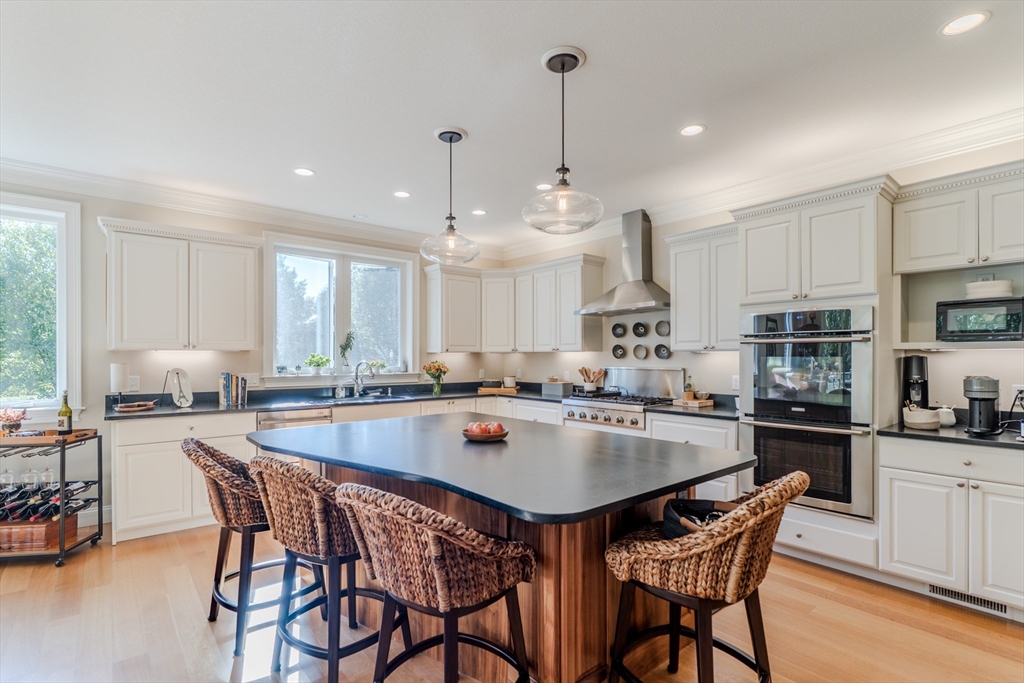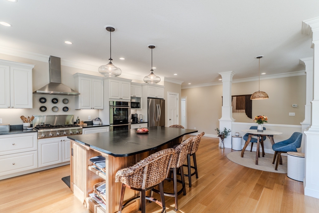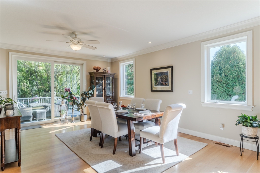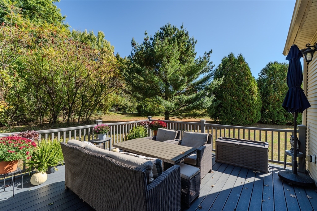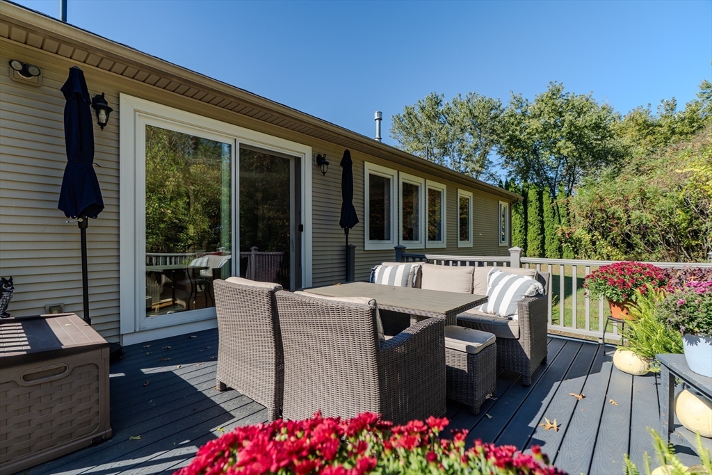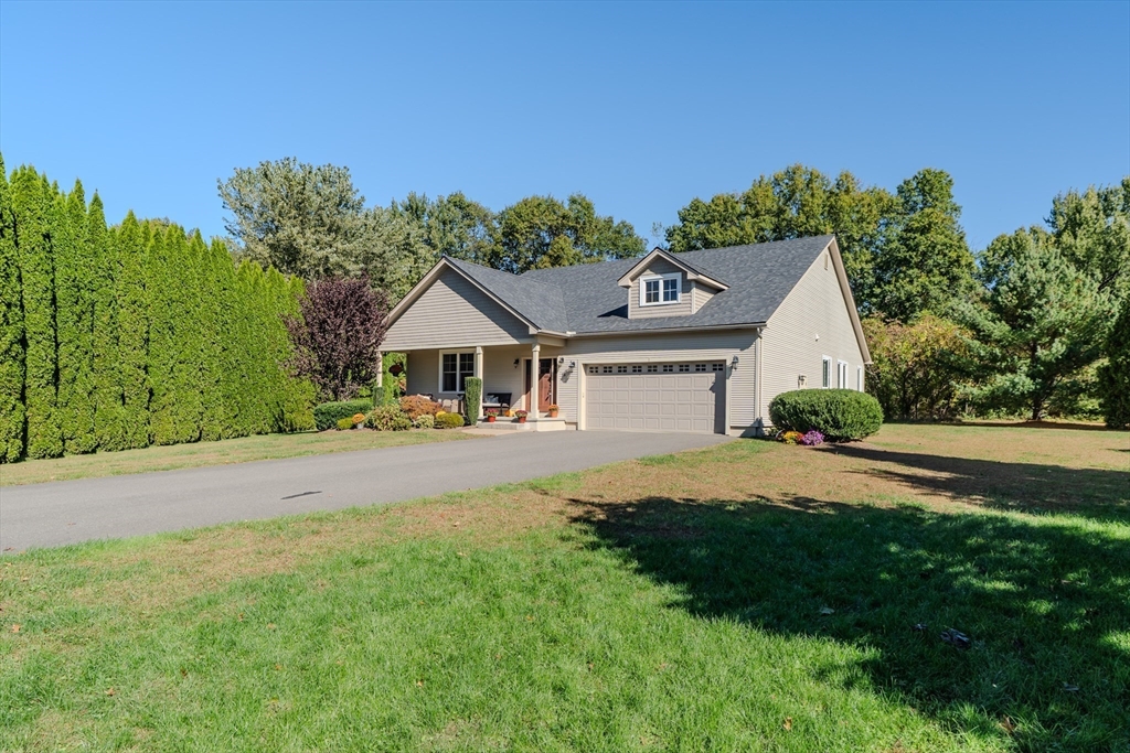 Handsome Exc.Ranch offers a harmonious blend of functionality, aesthetic appeal & convenience! The sun filled open floor plan of this desirable home fosters a seamless exchange between living spaces while maximizing natural light through large windows. 9' ceilings accentuate the sense of space & airiness while providing an elevated backdrop that complements detailed interior finishes such as crown moldings & wainscoting. The eat-in kit, equipped w/soapstone counters & stainless appliances, serves as the heart of the home, offering the perfect blend of style & practicality. The 3BR, 3BA floor plan ensures ample private space for family members or guests. 1st level laundry a plus! A deck overlooking the back yard extends the living space outdoors, providing an ideal setting for relaxation or entertaining. A prime location, just minutes from area schools, major routes & popular venues. Amenities are many & include an attached 2 car garage, front porch,N gas heat with AC & more!!
