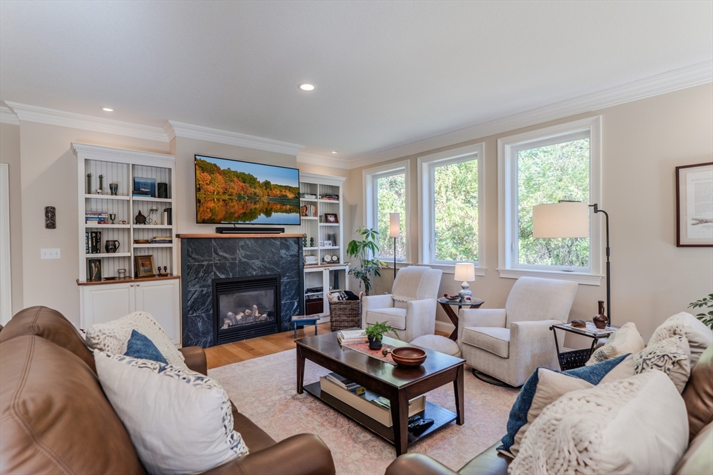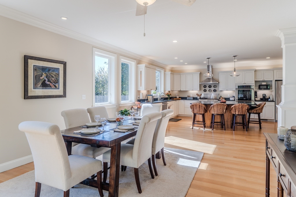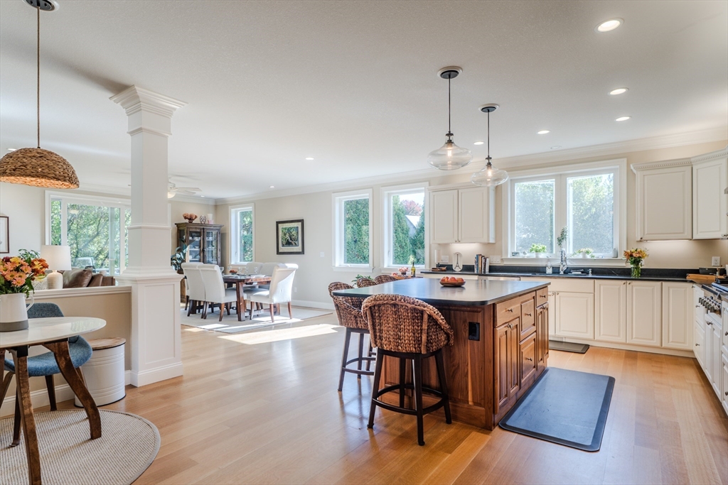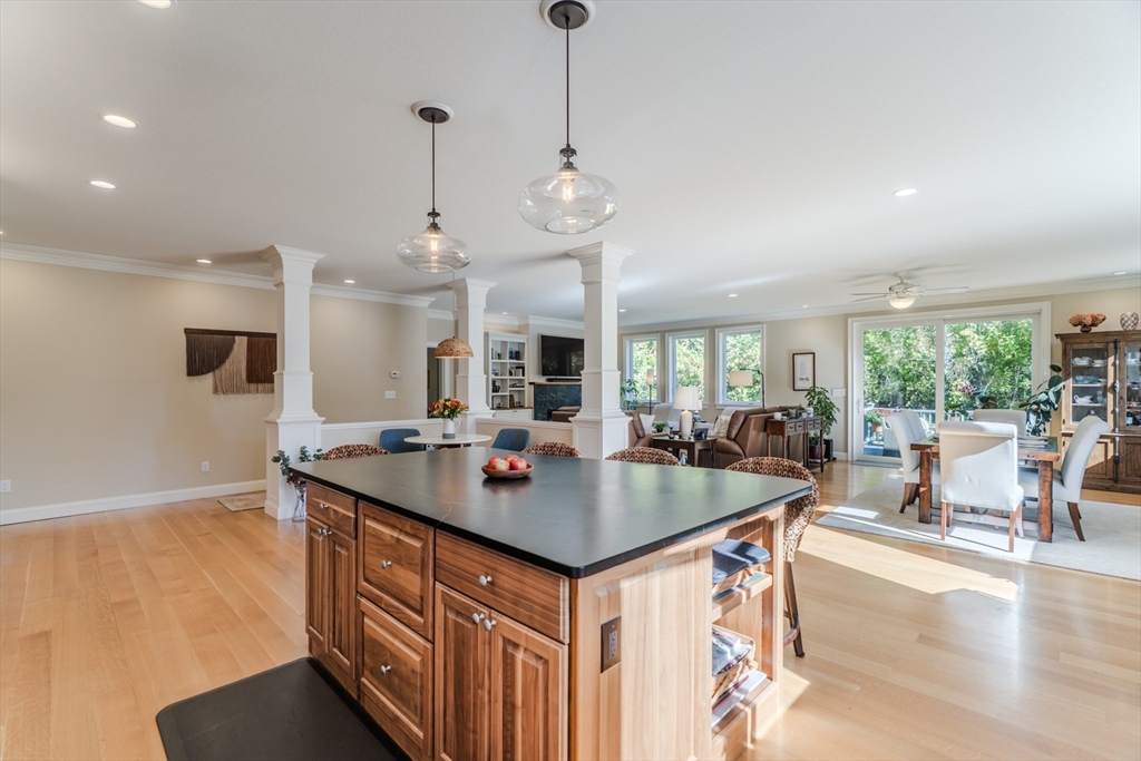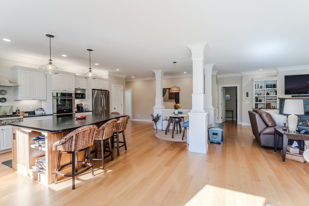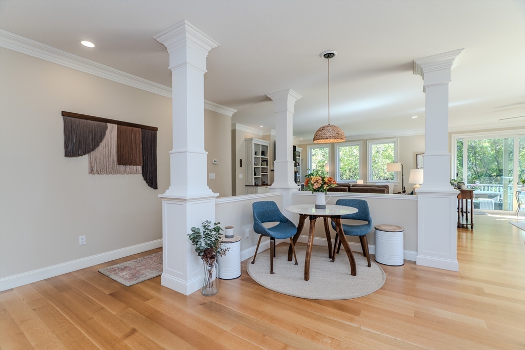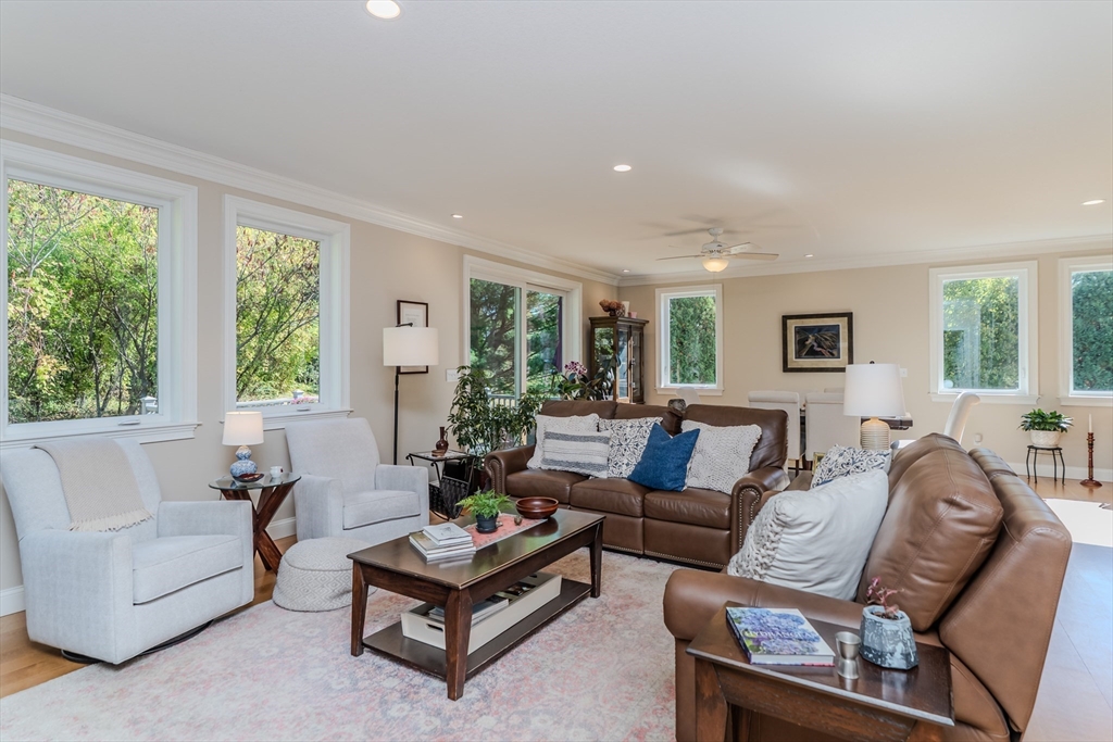 Handsome Exc.Ranch offers a harmonious blend of functionality, aesthetic appeal & convenience! The sun filled open floor plan of this desirable home fosters a seamless exchange between living spaces while maximizing natural light through large windows. 9' ceilings accentuate the sense of space & airiness while providing an elevated backdrop that complements detailed interior finishes such as crown moldings & wainscoting. The eat-in kit, equipped w/soapstone counters & stainless appliances, serves as the heart of the home, offering the perfect blend of style & practicality. The 3BR, 3BA floor plan ensures ample private space for family members or guests. 1st level laundry a plus! A deck overlooking the back yard extends the living space outdoors, providing an ideal setting for relaxation or entertaining. A prime location, just minutes from area schools, major routes & popular venues. Amenities are many & include an attached 2 car garage, front porch,N gas heat with AC & more!!