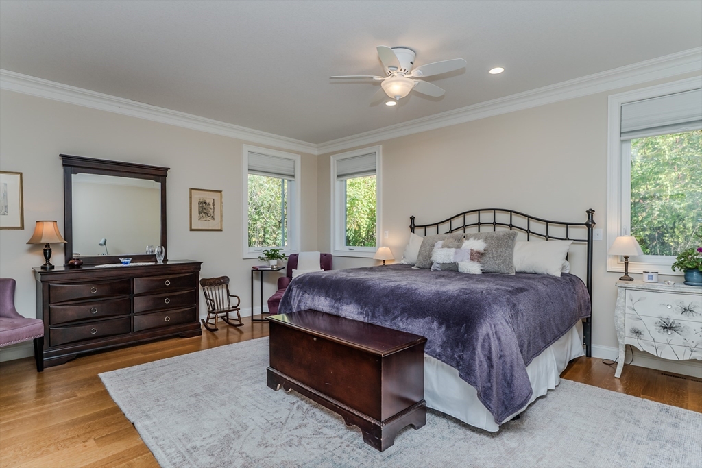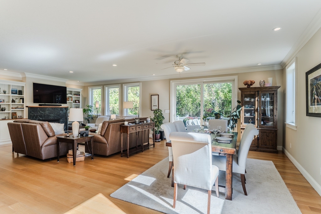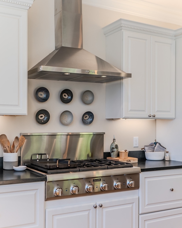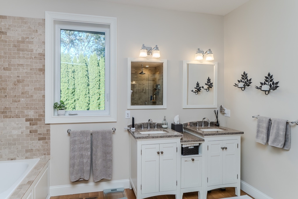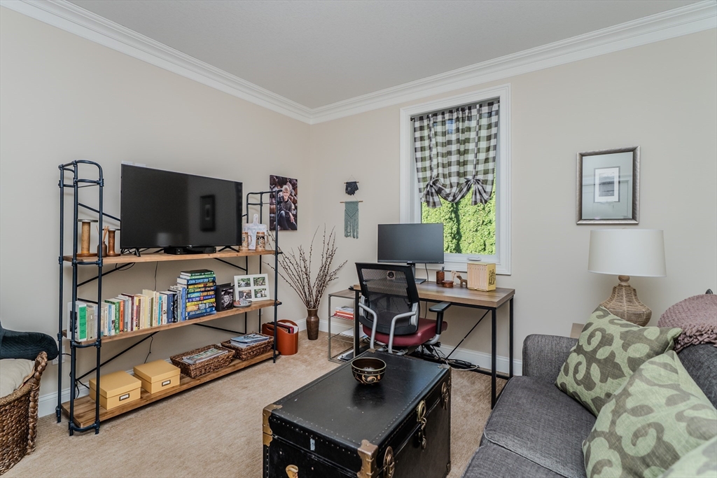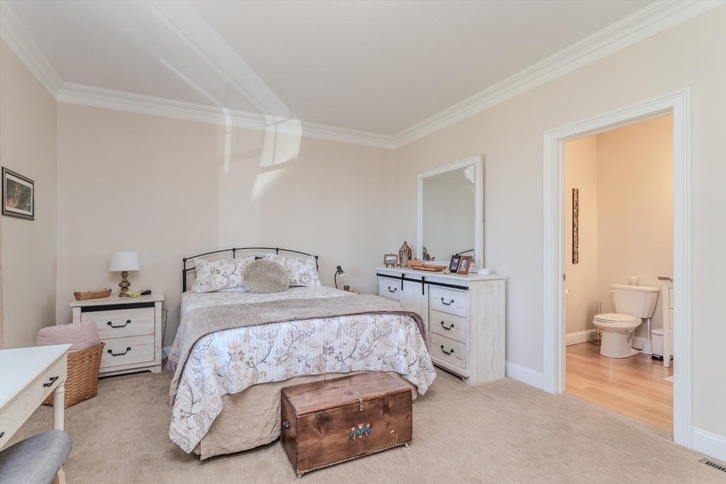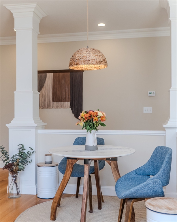 Handsome Exc.Ranch offers a harmonious blend of functionality, aesthetic appeal & convenience! The sun filled open floor plan of this desirable home fosters a seamless exchange between living spaces while maximizing natural light through large windows. 9' ceilings accentuate the sense of space & airiness while providing an elevated backdrop that complements detailed interior finishes such as crown moldings & wainscoting. The eat-in kit, equipped w/soapstone counters & stainless appliances, serves as the heart of the home, offering the perfect blend of style & practicality. The 3BR, 3BA floor plan ensures ample private space for family members or guests. 1st level laundry a plus! A deck overlooking the back yard extends the living space outdoors, providing an ideal setting for relaxation or entertaining. A prime location, just minutes from area schools, major routes & popular venues. Amenities are many & include an attached 2 car garage, front porch,N gas heat with AC & more!!