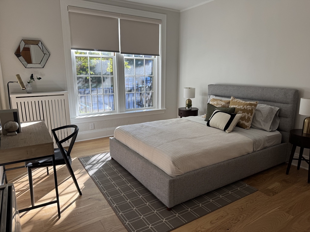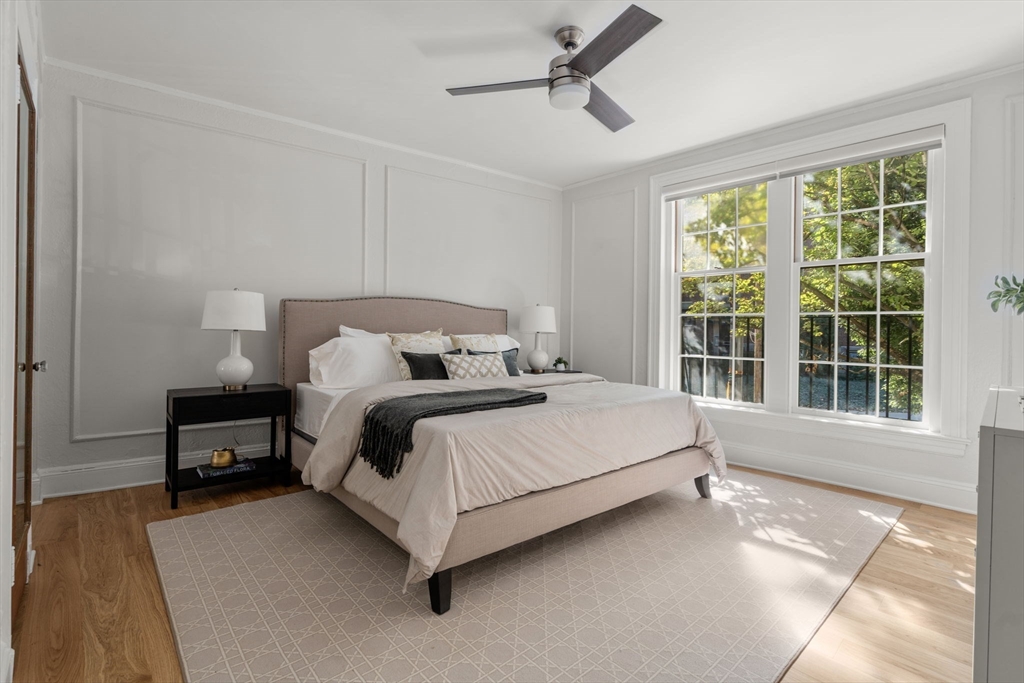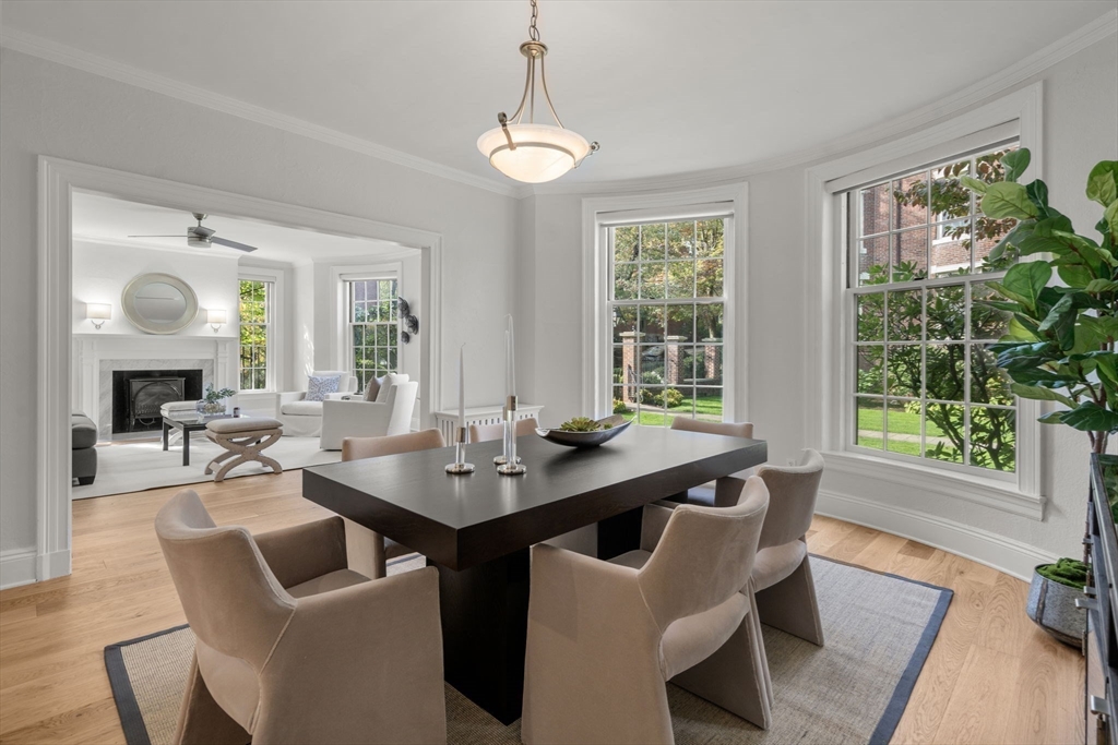 Elegant and sun-filled two-bedroom, two-bath condominium overlooking a peaceful courtyard in the heart of Washington Square. This beautifully updated home features soaring ceilings, new oak floors, and charming period details throughout. A gracious foyer opens to a spacious living room with marble fireplace and oversized bow windows. The entertainment-sized dining room connects to a lovely butler’s pantry with custom built-ins, leading to a renovated kitchen with quartz countertops and stainless steel appliances. The primary suite offers a renovated en-suite bath, while the second bedroom provides versatility for guests or a home office. Additional highlights include in-unit laundry, ample basement storage, and one tandem parking space that fits two cars. Professionally managed, well-maintained association within moments of the C and D Green Lines, Longwood Medical Area, top schools, parks, and Washington Square’s restaurants and shops.