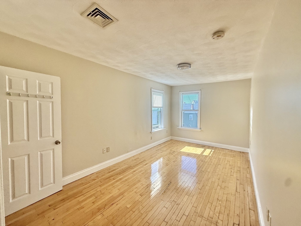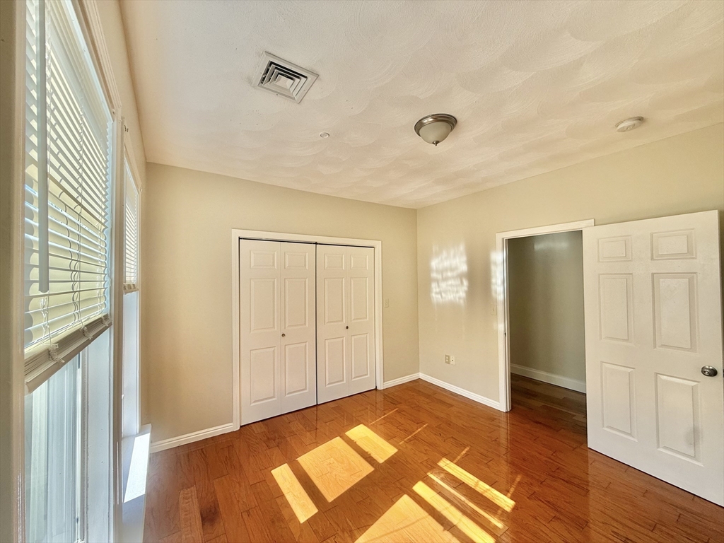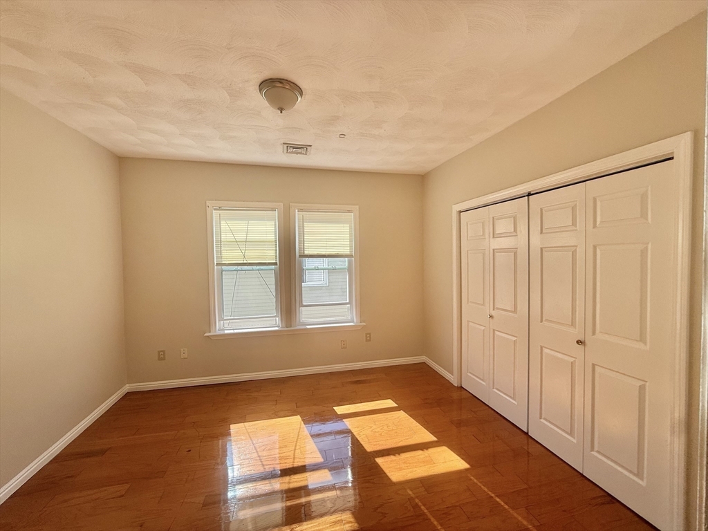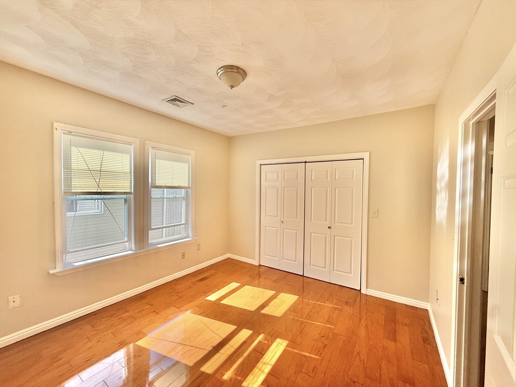 Welcome to this beautifully maintained third-floor unit featuring gleaming hardwood floors throughout and abundant natural light. 3 Bedrooms: Main bedroom boasts a decorative fireplace, bay windows, and a walk-in closet. Second bedroom includes a hallway-accessed closet. Kitchen with a refrigerator, gas oven, tile flooring, and ample pantry cabinetry.Bright Living Room inviting with bay windows and direct access to the full bathroom. Central heating and air conditioning. On-street permit parking available. Laundry: Coin-operated washer and dryer in the building. Ingress/Egress: Back hallway must remain clear—no storage permitted. Minutes from Encore, public transportation, and major routes including Downtown Boston, Logan Airport, Tobin Bridge, Mass Pike, Malden Center, Rte. 1, I-93/95, and Rt. 16. Enjoy nearby shopping, dining, and entertainment options. Tenant Pays: Electric and gas for heat and hot water.
