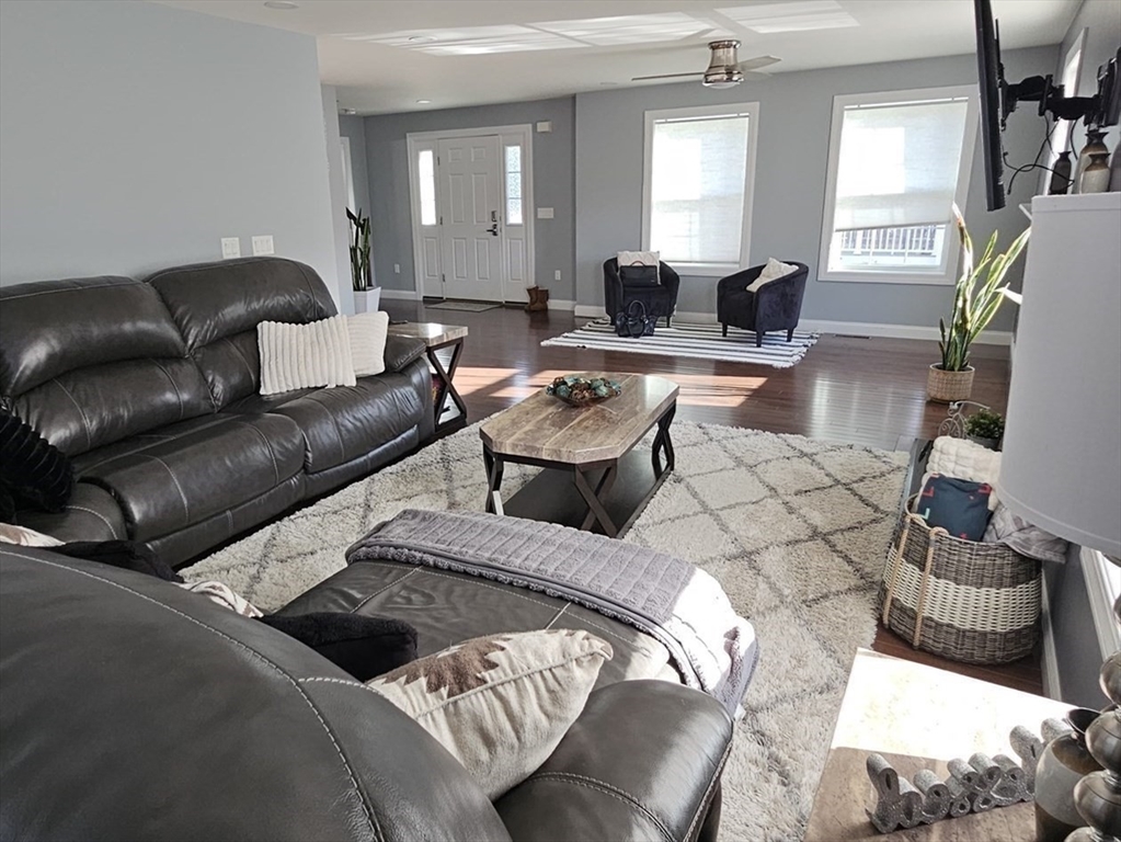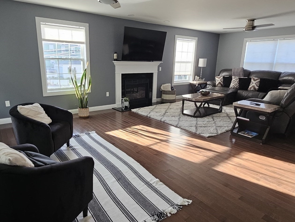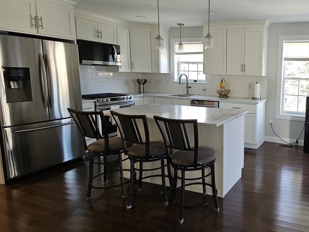 Stunning 2019 Colonial WITH ALL STYLISH DECOR OF AN HGTV HOME in Peabody! Step inside to a front-to-back living room with a gas fireplace a warm and inviting space for relaxing or entertaining. The HUGE kitchen features a spacious open floor plan, quartz countertops, center island with pendant lighting, stainless steel appliances with gas cooking, and sliding doors leading to a private deck. The kitchen opens seamlessly to the dining area, which can also serve as a cozy family room. The third floor offers incredible flexibility with a game room and an additional bonus room perfect for an office, home gym, or play area.The finished basement adds even more living space — perfect for a home theater, playroom, or guest area. Outside, you'll enjoy a nice installed patio, storage shed and a fenced-in yard for outdoors entertainment or relaxation! 05- cars parking available.