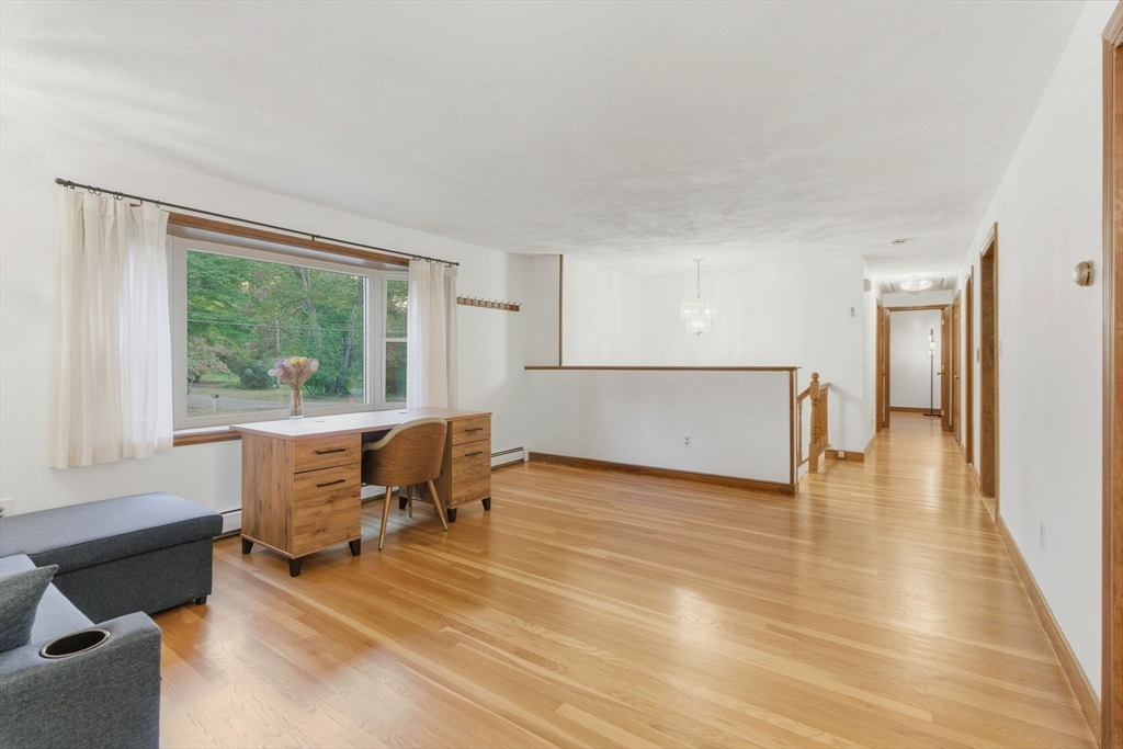 Welcome home! This well maintained 3-bedroom, 2.5-bath split-entry home offers over 2,600 sq ft of living space on nearly half an acre. The main level features Eat-in Kitchen fully applianced, granite countertops and access to the exterior patio, and composite deck-perfect for entertaining, Dining Room, Living Room, Primary Bedroom has full bath, full bath in hallway. Hardwood floors throughout most of the upper level. Finished lower level offers a cozy family room with fireplace, built-in bar, laundry, and half bath, and sunroom. Enjoy outdoor living in your private, landscaped backyard with storage shed. Spacious two-car garage. Conveniently located to schools, shopping, parks, and major routes including I-95/128. A perfect blend of space, comfort, and location. Schedule your showing today!