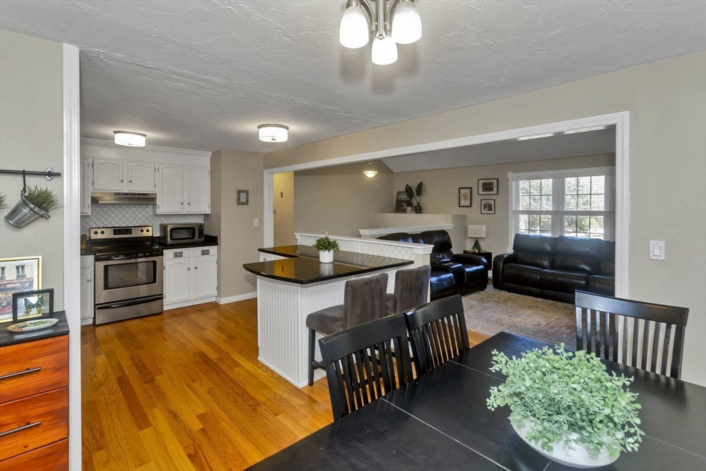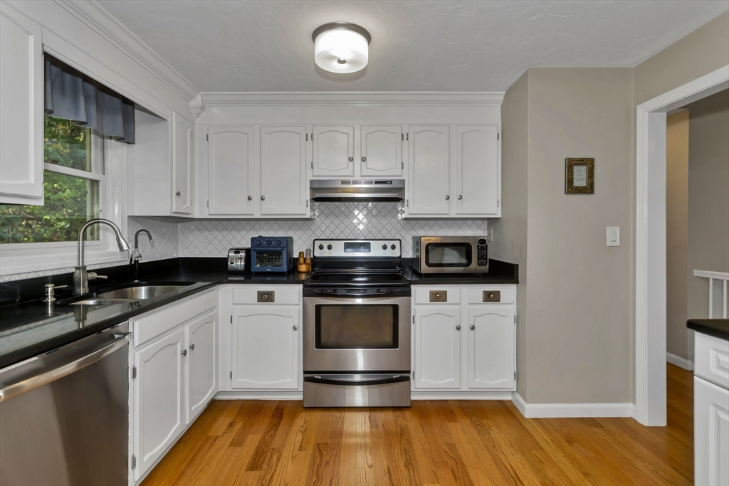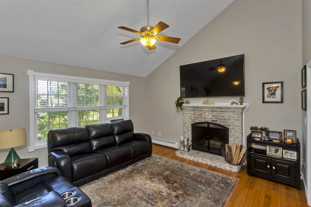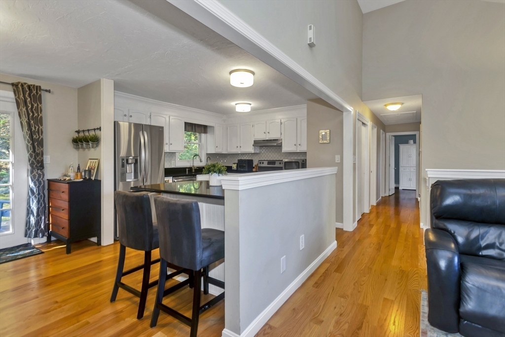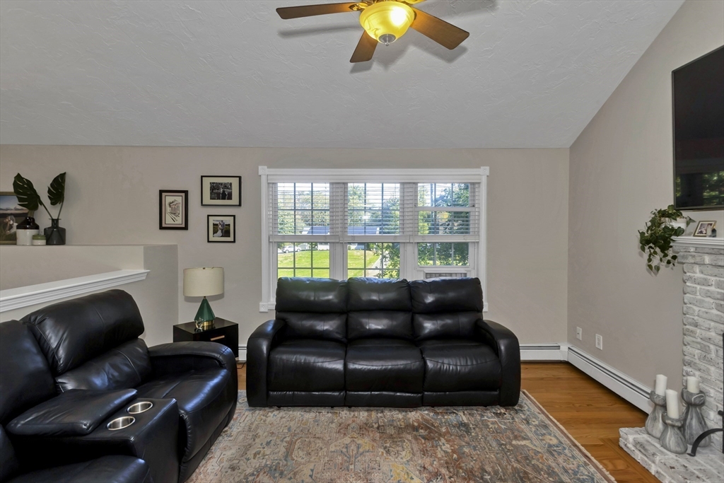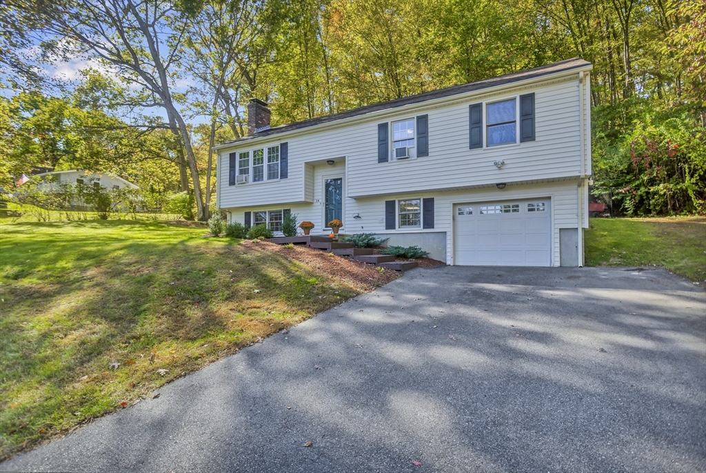 Discover the perfect blend of comfort and style in a home that welcomes you with a fresh and inviting atmosphere from the moment you step inside. The entire upper level has been updated with gleaming red oak hardwood floors that flow seamlessly through the kitchen and all three bedrooms. Relax in the cathedral ceiling family room featuring a cozy fireplace and open floor plan. The cabinet-packed kitchen boasts granite countertops, stainless steel appliances, and a spacious eat-in area. The 2022 renovated bath shines with quartz countertops, custom cabinetry, and a double vanity. Downstairs, a finished lower level offers a versatile space ideal for a home gym or movie nights, along with a bright home office featuring beautiful built-ins and an oversized laundry room. Outside, enjoy a fenced backyard with a firepit—perfect for entertaining. Situated on a quiet dead-end street, just minutes from the T, Mass Pike, and Tufts Grafton Campus. Don’t miss this one!