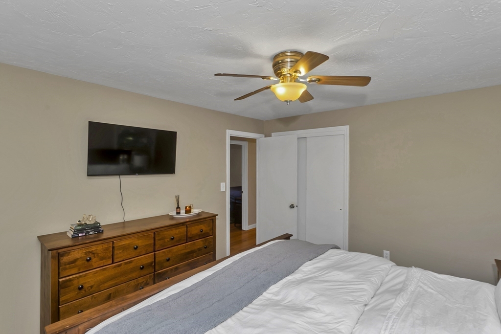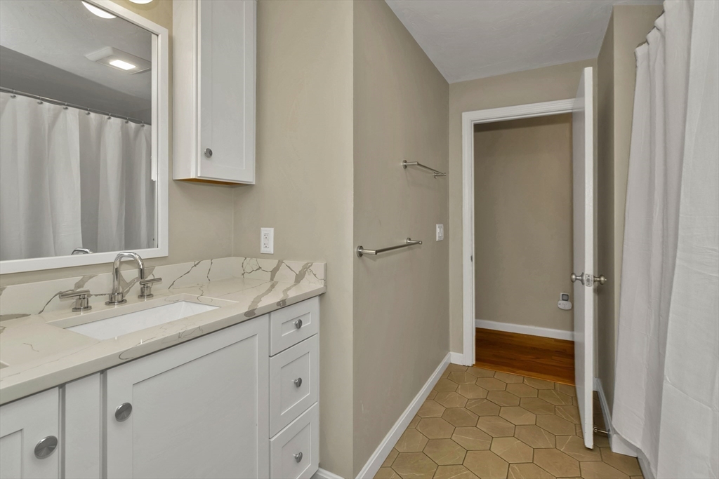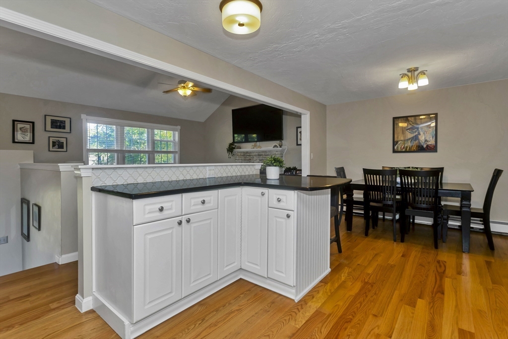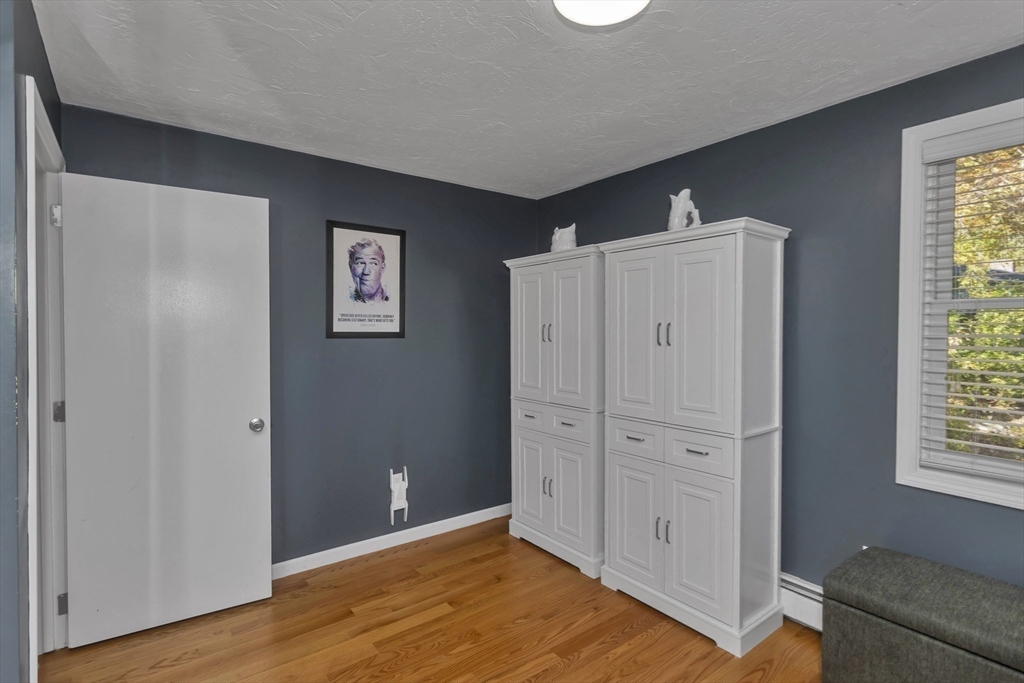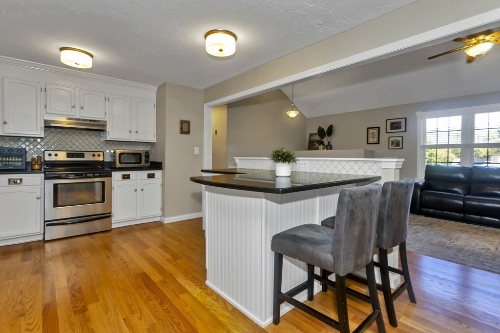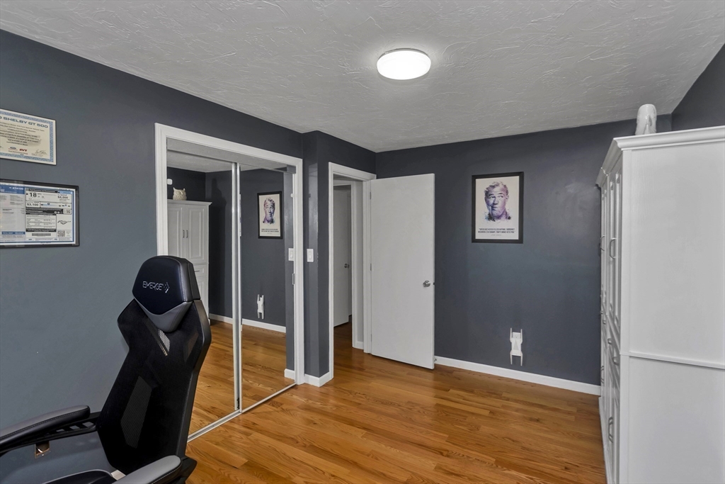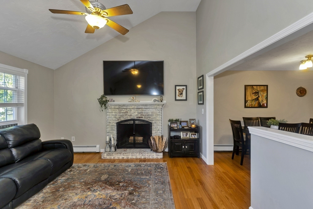 Discover the perfect blend of comfort and style in a home that welcomes you with a fresh and inviting atmosphere from the moment you step inside. The entire upper level has been updated with gleaming red oak hardwood floors that flow seamlessly through the kitchen and all three bedrooms. Relax in the cathedral ceiling family room featuring a cozy fireplace and open floor plan. The cabinet-packed kitchen boasts granite countertops, stainless steel appliances, and a spacious eat-in area. The 2022 renovated bath shines with quartz countertops, custom cabinetry, and a double vanity. Downstairs, a finished lower level offers a versatile space ideal for a home gym or movie nights, along with a bright home office featuring beautiful built-ins and an oversized laundry room. Outside, enjoy a fenced backyard with a firepit—perfect for entertaining. Situated on a quiet dead-end street, just minutes from the T, Mass Pike, and Tufts Grafton Campus. Don’t miss this one!