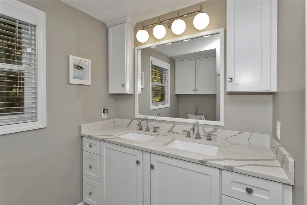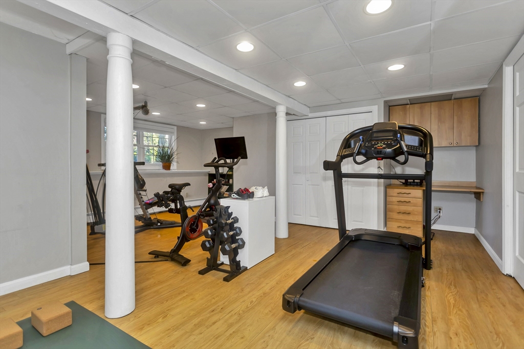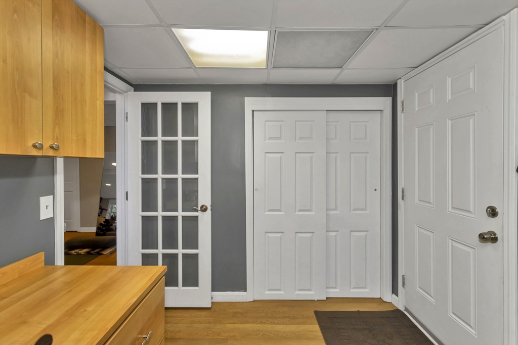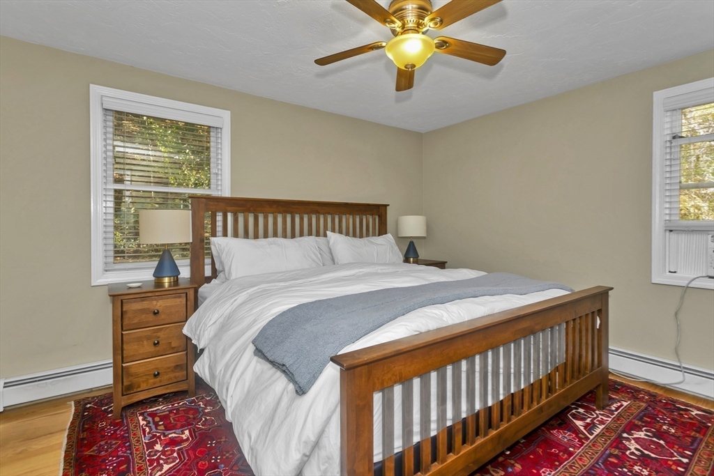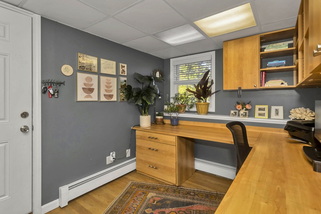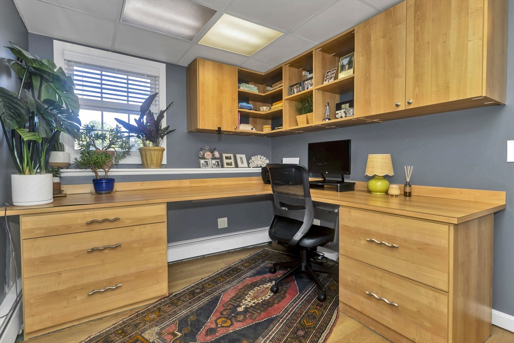 Discover the perfect blend of comfort and style in a home that welcomes you with a fresh and inviting atmosphere from the moment you step inside. The entire upper level has been updated with gleaming red oak hardwood floors that flow seamlessly through the kitchen and all three bedrooms. Relax in the cathedral ceiling family room featuring a cozy fireplace and open floor plan. The cabinet-packed kitchen boasts granite countertops, stainless steel appliances, and a spacious eat-in area. The 2022 renovated bath shines with quartz countertops, custom cabinetry, and a double vanity. Downstairs, a finished lower level offers a versatile space ideal for a home gym or movie nights, along with a bright home office featuring beautiful built-ins and an oversized laundry room. Outside, enjoy a fenced backyard with a firepit—perfect for entertaining. Situated on a quiet dead-end street, just minutes from the T, Mass Pike, and Tufts Grafton Campus. Don’t miss this one!