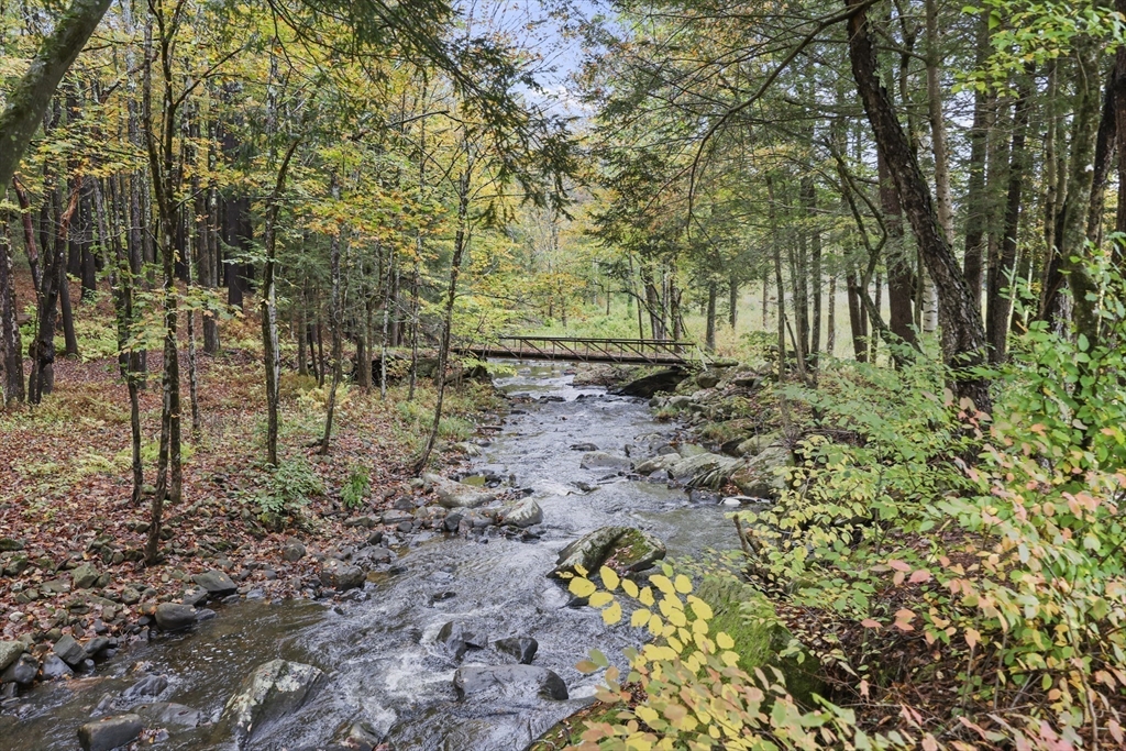 Fabulous Estate Property with ponds, rushing streams, huge acreage and a gem of a house. The 220 acres abuts state forest and beautiful Walker & Spark Brooks both run through the property. The 2BR/2.5B home has lovely views of the pond and hills beyond, and was totally renovated to the highest standards in 2023 and 2024. Native stone fireplace, heart pine floors, new kitchen, baths, heating, windows & insulation. There is a large post & beam barn plus stone foundations from an earlier barn. The fishing is great and trails have been cleared for hiking and horseback riding. Total privacy with 4,000 feet of road frontage. Conveniently located near Tanglewood, Jacobs Pillow and most other Berkshire cultural attractions as well as state forests and wildlife management areas. Under 3 hrs. to NYC, 2.5 hrs. to Boston.