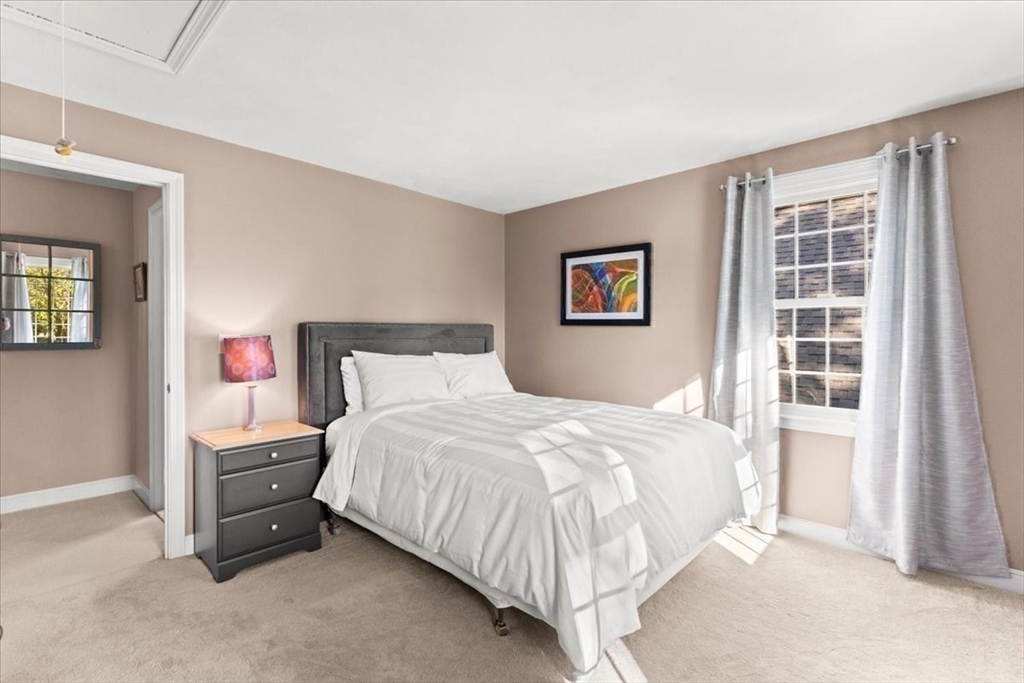 THE ONE YOU HAVE BEEN WAITING FOR! Nestled on a beautifully wooded cul-de-sac, this impeccable 3 bedroom, 2.5 bath Colonial offers the perfect blend of comfort, privacy and convenience. Step inside to find a warm and inviting layout featuring beautiful living areas, gleaming hardwood floors, and abundant natural light. The custom kitchen opens to a spacious family room-ideal for everyday living and entertaining. Upstairs, the primary suite includes a gorgeous private bath and generous walk-in closet, while two additional bedrooms offer comfort and flexibility and another full bath. Enjoy peaceful mornings or evenings on the deck overlooking the serene, tree-lined backyard. Located in a sought-after neighborhood close to Martin Elementary School and easy highway access, this home combines timeless style with modern comfort. Newer kitchen, baths, windows, roof, heating, HW tank and interior and exterior paint. Complete list attached. NOTHING TO DO BUT MOVE IN! WELCOME HOME!
