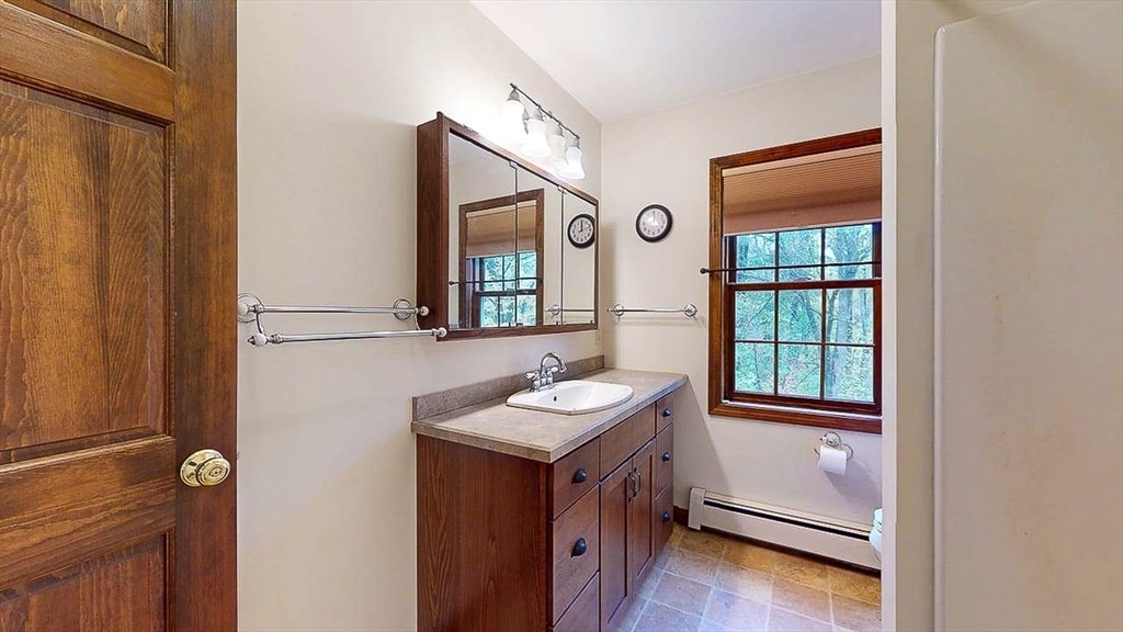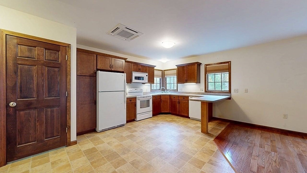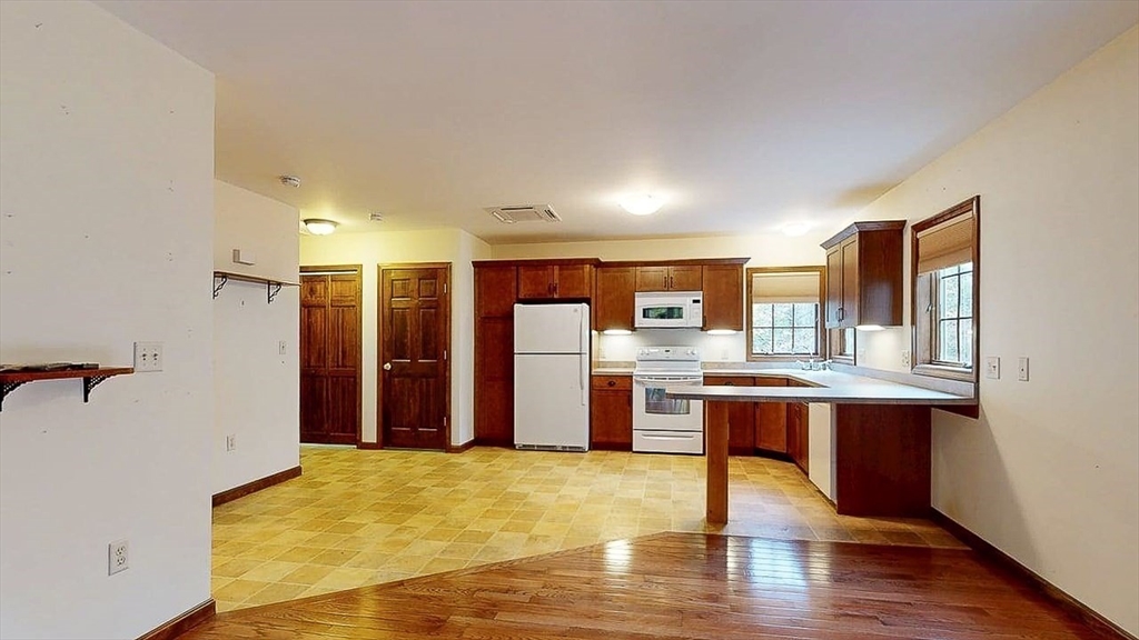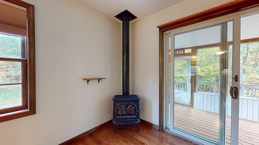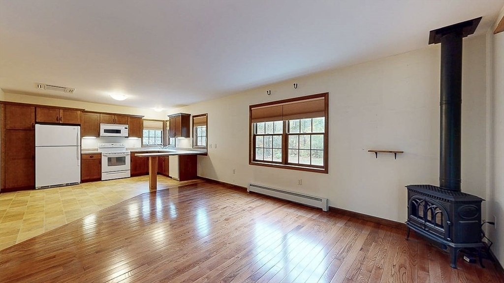 This newer construction has it all and more! 1 bedroom, 1 bathroom layout with an open floor plan that seamlessly connects the kitchen and living room. The kitchen boasts beautiful wood cabinets and a convenient peninsula for extra seating. The living room is complemented by a propane gas wood-burning stove, perfect for cozy evenings, also an oil-powered boiler with one-zone baseboard heating, a Mitsubishi electric mini-split system to keep you comfortable year-round. The living area also includes a convenient washer and dryer closet. You'll love the hardwood floors in the living room, while the bedroom is cozy with wall-to-wall carpeting. The unit also features a sun porch with storm windows, perfect for enjoying the outdoors, generator powered by propane and there's a three-car oversized garage and workshop. Living area is on the second floor. 1st floor is the 3-car garage. This is a fiduciary sale. Court approval is required up to 120 days.