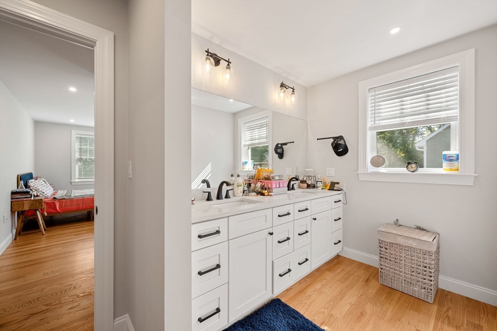 Built in 2022, this stunning newer-construction home offers modern living across three spacious levels with hardwood floors throughout. The main floor features an open-concept layout with a chef's kitchen showcasing an oversized island, upgraded stainless-steel appliances, and elegant finishes that flow seamlessly into the dining and living areas. Upstairs, you’ll find two ensuite bedrooms, each with beautifully appointed baths and generous closet space. The finished lower level provides flexible space for a media room, gym, and home office. Enjoy outdoor living on deck overlooking the expansive, fully fenced yard, perfect for relaxing or entertaining. Conveniently located close to schools, shopping, and major routes. Rent includes landscaping and snow removal. First month and 1 month security deposit required upon signing. Small pets allowed. Text list agent for showings.