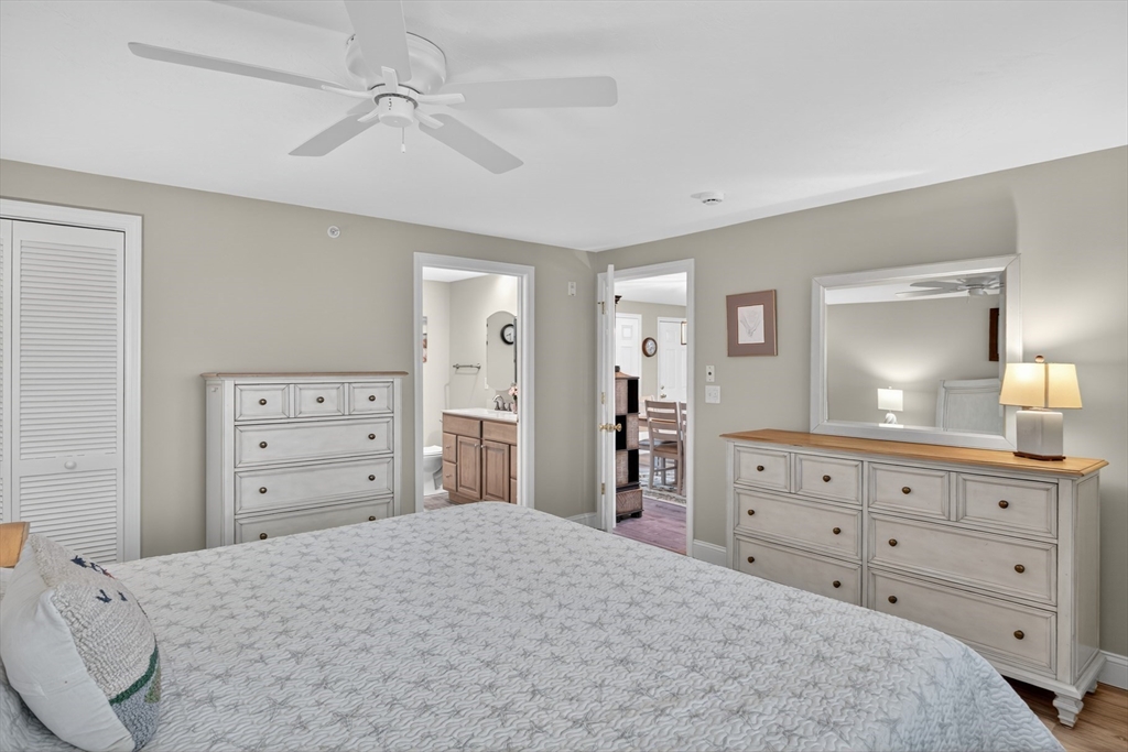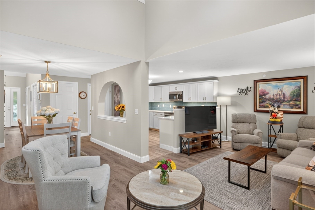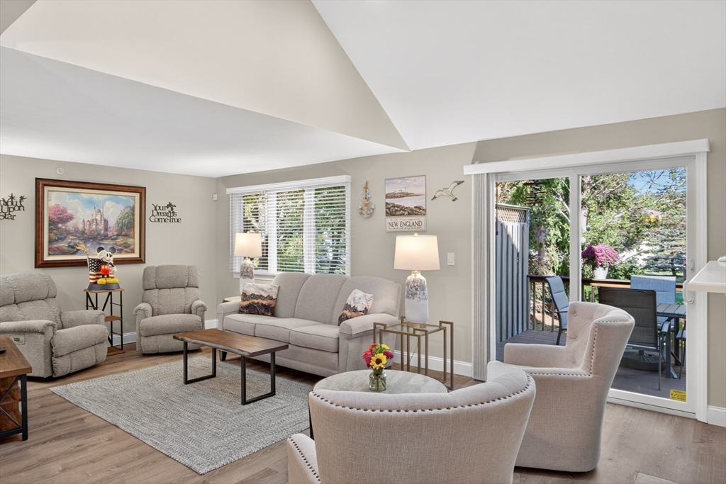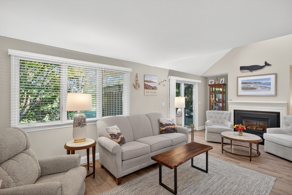 Step into this beautifully updated Nantucket-style condo at Southport, featuring a brand-new kitchen with Cambria quartz counters, a remodeled primary suite bathroom with double vanity and all-new flooring throughout the main level. Meticulously maintained, this bright two-level home offers a 1st-floor primary suite plus a second-floor bedroom, loft area, additional guest room/office, and skylights. A half bath and laundry are conveniently located on the main level. Features include a cathedral entry, gas fireplace, and a unique arched opening between the kitchen and dining room. Enjoy a private deck and serene cul-de-sac setting. Truly move-in ready! Furnace (2019), hot water tank (2023), all new lighting fixtures and ceiling fans. Experience Southport's amenities; golf, tennis, pickleball, bocce, clubhouse, fitness center, and year-round swimming, all just one mile from Mashpee Commons. This vibrant 55+ community offers endless opportunities to be as active and involved as you chose.