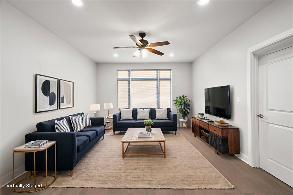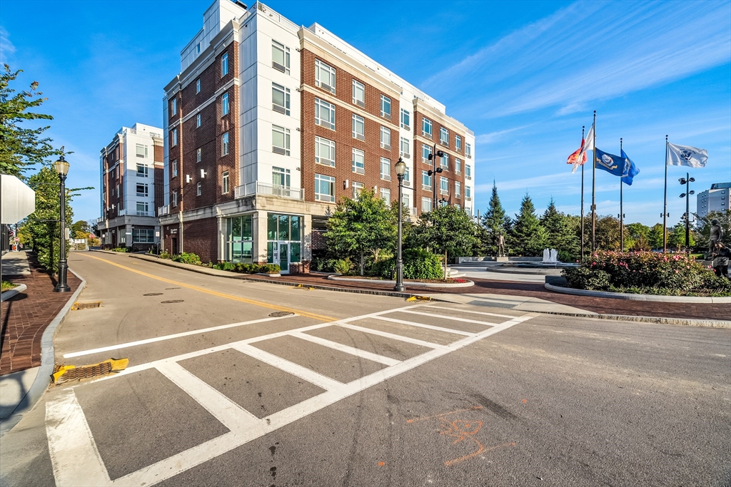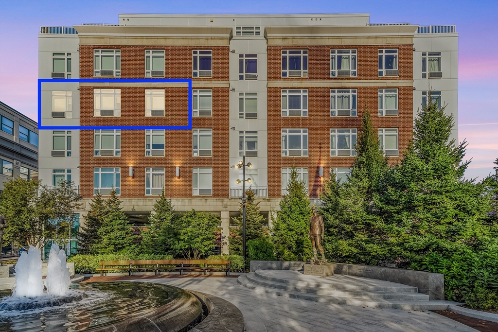 A deeded, upgraded ground-level garage parking space—one of only a limited number—offers rare convenience at this fourth-floor, 2 bed, 2 full bath, luxury corner-unit condo, built in 2017 and ideally located in the heart of Quincy Center, just steps from the MBTA, and an easy commute to Boston. Designed for both comfort and style, it features high ceilings, wood flooring, oversized windows with custom blinds, and park and fountain views from every room. The spacious layout offers bedrooms on opposite sides, with a private ensuite bath including radiant floor heating. The kitchen is equipped w/ stainless steel appliances, two-tone cabinetry, quartz countertops, under-cabinet lighting, and a designer backsplash. Additional highlights include in-unit laundry, three heating/cooling zones, and a walk-in closet in the primary suite. The $390 HOA covers gas, water/sewer, trash, snow removal, and management fee. Pets welcome. Close to shops, restaurants, and 2 miles to Wollaston Beach.