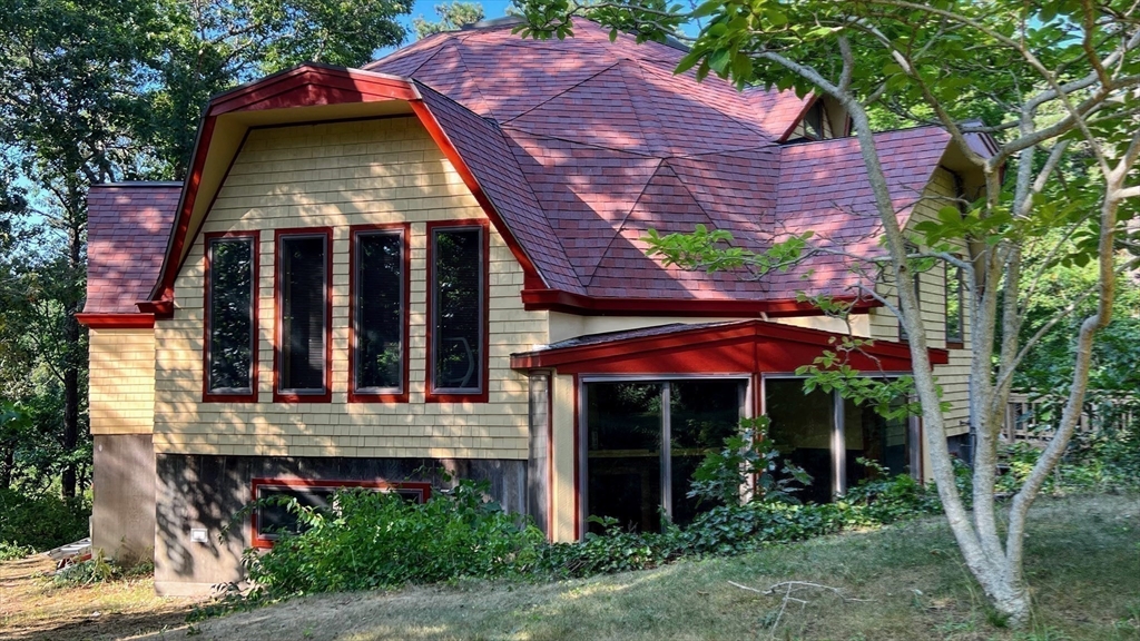 Welcome to the energy efficient and storm resistant architectural design of this Geodesic Dome home.The exterior is appointed with all the curb appeal of a quintessential C-Cod style home and is perfectly situated on a cul-de-sac with water views and access to Minister's Pond a 22+ acre paddling and fishing paradise. Cape Cod Rail Trail is just a couple hundred feet away and numerous beaches are close by. Inside you'll find soaring ceilings with unique skylight that allow natural light to filter in all day and stars to shine at night.Covered porch off the kitchen.The 2nd FL exterior balcony and is awaiting a primary suite, room for walk-in and large primary bath. Whole house Generator,EV charger, indoor access to greenhouse and C-Vacc, many more features. Full walk-out basement for potential ADU? This home that is totally move in ready but has built in value for upgrades. *Open Houses Oyster Fest weekend 10/18 from 2- 4 and 10/19 from 10 - noon. Don't miss this out!!!
