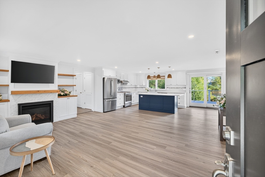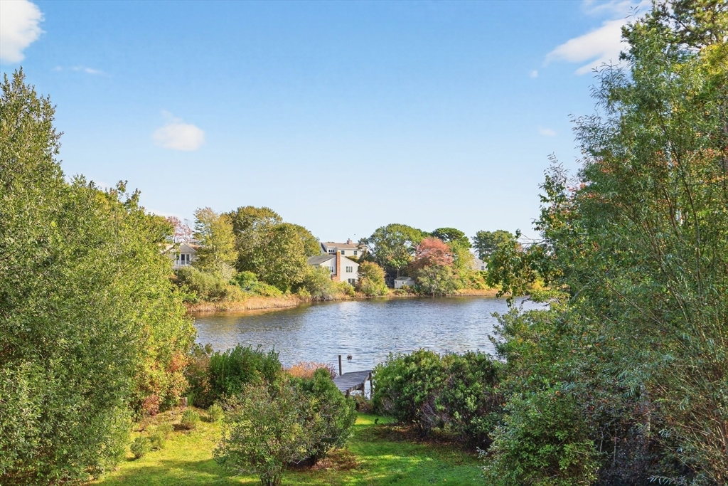 Renovated Cape nestled in the heart of the Popponesset Beach Association. This charming home offers tranquil views of Deans Pond and is just a short stroll or bike ride to your private association beach, where expansive sands meet the sparkling waters of Nantucket Sound. Whether you're seeking a summer escape or a year-round residence, this property is ready for its next adventure. Inside, you'll find three spacious bedrooms and three and a half beautifully appointed bathrooms. The brand-new kitchen features stainless steel appliances, custom cabinetry, and a striking white subway tile backsplash accented with a blue scallop design. The open living room invites relaxation with a gas fireplace, custom built-ins, crown molding, and shiplap detailing throughout. Step outside to a large wooden deck off the kitchen and dining area, perfect for entertaining. A few steps down leads to a stunning stone patio that extends your living space into the outdoors and to Deans Pond to Kayak or fish!