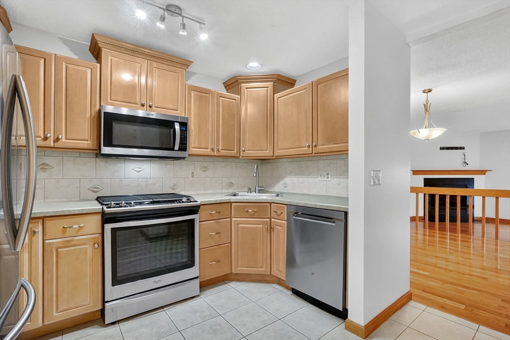 Welcome to 92 Dogwood Lane, Agawam — a beautifully maintained condo that blends comfort, style, and easy living. The main level features gleaming hardwood floors through the dining area and a step-down living room with a gas fireplace enhanced by a granite surround, creating a warm, inviting atmosphere. French doors flood the space with natural light and open to a deck ideal for morning coffee or relaxing outdoors. The kitchen connects effortlessly to the living areas and showcases stainless-steel appliances including a gas range and upgraded cabinets. A half bath adds everyday convenience. The finished basement offers flexible space for a home office, gym, or media room. A one-car garage provides additional storage and covered parking — a valuable bonus for New England weather. Upstairs, two spacious bedrooms and two full baths include a primary suite with a walk-in closet and private bath. This one truly stands out — don’t miss your chance to make it yours!