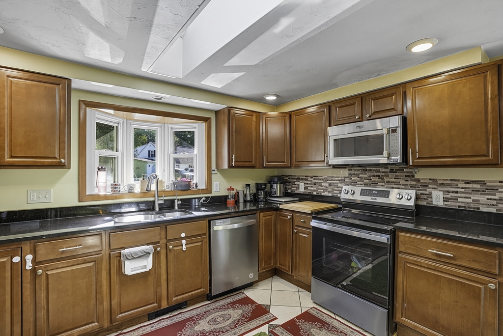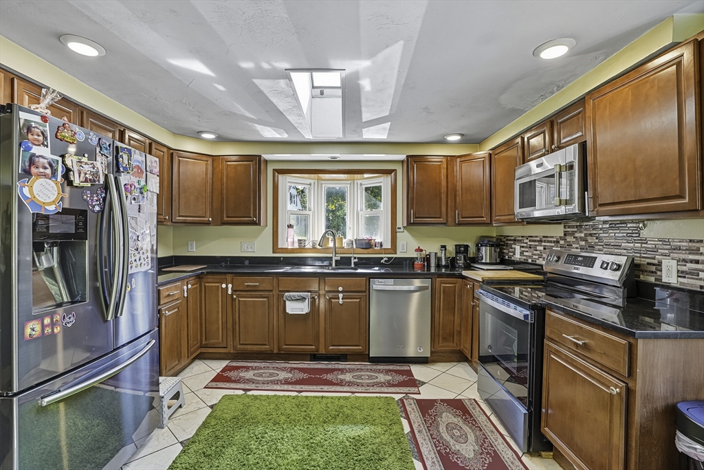 For Rent! Spacious 3-bedroom, 2-bath home in a desirable location. Bright living room with bay window and maple fireplace décor. Kitchen features granite counters, oak cabinets, and skylight. Dining room with maple tile floor and sliding door to deck. Main level offers 3 bedrooms and 1 full bath. Walkout basement includes fireplace, additional bedroom, full bath, and large entertainment area. Enjoy the spacious level backyard with brick patio and plenty of room for outdoor living. First, last, and security required. Applicants subject to credit, criminal & background checks. Don't miss it.