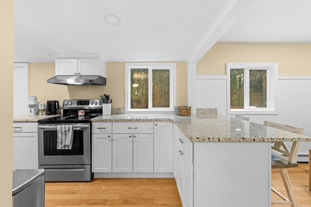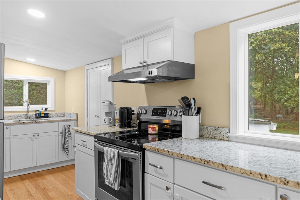 Lakeville Ranch with Space, Comfort & Convenience! Welcome to this 2-bed, 1-bath ranch on .62-acres, where privacy meets outdoor enjoyment. Perfect for downsizing, single-level living or starting a new chapter this home has everything you need! Open entryway leading to a bright living/dining area with kitchen. Hardwood floors throughout with a skylight that fills the space with natural light. A slider leads directly to a deck, perfect for morning coffee or outdoor dinners. The backyard a true highlight; generous in size to garden, entertain or just relax in your peaceful retreat. Living room fireplace is perfect for cozy nights and a bonus room offers space for a office, hobby room or a third bedroom. Detached garage & 4+ driveway, giving you plenty of parking & storage options. Just minutes from Rt. 105, 495, 24, & the Commuter Rail making travel simple. Local shopping, dining & amenities add to the ease of everyday life. Don’t miss your chance to make this gem your next Chapter!