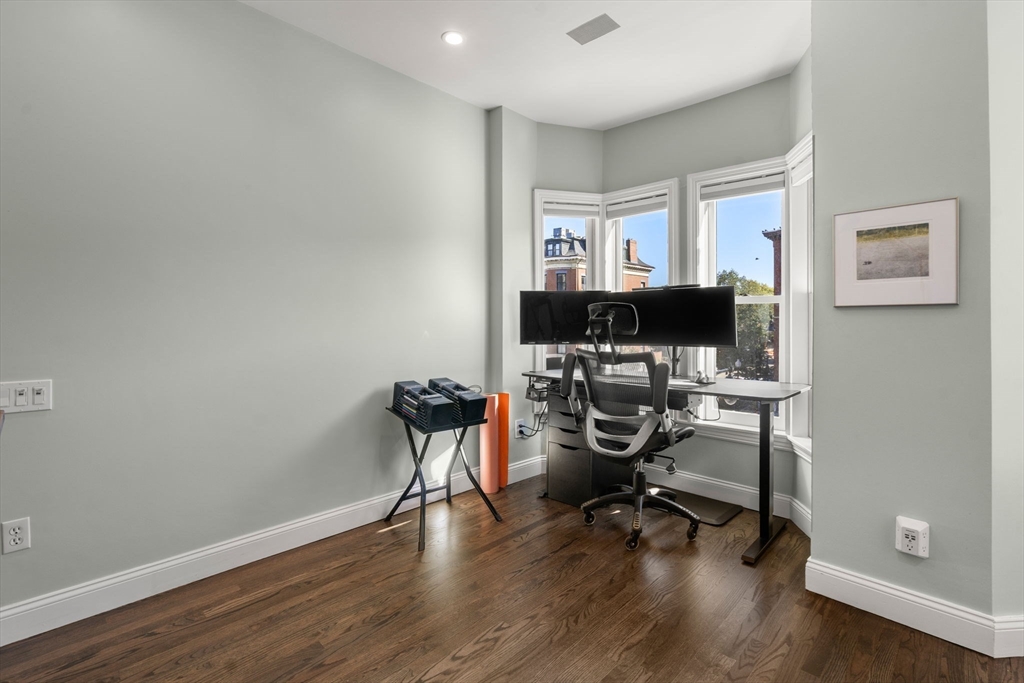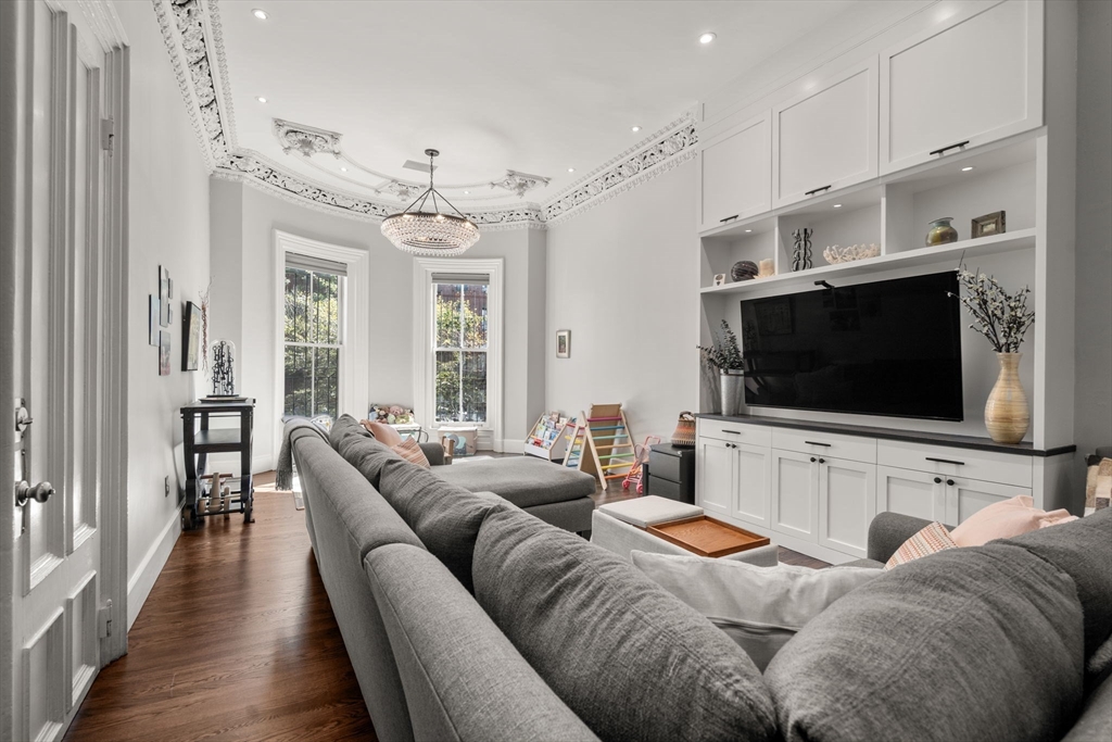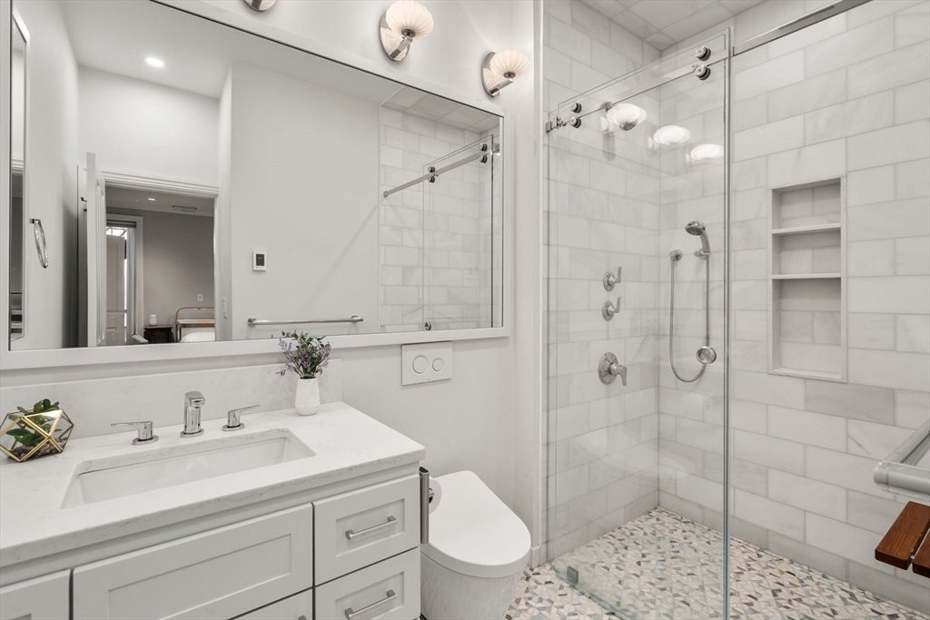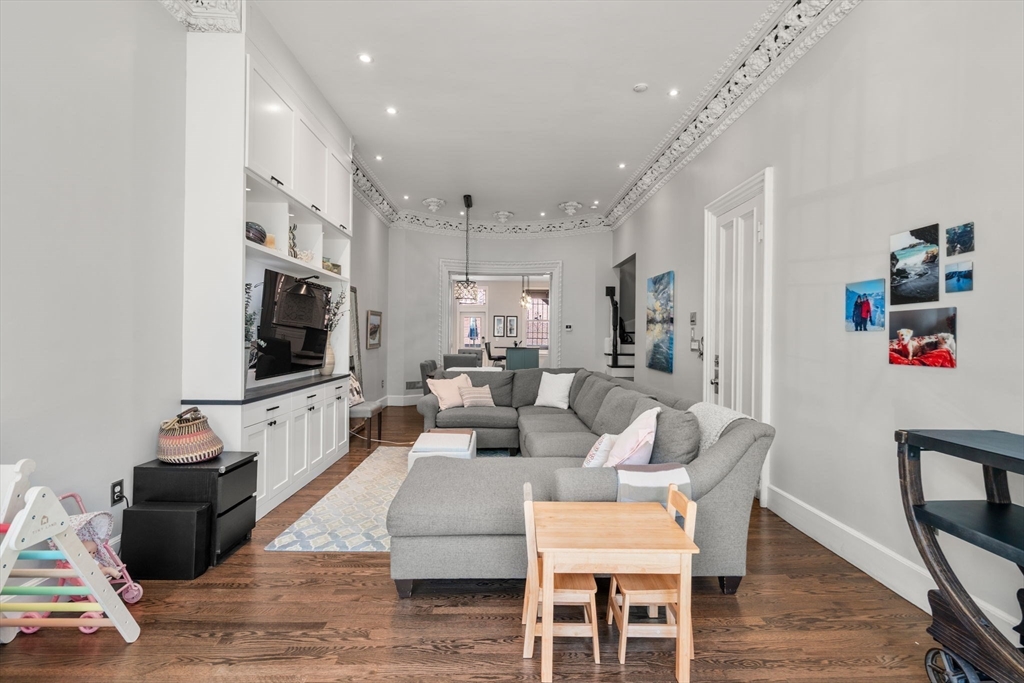 Beautifully updated two-story luxury condo for rent in the heart of Boston’s South End. This stylish and spacious 2-bedroom, 2.5-bath home features an updated kitchen with custom built-ins, in-unit laundry, AC, and two private outdoor deck spaces. Natural light pours in through the impressive 12' ceilings on the main level with original details such as crown molding and an antique glass pocket door. King-sized primary ensuite with radiant heated bathroom floors, custom built-ins and access to deck. Plus a generously sized second ensuite bedroom. One direct-access parking space included. Enjoy a functional layout with "Smart House" features, perfect for both everyday living and entertaining. Ideally located within walking distance to the Prudential Center, Back Bay and Mass Ave T stops, and many of the South End’s favorite restaurants, shops and cafes. Experience the best of city living from this stylish and well-appointed home on Tremont Street. Available 11/1. Pets negotiable.