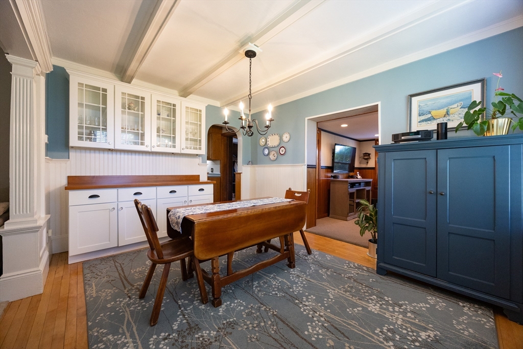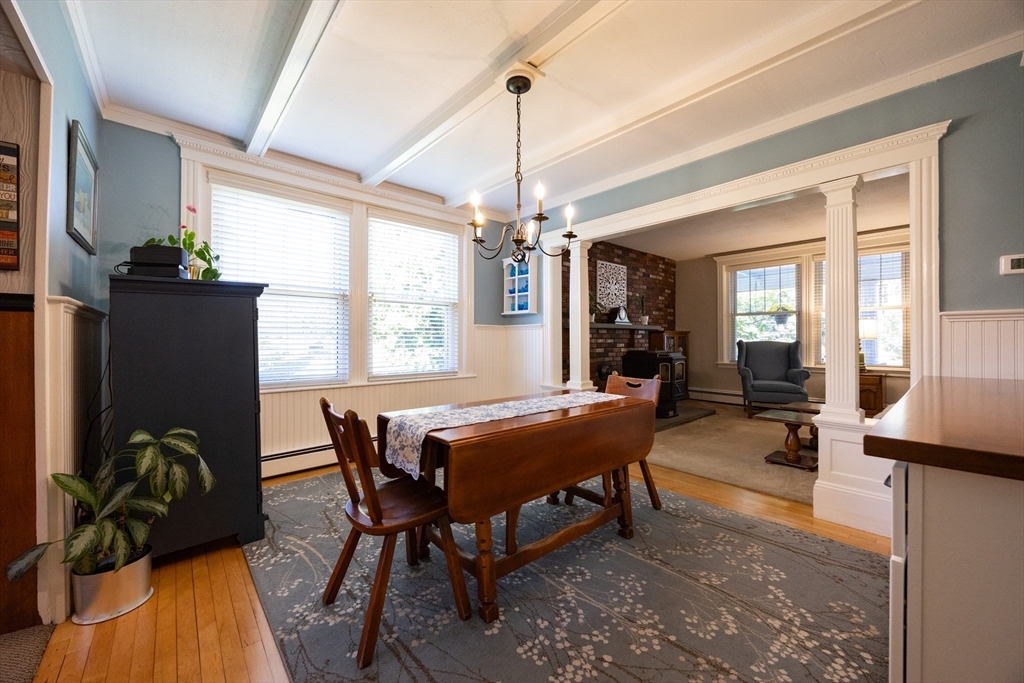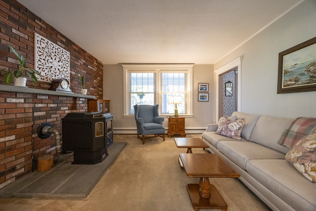 Welcome home to this charming and comfortable haven, set high for privacy and beautiful curb appeal. The inviting front porch with a swing is perfect for morning coffee, evening chats, or simply soaking in the peaceful surroundings. Inside, this home blends timeless craftsmanship with modern updates—rich maple floors, classic wainscotting, custom blinds and warm woodwork create an inviting atmosphere throughout. The pellet stove in the living room adds both charm and efficiency, keeping the whole house cozy all winter long.You’ll love the new bathroom, custom BI cabinet in the DR and the bonus room off the kitchen that offers flexible space for a home office or playroom. With three spacious bedrooms, ample closets, and a guest bath on the main level, there’s room for everyone to feel at home.Tucked away yet close to beaches, schools, and conveniences, this property offers the best of both worlds—privacy and proximity. With a garage, solid updates, and undeniable warmth, this is it!