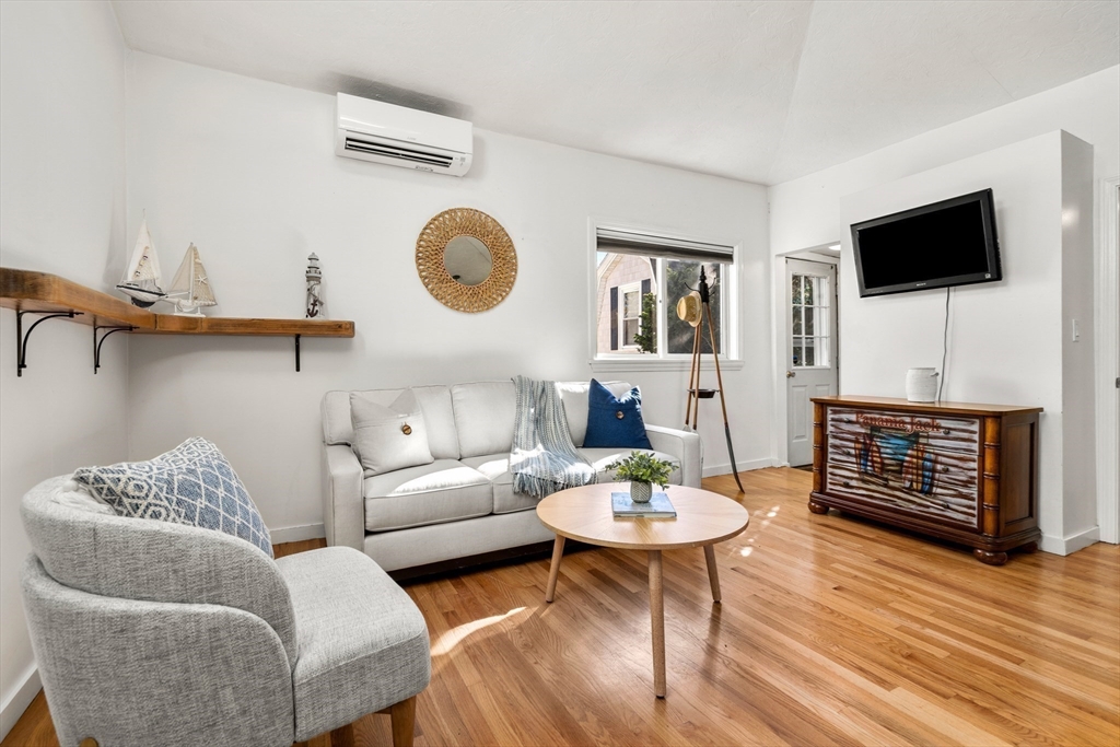 Nahant Bungalow Cottage — This charming seaside retreat offers the perfect space for the first time buyer. The freedom of a single-family home and the price point of a condo. Enjoy your own private fenced patio and yard, ideal for relaxing or entertaining. Inside, the open-concept, single-level layout ensures easy and comfortable everyday living. The updated kitchen boasts quartz countertops, stainless steel appliances, hardwood floors, and a soaring cathedral ceiling. A newer mini-split system provides year-round comfort, while the renovated bathroom features a spa-style shower for a touch of luxury to your daily routine. Newer roof and skylights. Just outside, private off-street parking adds convenience. Breathe in the fresh salt air, listen to the waves, and embrace the simple pleasures of coastal living in this inviting Nahant bungalow.
