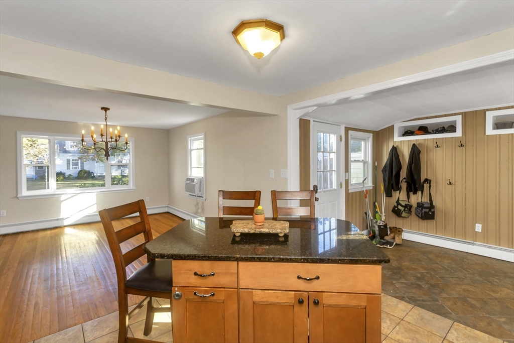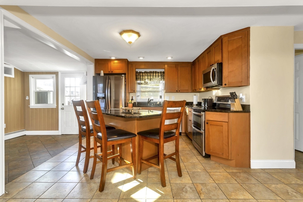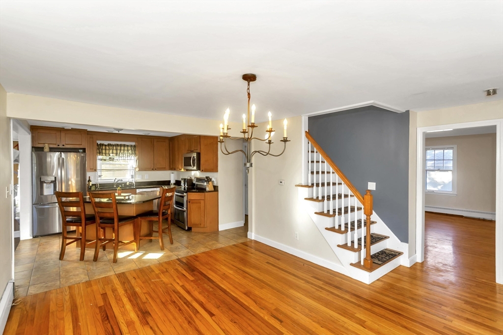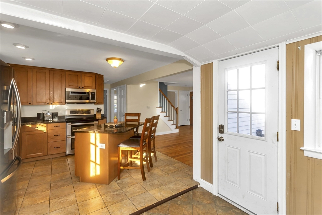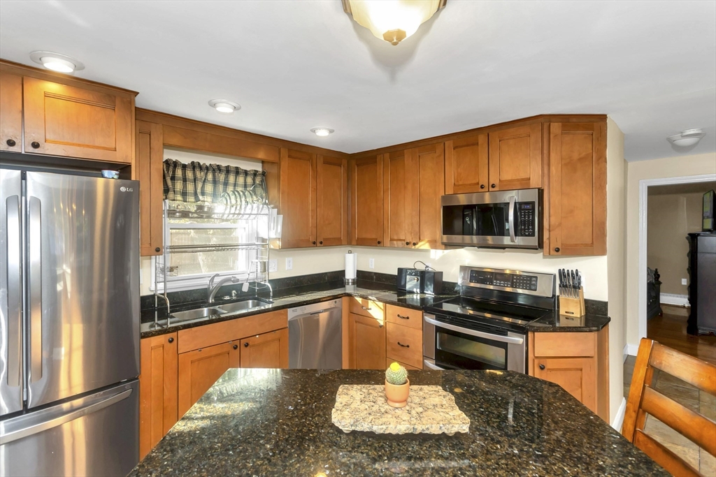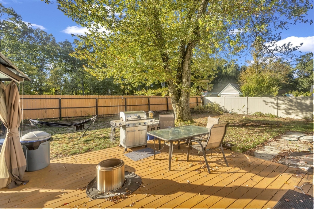 Welcome home to 18 Susan Avenue, South Hadley! So much to love about this house! The kitchen serves as a focal point, featuring a large island ideal for meal preparation or casual dining, enhanced by granite countertops, shaker cabinets, and newer stainless steel appliances, and the open flow to the dining room will make holiday meals so enjoyable. The primary bedroom on the first level has hardwood flooring, as do the living and dining rooms. First floor updated bathroom. Two bedrooms and a half bath on the second floor. Additional living space in the partially finished basement family room. The property extends its living space outdoors with a fenced backyard, complete with a deck and a gazebo, providing ample opportunities for relaxation and entertainment. One car garage with additional storage space. Leaf guards added to the gutters three years ago.