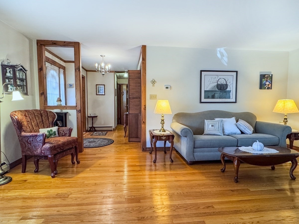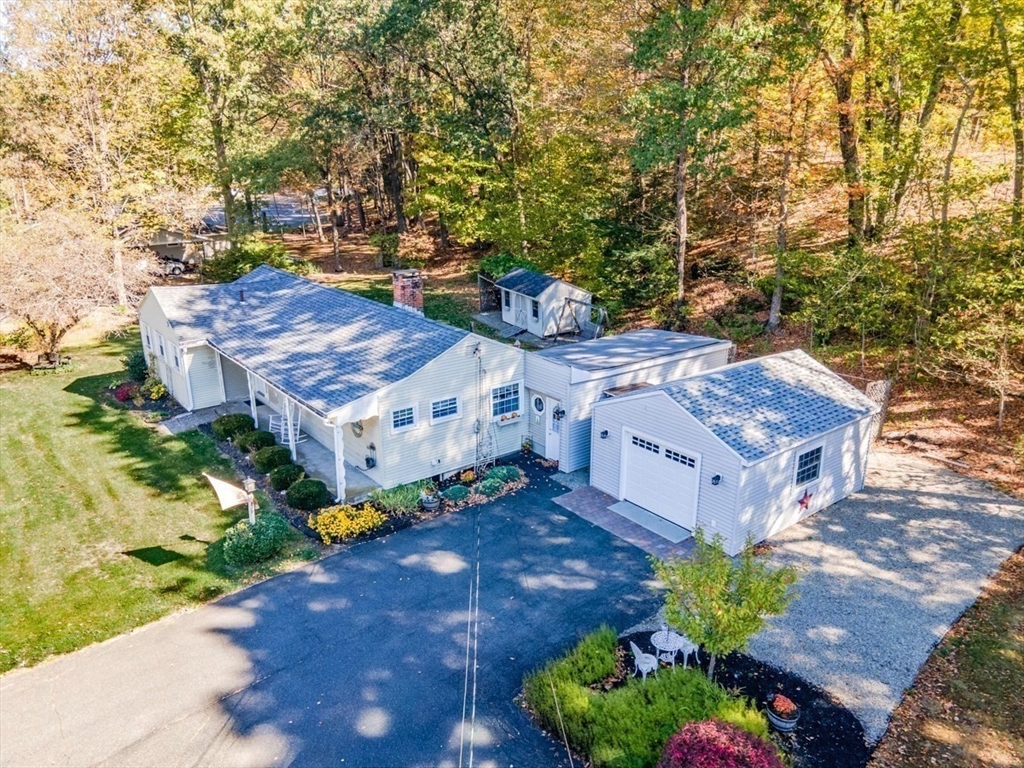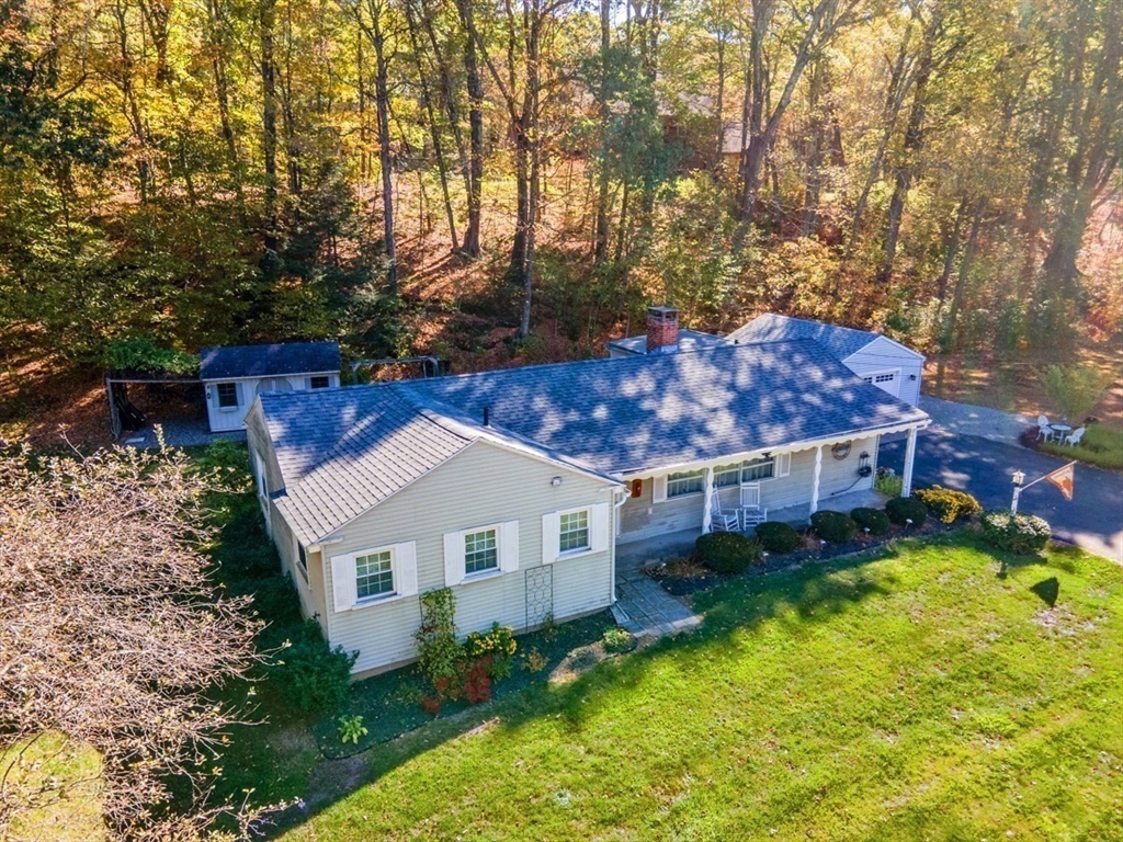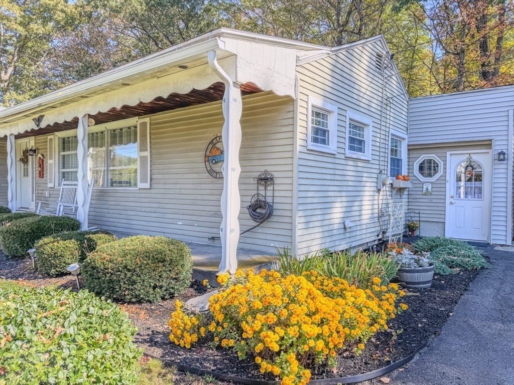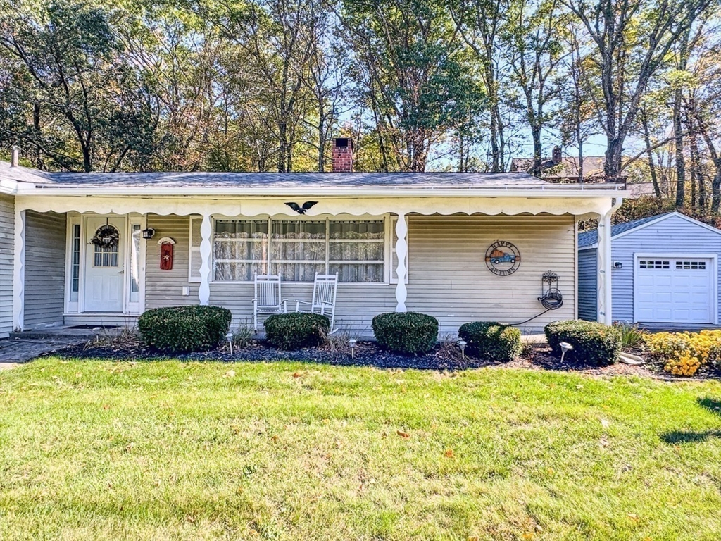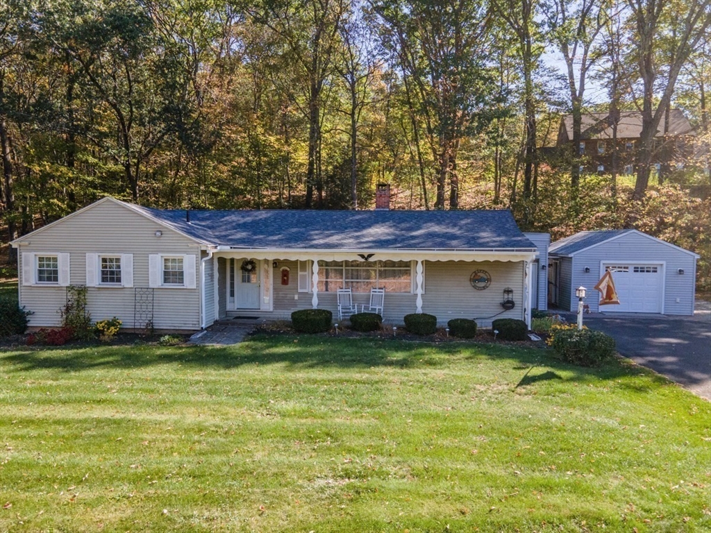 Immaculate single-story home with a welcoming floor plan that includes a cozy living room with a fireplace open to the dining room with a large picture window, an eat-in kitchen with oak cabinets and a pantry, and a family room with two walls of windows to enjoy the view of the nicely manicured backyard. Easy to maintain with natural woodwork, beautiful hardwood floors, vinyl windows, aluminum and vinyl siding, and a newer roof. Front porch, garage, and a storage shed. This lovely, well-maintained home is on .59 of an acre and is conveniently located just minutes to I-91 and Rte 2.
