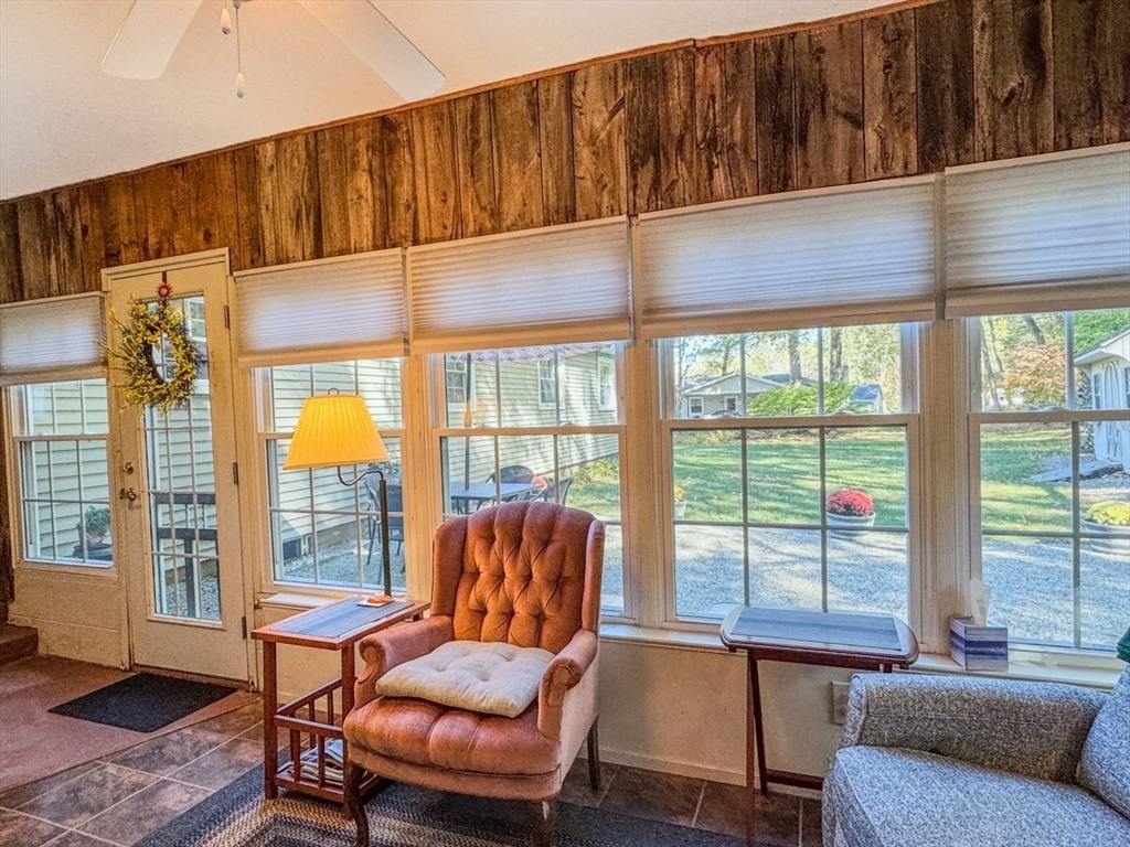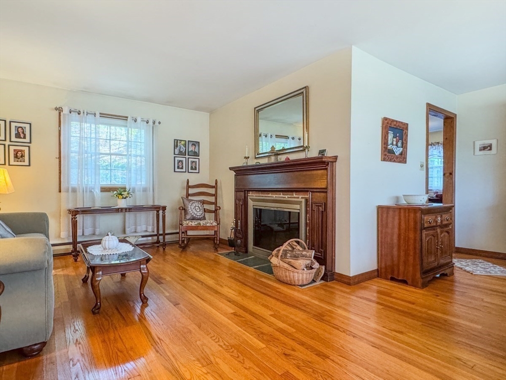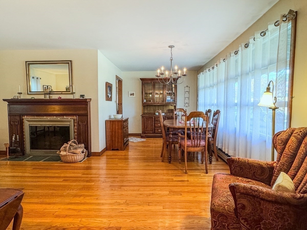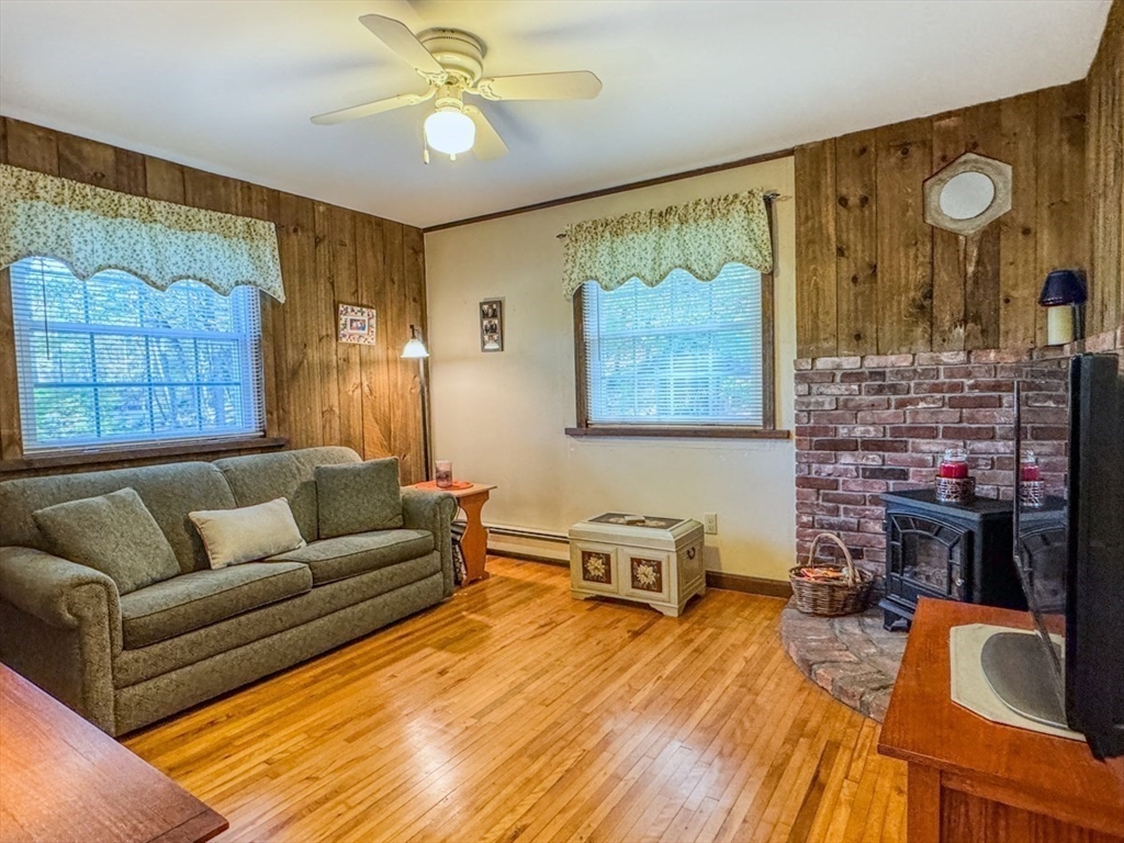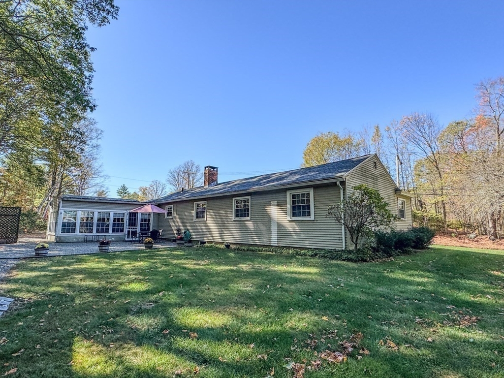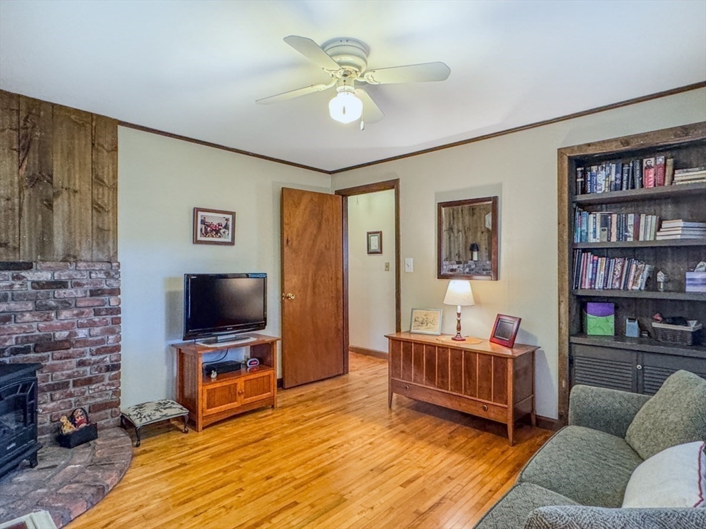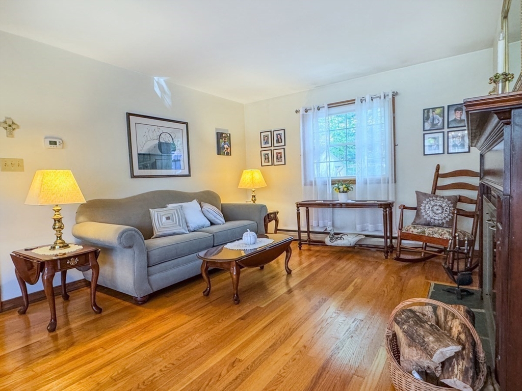 Immaculate single-story home with a welcoming floor plan that includes a cozy living room with a fireplace open to the dining room with a large picture window, an eat-in kitchen with oak cabinets and a pantry, and a family room with two walls of windows to enjoy the view of the nicely manicured backyard. Easy to maintain with natural woodwork, beautiful hardwood floors, vinyl windows, aluminum and vinyl siding, and a newer roof. Front porch, garage, and a storage shed. This lovely, well-maintained home is on .59 of an acre and is conveniently located just minutes to I-91 and Rte 2.