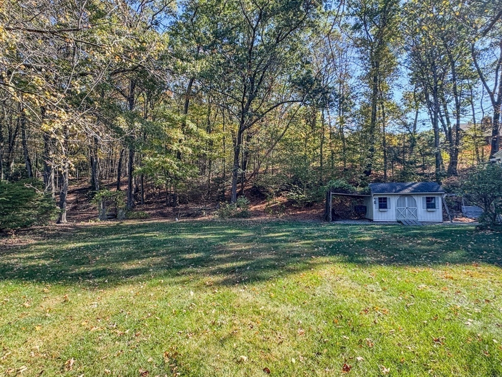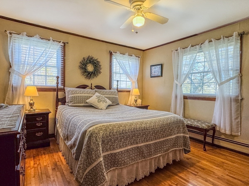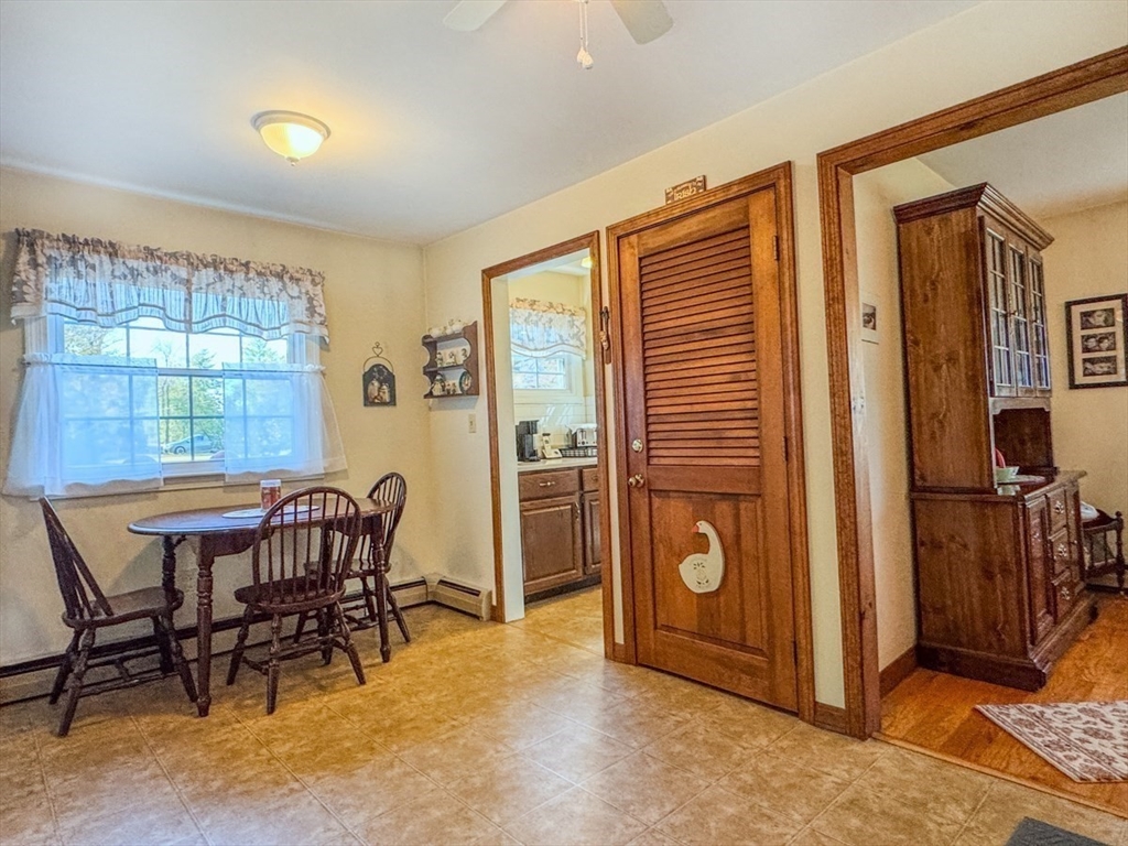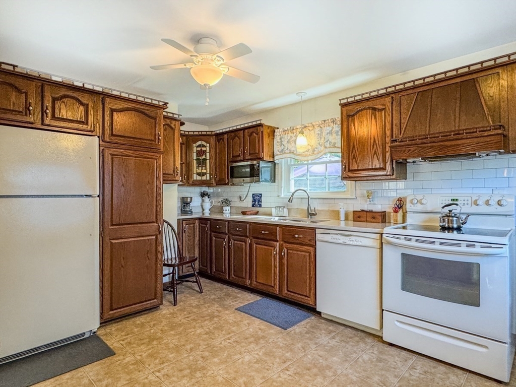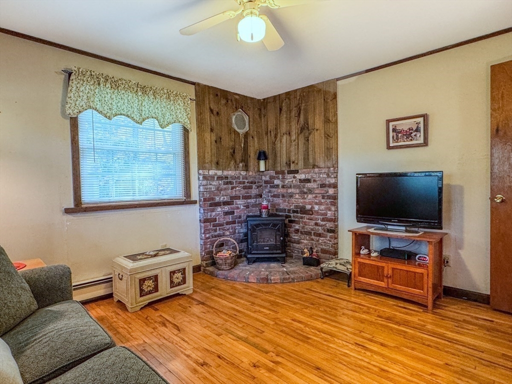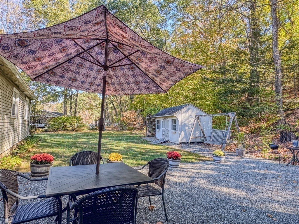 Immaculate single-story home with a welcoming floor plan that includes a cozy living room with a fireplace open to the dining room with a large picture window, an eat-in kitchen with oak cabinets and a pantry, and a family room with two walls of windows to enjoy the view of the nicely manicured backyard. Easy to maintain with natural woodwork, beautiful hardwood floors, vinyl windows, aluminum and vinyl siding, and a newer roof. Front porch, garage, and a storage shed. This lovely, well-maintained home is on .59 of an acre and is conveniently located just minutes to I-91 and Rte 2.