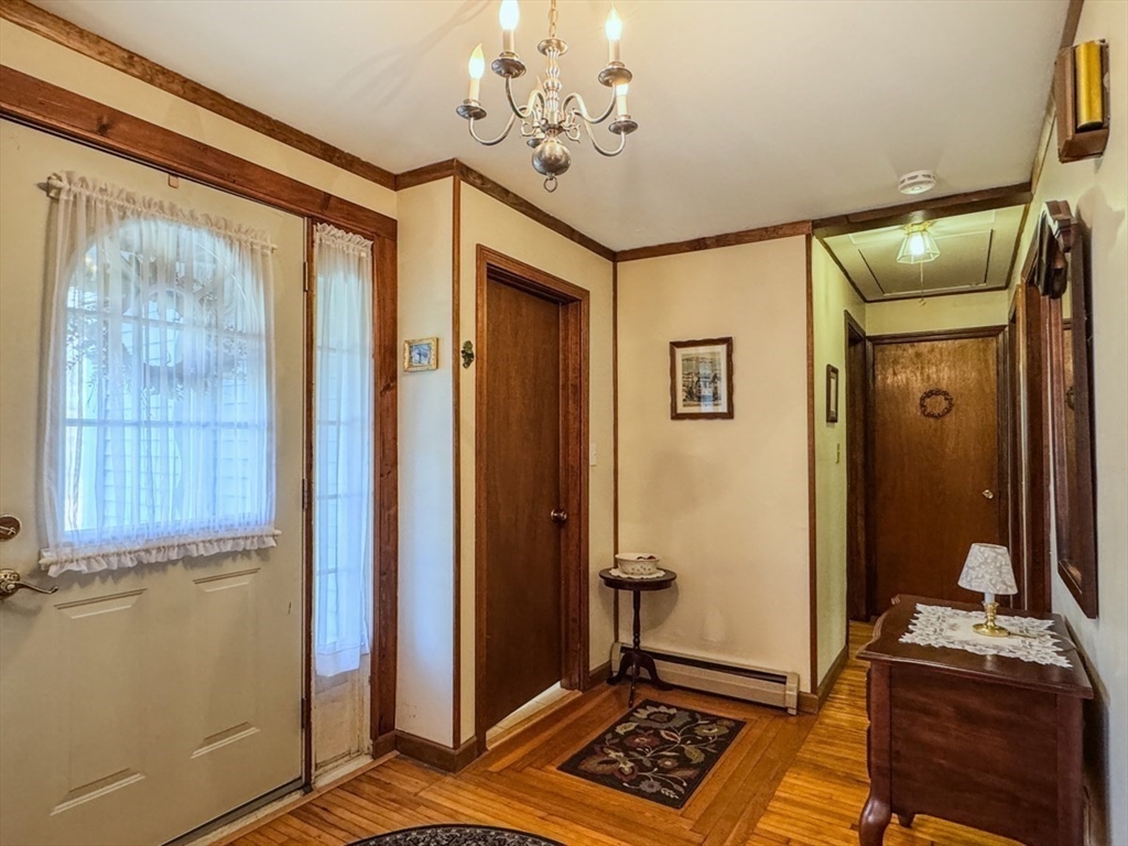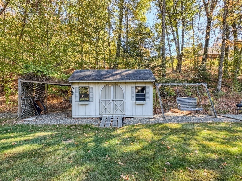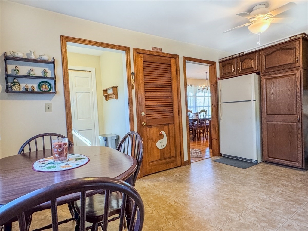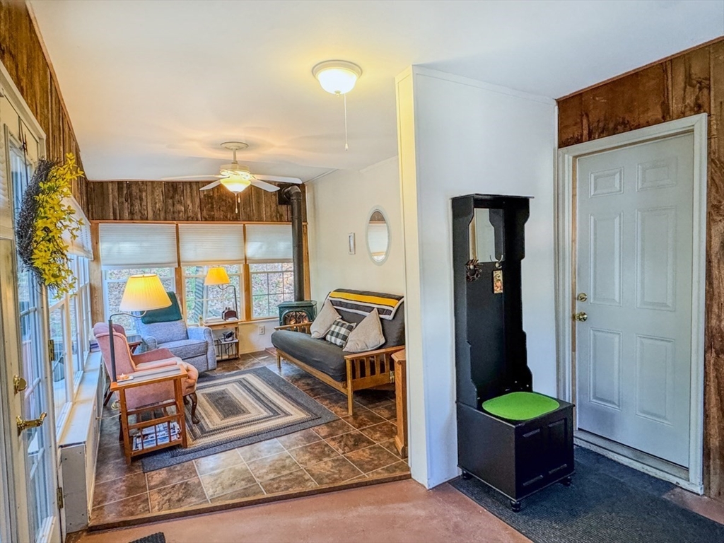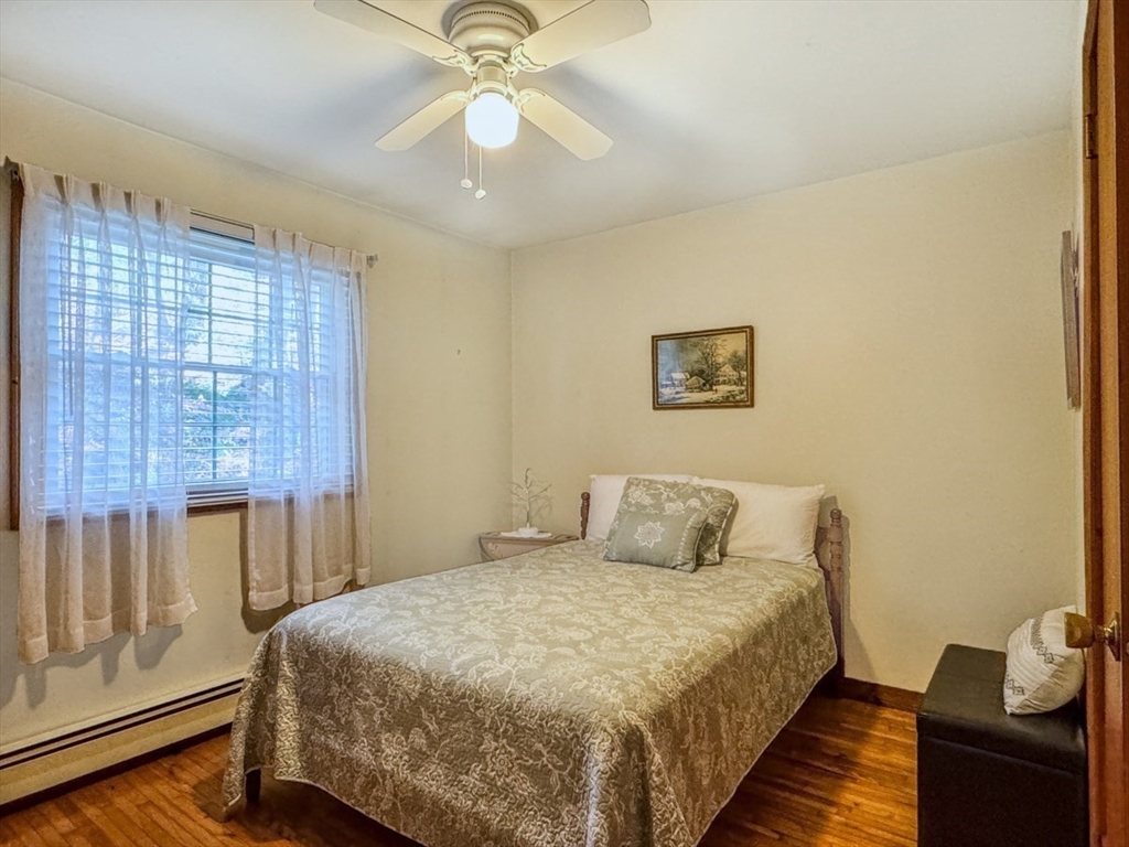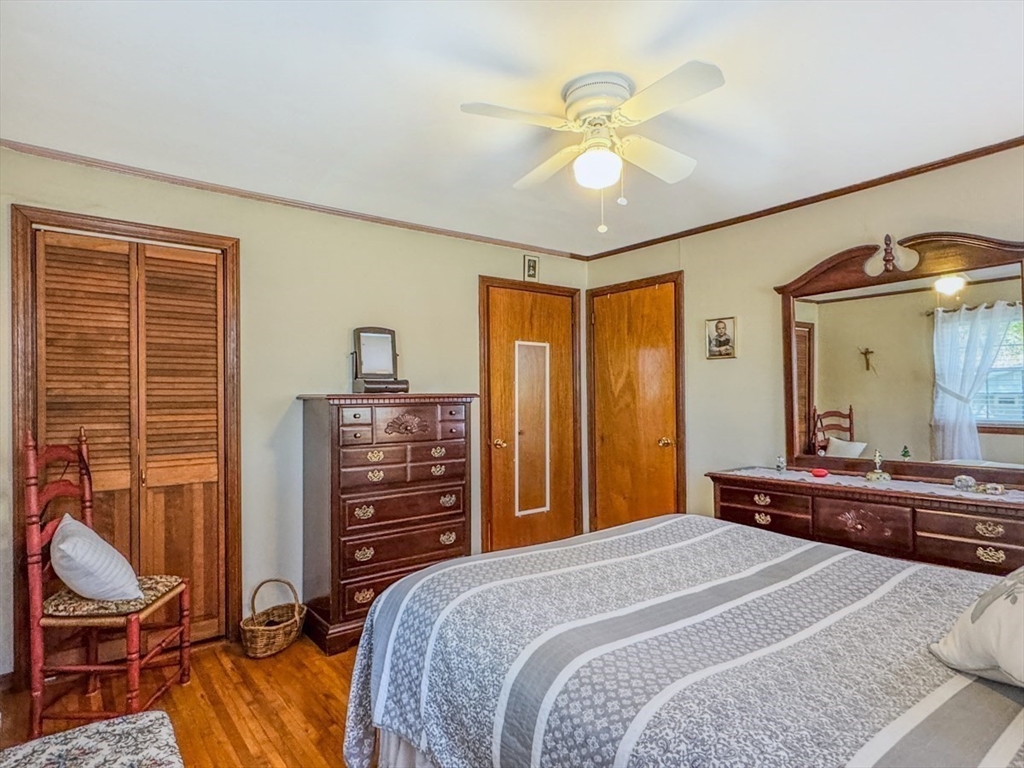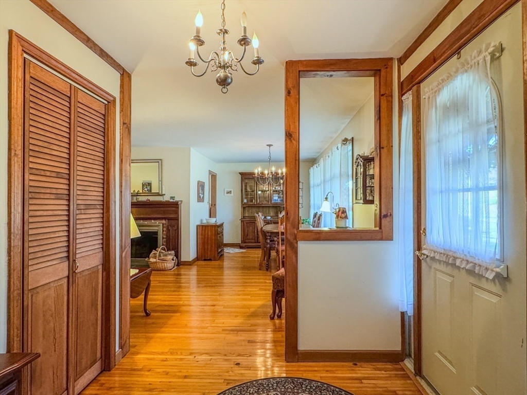 Immaculate single-story home with a welcoming floor plan that includes a cozy living room with a fireplace open to the dining room with a large picture window, an eat-in kitchen with oak cabinets and a pantry, and a family room with two walls of windows to enjoy the view of the nicely manicured backyard. Easy to maintain with natural woodwork, beautiful hardwood floors, vinyl windows, aluminum and vinyl siding, and a newer roof. Front porch, garage, and a storage shed. This lovely, well-maintained home is on .59 of an acre and is conveniently located just minutes to I-91 and Rte 2.