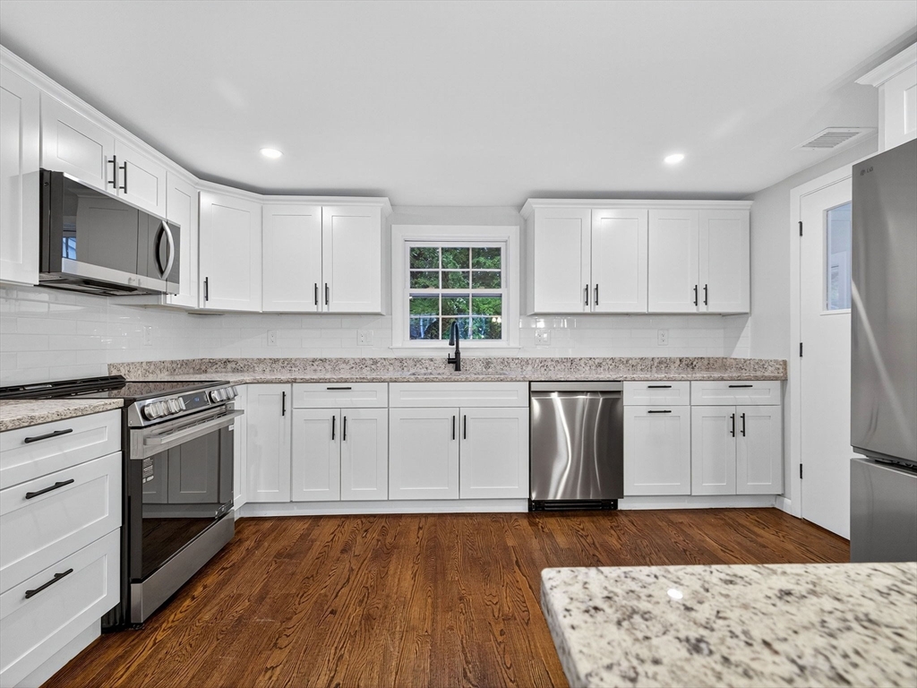 Welcome to 40 Bratley Street! A beautiful fully renovated three bedroom, two full bath Cape Cod gem nestled on a cul-de-sac in desirable Melrose. As close to new construction as you can get, this home boasts a perfect blend of modern amenities and classic charm. Step inside to discover a thoughtfully designed open concept living space that effortlessly combines the living room, dining area, and kitchen. Bathed in natural sunlight this welcoming atmosphere invites you to relax, entertain, and create lasting memories. State of the art kitchen, featuring high end finishes that will delight any culinary enthusiast. Enjoy sleek, custom cabinetry, granite countertops, and brand new stainless steel appliances. Three well appointed spacious bedrooms, two luxurious full bathrooms plus bonus space in the finished basement. Situated in a peaceful cul-de-sac, just minutes away from Melrose's vibrant downtown, offering an array of shopping, dining, public transportation and easy commuting access.