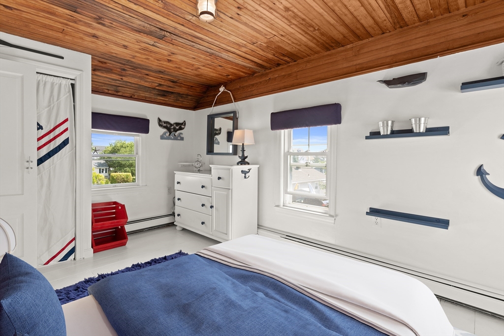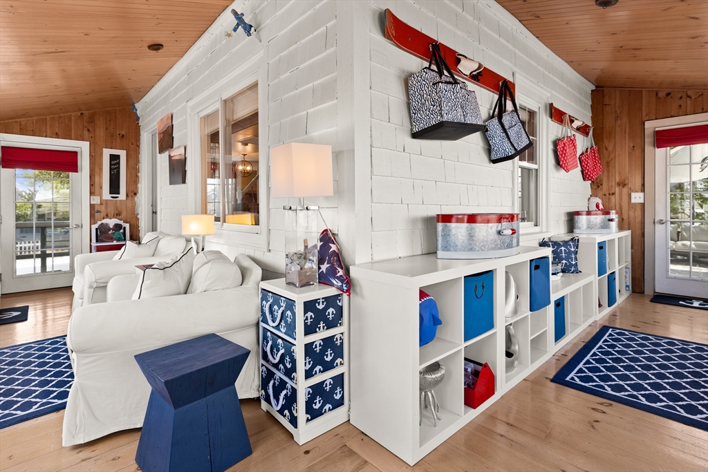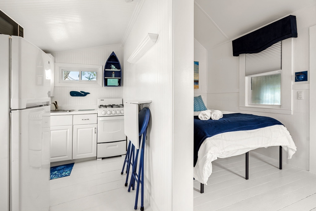 Discover the ultimate Plum Island retreat at the "Wishbone"— including 2 lots totaling 8,662 sqft. This charming 2-bedroom, 1.5-bath, 1,074 sqft main home is complemented by a detached bunkhouse with kitchenette and full bath, ideal for guests, home office, studio, or rental income. The 1,074 sq ft does not include the ~224 sqft bunkhouse or the ~371 sqft 3-season porch. Centrally located on the island, the property sits on a rare double lot with a large lawn, 6+ parking spots, and unbeatable proximity—just 1 block to the ocean and ½ block to the Basin. The first level offers living and dining rooms, 3-season porch, office, kitchen, laundry, and half bath; upstairs features 2 bedrooms and a full bath. Outside, enjoy a private back porch, outdoor shower, and the charming bunkhouse. Proven short-term rental success ($125K+ in 2024, $116K+ YTD 2025) with option to convey fully furnished makes this an exceptional investment or lifestyle opportunity.