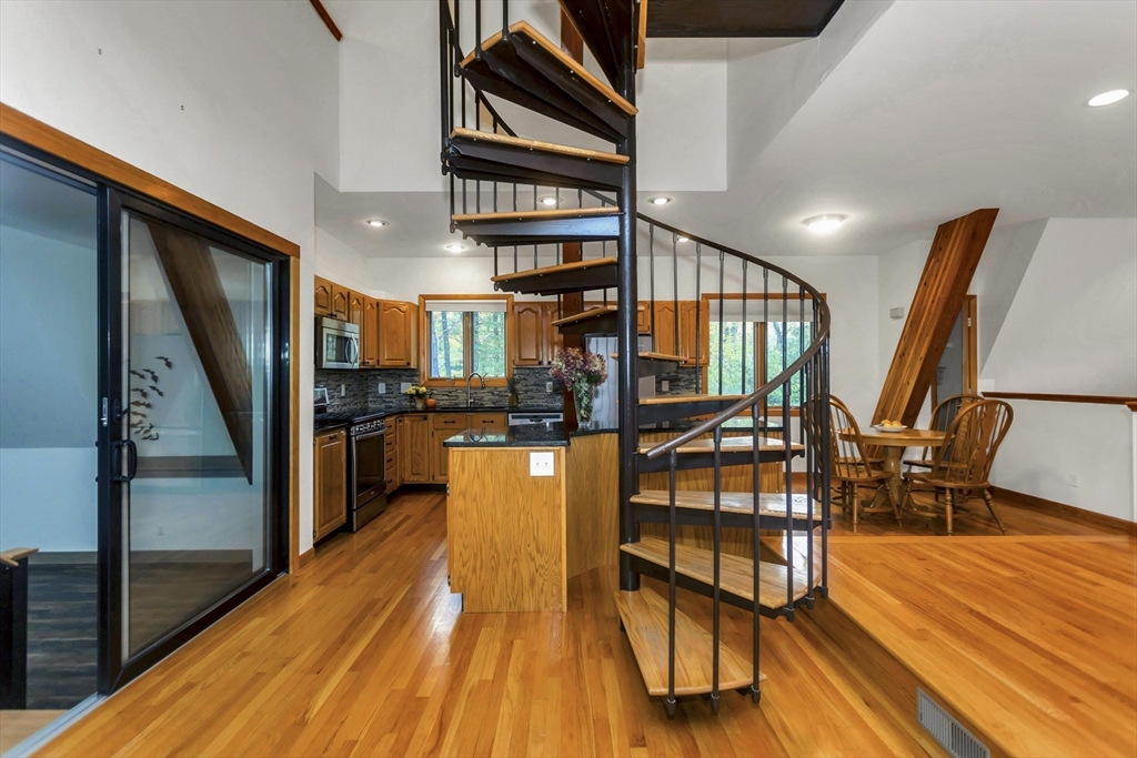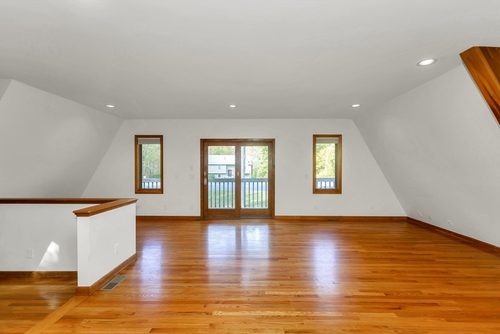 Welcome to your private sanctuary at 123 Mountainview Rd, where luxury and nature unite on a cul- de- sac. This is an extraordinary East Longmeadow retreat. Recent enhancements including a new retaining wall, driveway, and full backyard fencing (2020) create instant curb appeal. Inside, discover a versatile teenage suite or office (with independent HVAC) and a spectacular great room featuring two sets of sliding glass doors that open to serene grounds abutting 62 protected acres. Modern comforts include a tankless water heater (2021), two new AC compressors (2019), radiant heat in the family room, and fresh wood floors upstairs (2019). The open-concept interior showcases vaulted ceilings, a chef's kitchen with granite and stainless appliances, while upstairs reveals two generous bedrooms with custom closets, second-floor laundry, and a charming balcony. This move-in ready sanctuary blends modern updates with natural tranquility—your exclusive lifestyle opportunity awaits!