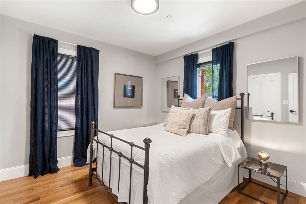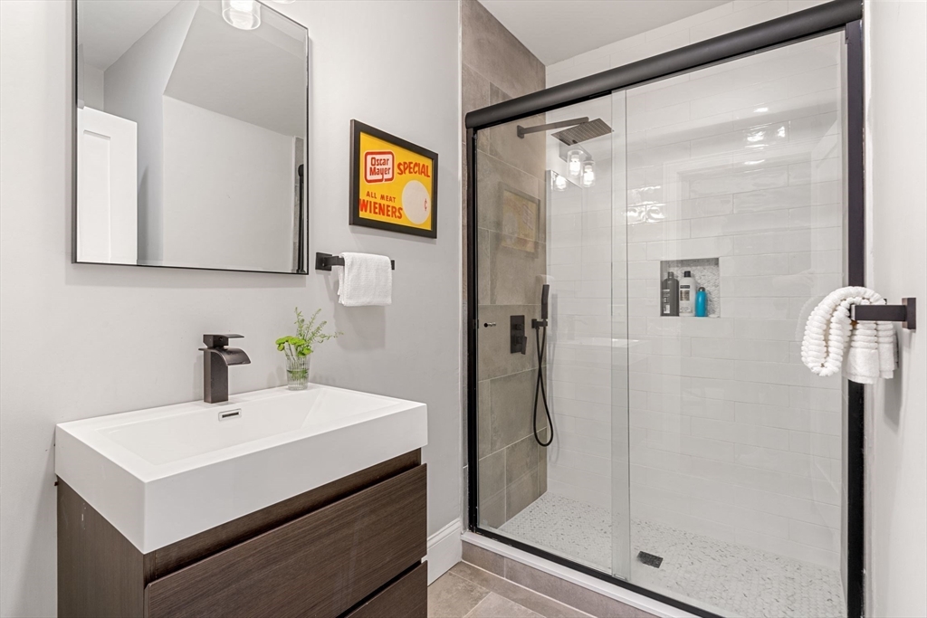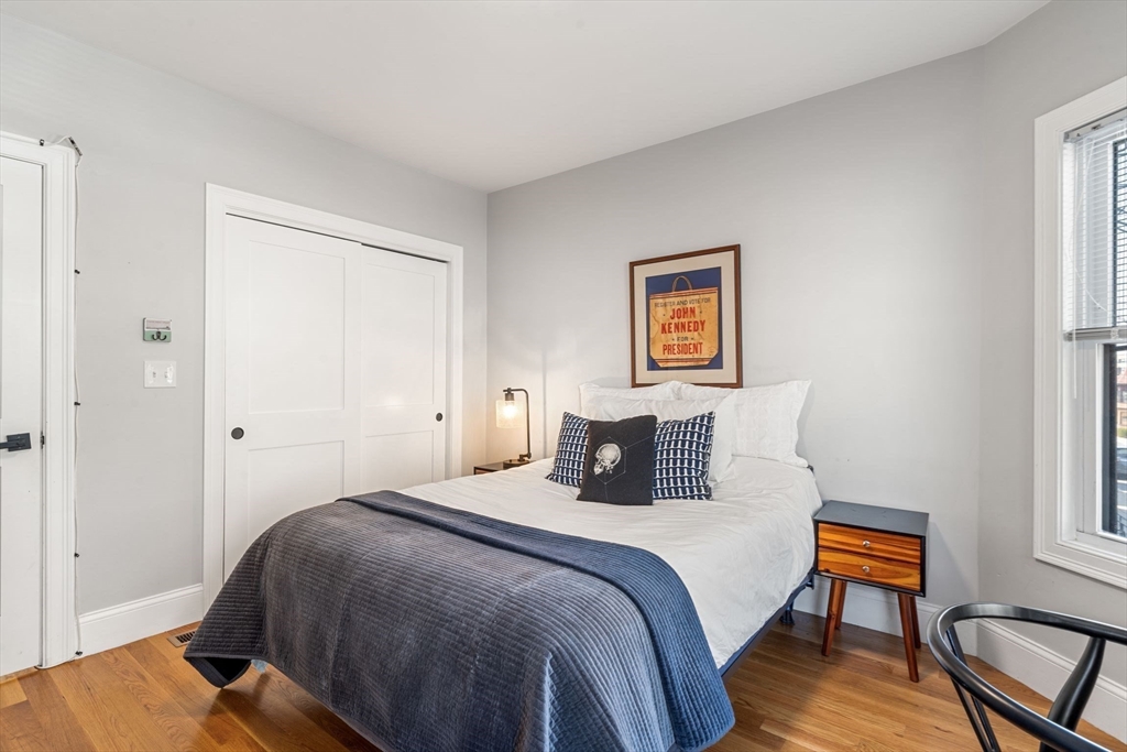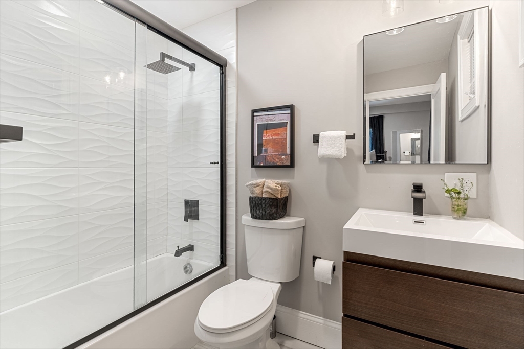Stylish Condo in East Boston's Eagle Hill Neighborhood. Thoughtfully renovated 2 bedroom and 2 full bathroom condo offers an open-concept layout, perfect for both everyday living and entertaining. The spacious main living room flows to the dining nook and into a sleek, modern kitchen. The kitchen is outfitted with stainless steel appliances, quartz countertops, and ample cabinets for storage. The primary bedroom features an en-suite bath with single vanity, oversized shower and large windows overlooking the yard. The second bedroom is positioned on the opposite end of the home providing privacy and flexibility- ideal for a guest room, home office, or personal retreat space. Additional features include a digital door system, private and common outdoor spaces, and a large private storage unit with washer and dryer. Don't miss the opportunity to make this modern gem your new home in one of Boston's most vibrant neighborhoods. Seller welcomes offers with requests for buyer concessions.