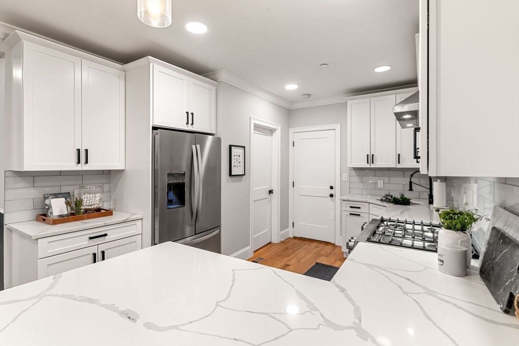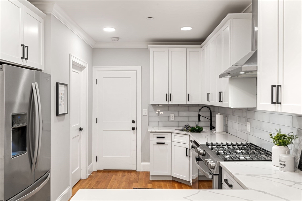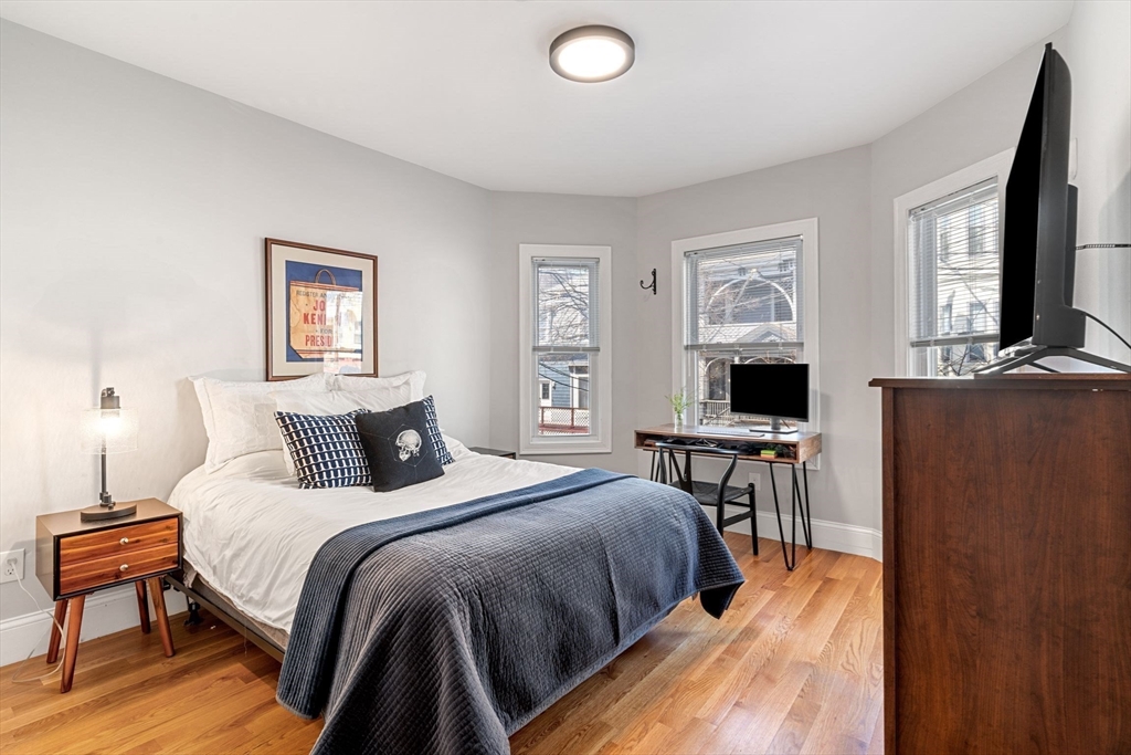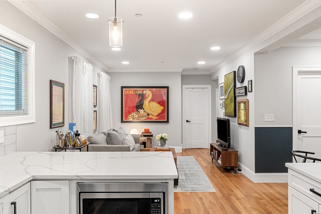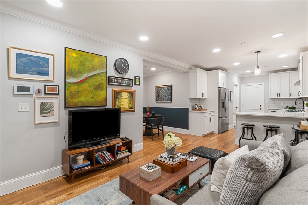 Stylish Condo in East Boston's Eagle Hill Neighborhood. Thoughtfully renovated 2 bedroom and 2 full bathroom condo offers an open-concept layout, perfect for both everyday living and entertaining. The spacious main living room flows to the dining nook and into a sleek, modern kitchen. The kitchen is outfitted with stainless steel appliances, quartz countertops, and ample cabinets for storage. The primary bedroom features an en-suite bath with single vanity, oversized shower and large windows overlooking the yard. The second bedroom is positioned on the opposite end of the home providing privacy and flexibility- ideal for a guest room, home office, or personal retreat space. Additional features include a digital door system, private and common outdoor spaces, and a large private storage unit with washer and dryer. Don't miss the opportunity to make this modern gem your new home in one of Boston's most vibrant neighborhoods. Seller welcomes offers with requests for buyer concessions.