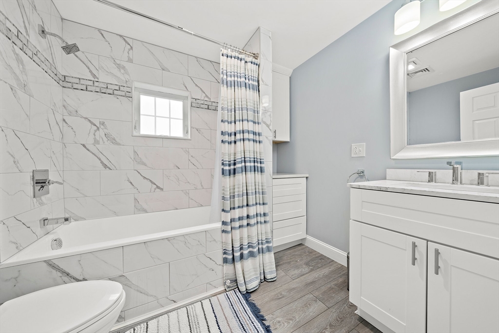 Rarely available opportunity to rent this stunning and spacious single family home tucked in one of Braintree's prime locations. 22 Hamilton street offers an openconcept first floor with a large and bright living room equipped with an electric fireplace, a dining area with custom built in's leading into an updated kitchen withplenty of counter space and a tastefully renovated half bathroom. Upstairs you will find four generous bedrooms, two full and updated bathrooms one being part ofthe primary suite. Additionally there is a bonus room finished in the walk up attic, perfect for an office, playroom or storage. Outside is a large deck which leadsdown to a patio and to the fully fenced in backyard. Gas heat, central air, hardwood flooring throughout and an attached oversized two car garage are some of thishomes amazing features. Plenty of storage throughout as well as in the unfinished basement. Pets are negotiable- inquire for details.