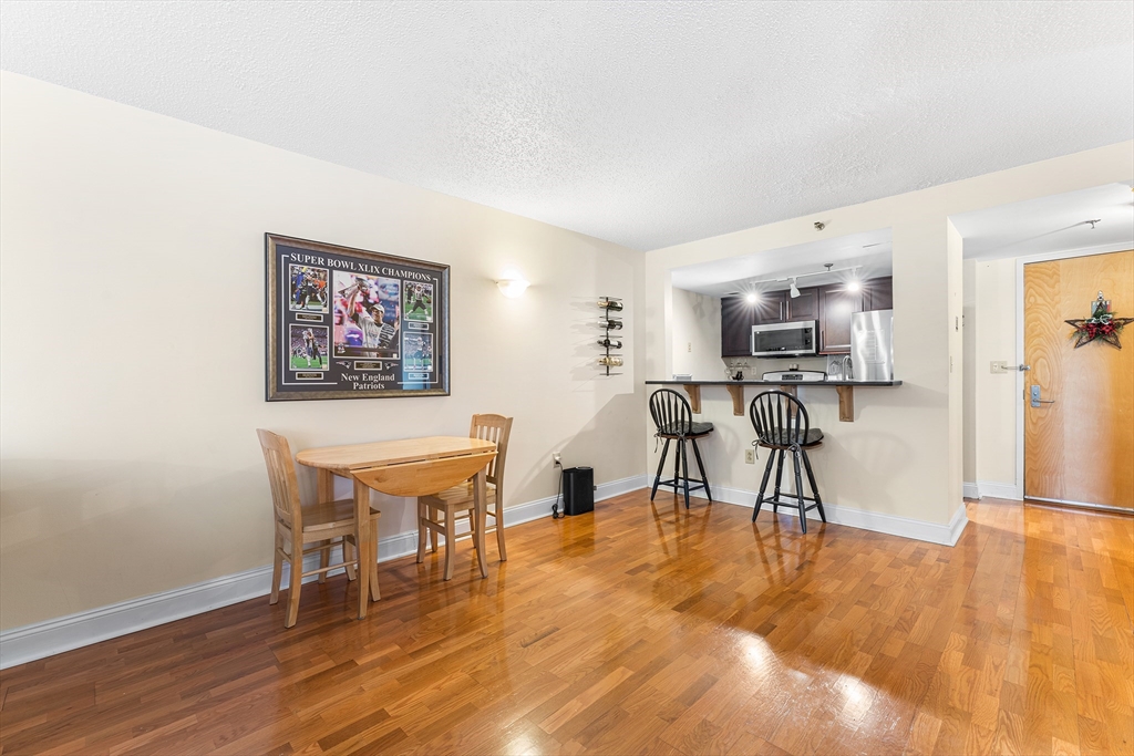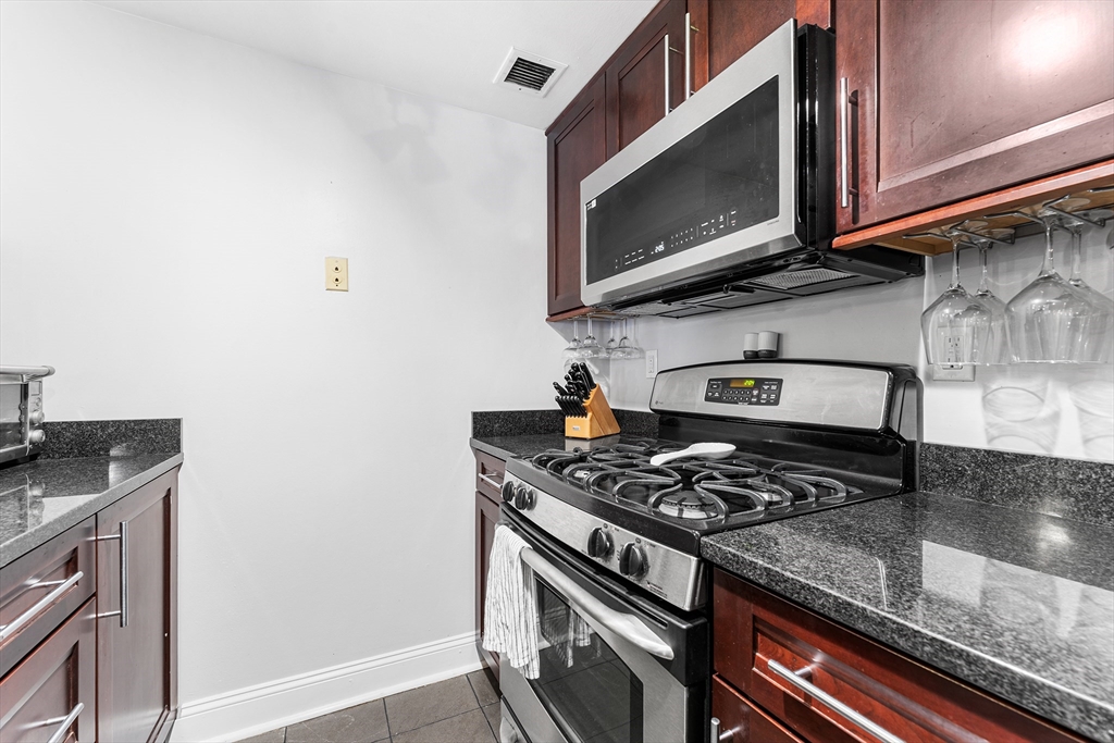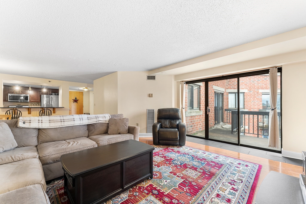Experience modern city living in this stunning luxury condo at 15 North Beacon Street! This spacious one-bedroom home offers over 700 sq. ft. of open-concept living, blending style and comfort throughout. The kitchen impresses with granite counters, cherry cabinets, stainless-steel appliances, a breakfast bar, and pass-through to the dining area—perfect for entertaining. This unit includes a beautifully updated bathroom, a bright bedroom with generous closet space, and an oversized living room that opens to a large private balcony showcasing city skyline views. Enjoy central air and deeded garage parking for year-round convenience. The professionally managed building offers 24/7 concierge, a rooftop pool and deck, fitness center, elevators, and on-floor laundry. Condo fee includes heat and hot water. Ideally located near BU, Harvard, public transportation, and Allston’s vibrant restaurants, shops, and entertainment.
