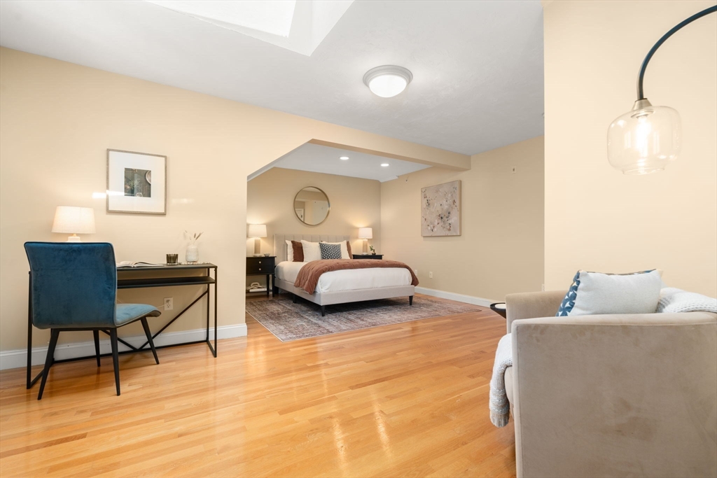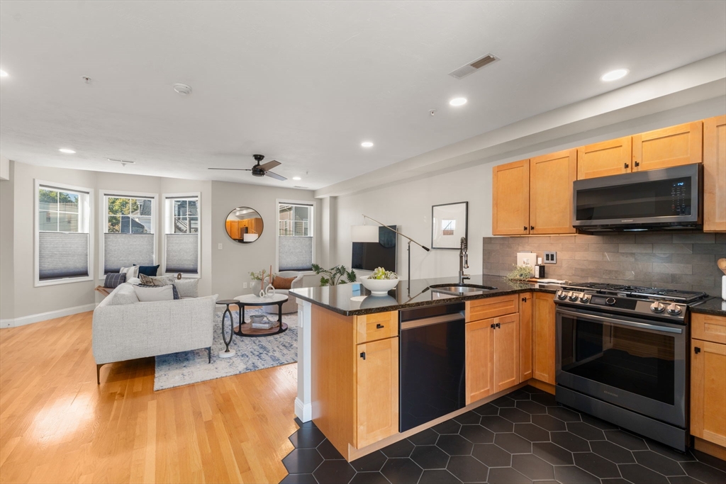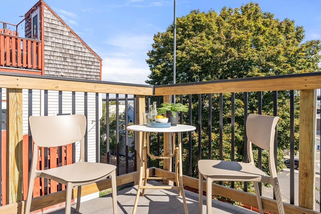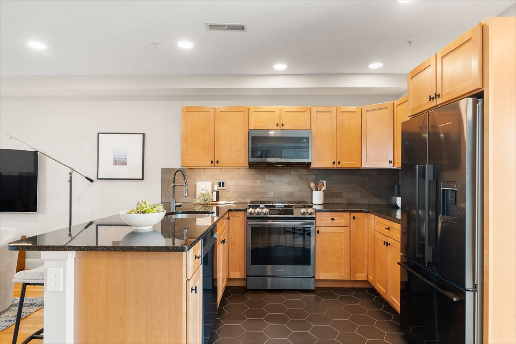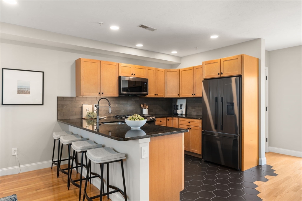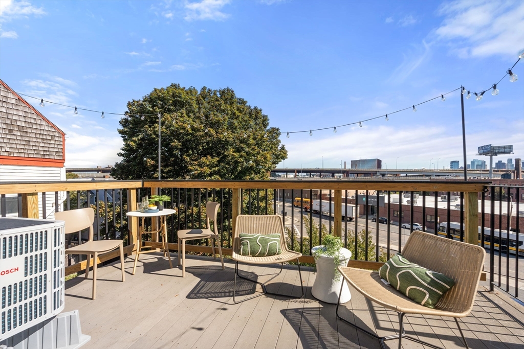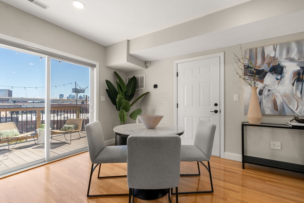 Welcome to this turn-key penthouse condo in Charlestown—where modern design meets elevated city living. This sophisticated 2 bed, 1.5 bath home offers 1,285 sq. ft. of refined style across two levels, featuring gleaming hardwood floors, designer tile, and premium finishes throughout. The renovated kitchen showcases granite countertops, a Fischer & Paykel refrigerator, stainless steel appliances, cabinets with newer integrated lighting, newer backsplash, and garbage disposal. Enjoy newer bathrooms, recessed lighting, and a new HVAC system. The open-concept living and dining area with breakfast bar flows beautifully for entertaining, while the oversized primary bedroom offers generous closets and a skylight. Step onto your private deck and take in sweeping skyline views—perfect for morning coffee or summer evenings. Ideally located near Hood Park, Assembly Square, Encore, Union Sq, and Charlestown’s best restaurants, this stunning penthouse defines modern luxury and timeless comfort.