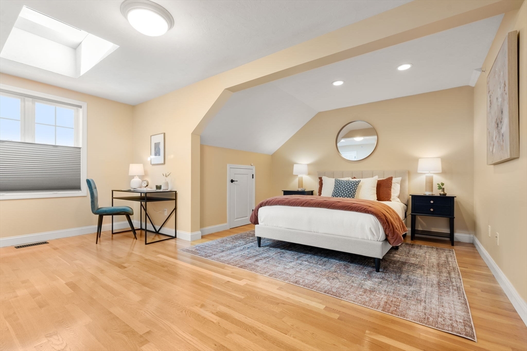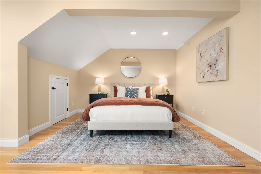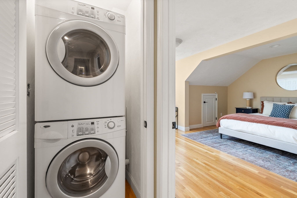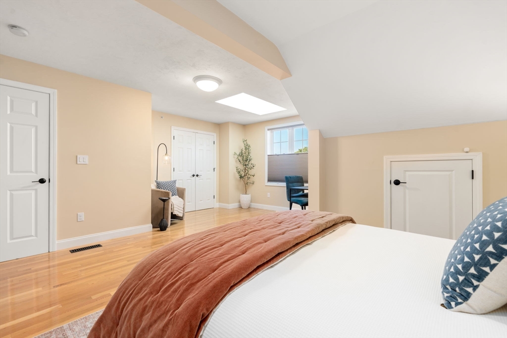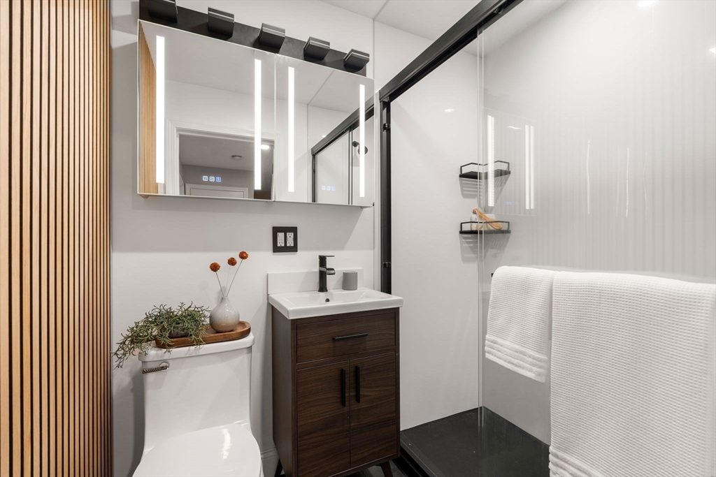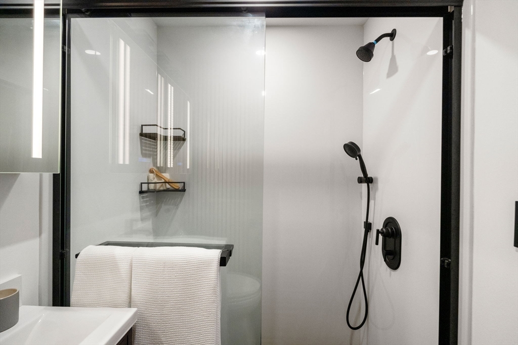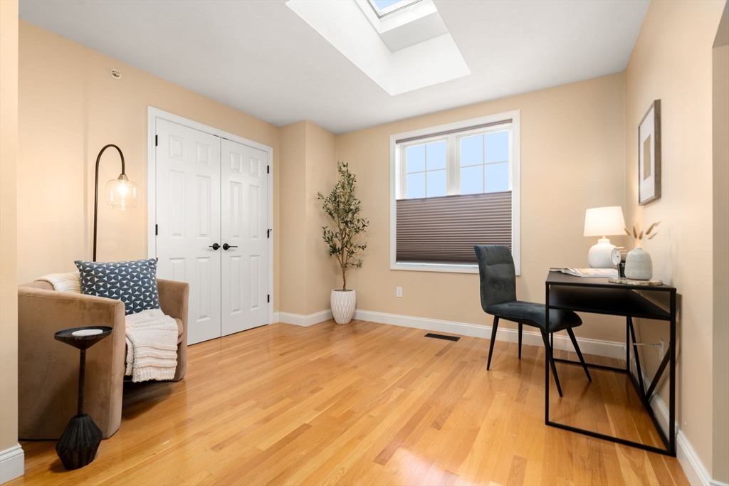 Welcome to this turn-key penthouse condo in Charlestown—where modern design meets elevated city living. This sophisticated 2 bed, 1.5 bath home offers 1,285 sq. ft. of refined style across two levels, featuring gleaming hardwood floors, designer tile, and premium finishes throughout. The renovated kitchen showcases granite countertops, a Fischer & Paykel refrigerator, stainless steel appliances, cabinets with newer integrated lighting, newer backsplash, and garbage disposal. Enjoy newer bathrooms, recessed lighting, and a new HVAC system. The open-concept living and dining area with breakfast bar flows beautifully for entertaining, while the oversized primary bedroom offers generous closets and a skylight. Step onto your private deck and take in sweeping skyline views—perfect for morning coffee or summer evenings. Ideally located near Hood Park, Assembly Square, Encore, Union Sq, and Charlestown’s best restaurants, this stunning penthouse defines modern luxury and timeless comfort.