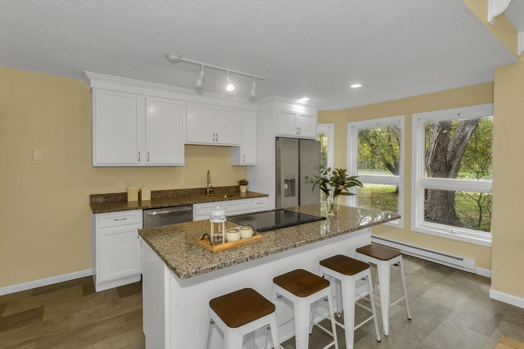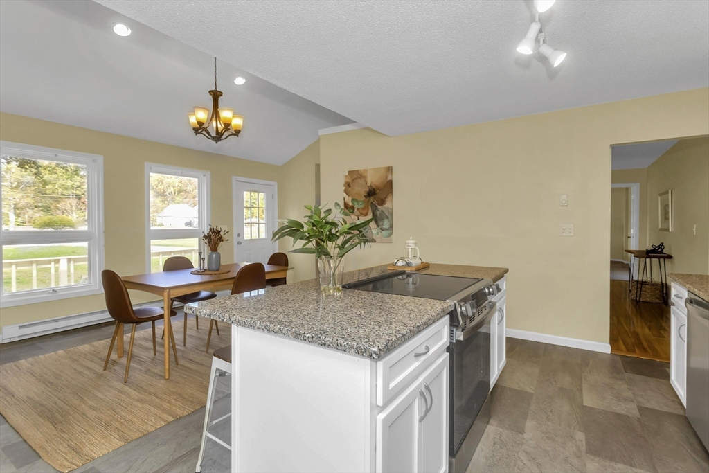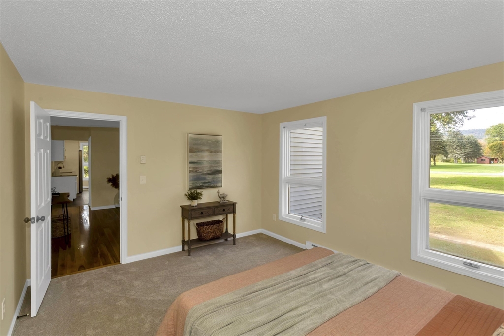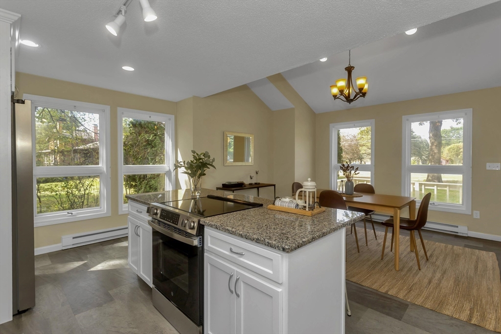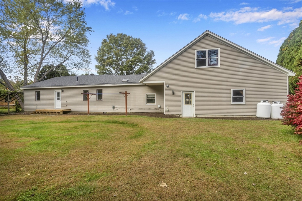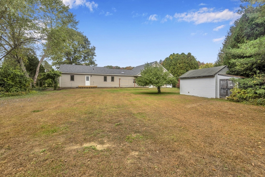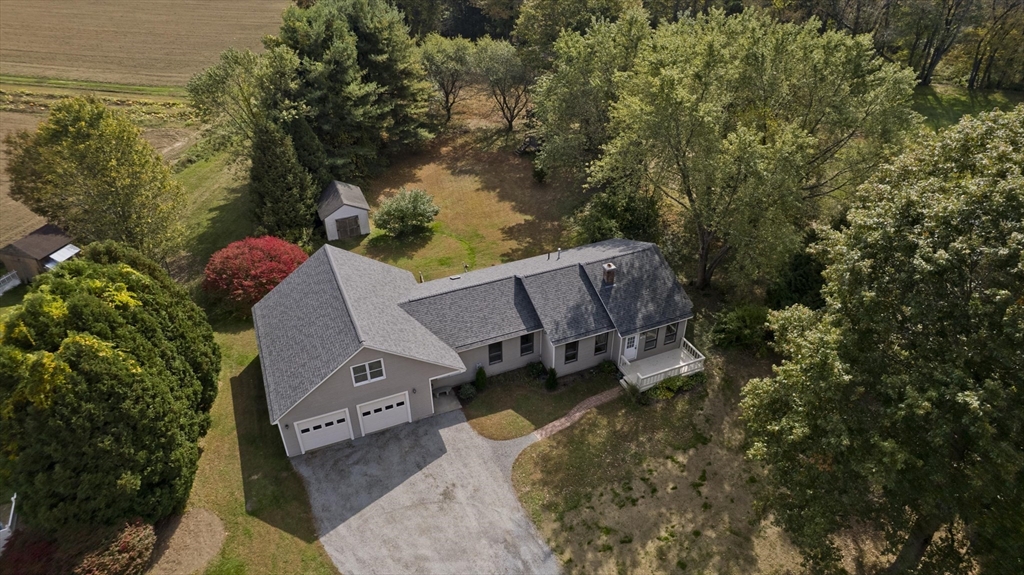 Sitting far back from the road on over an acre of land is this renovated 3 BR, 2 bath ranch. Perfect one-level living! Featuring a 3 year old roof, NEW kitchen, NEW bath fixtures, NEW windows (to be installed mid Nov), NEW interior and exterior paint, NEW flooring in most rooms, NEW water heater and a NEW 4 BR septic system! Also featuring an oversized 2 car garage with finished office/studio space above and heated bonus room attached. The kitchen has all new appliances, new granite counters, new flooring, bay window and vaulted ceiling in the dining area. The living room has refinished wood floors and a fireplace. New carpeting in the Primary BR with a walk-in closet and full en-suite bath with skylight. Convenient pull-down attic stairs lead to additional storage. Outside there's new landscaping, new rear entry deck, lawn shed with electricity and flowering trees and bushes. Come see this renovated gem in Whately!
