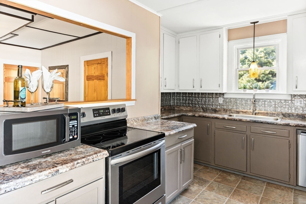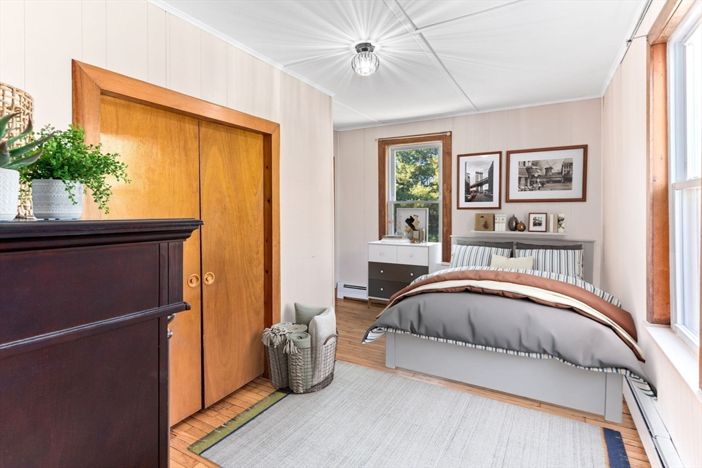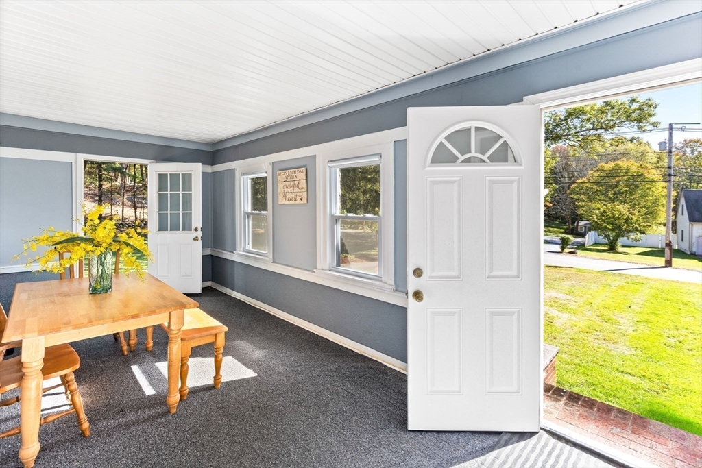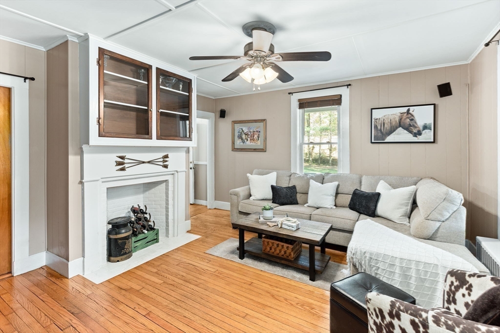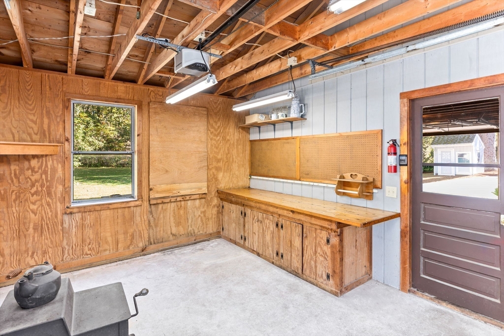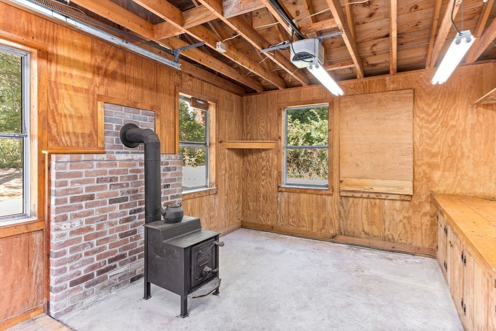 Welcome Home! Discover this charming 1920 farmhouse nestled on 4 acres of private, wooded land perfect for those who love peace, nature, and outdoor entertaining. Step inside to an inviting enclosed, heated porch, leading to a cozy front room ideal for guests or a home office. The kitchen and dining area are separated by a breakfast bar, creating a warm and functional layout. All bedrooms are located on the main floor, with a spacious 2-bedroom, 1-bath In-Law Suite upstairs, great for extended family or guests. The full basement offers ample storage plus a heated finished room perfect for a gym, studio, or hobby space. For the craftsman or hobbyist, enjoy a 3-car garage/workshop with wood stove, an additional recreation room, and extra storage areas throughout. Located in desirable North Attleboro, this home offers country charm with convenient access to shopping, restaurants, and major highways.