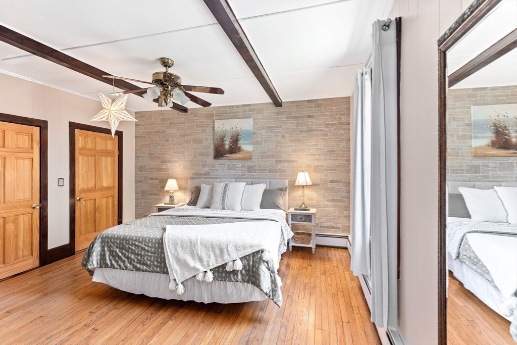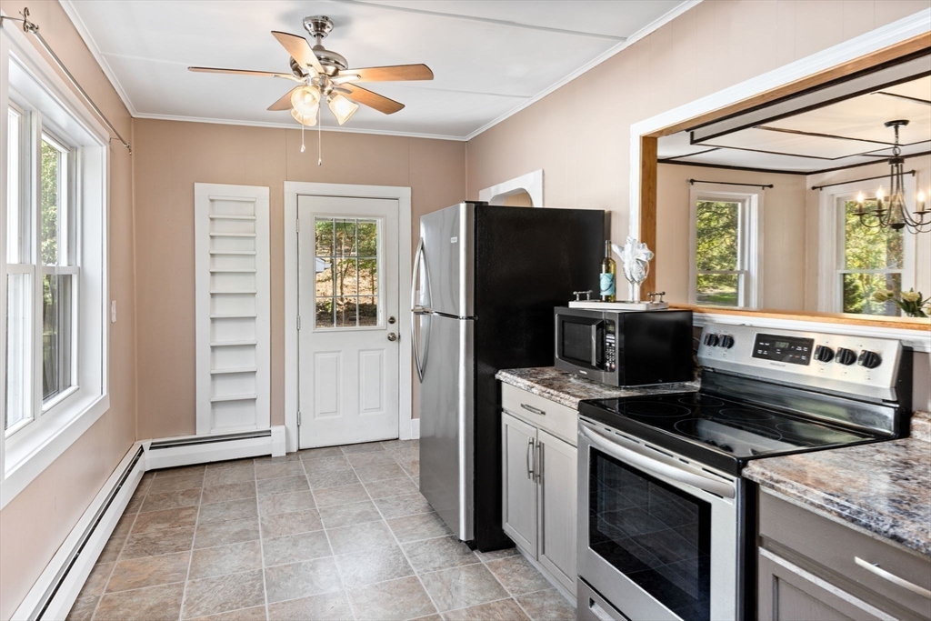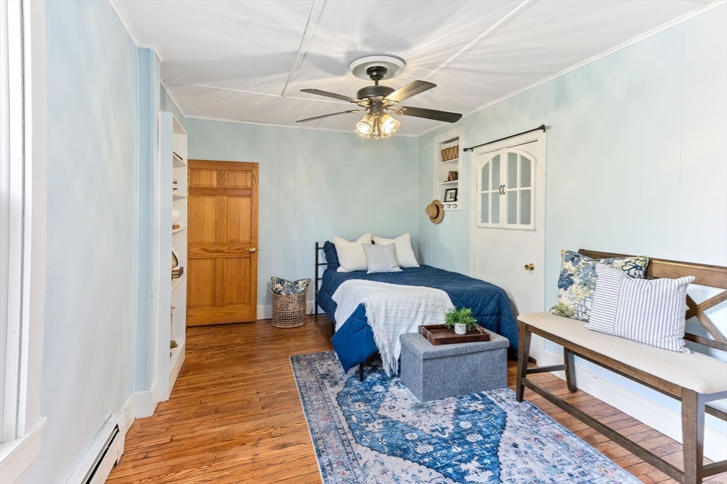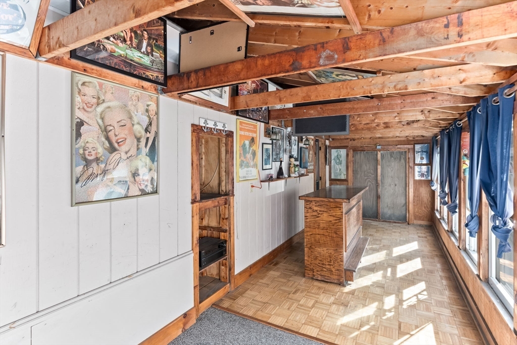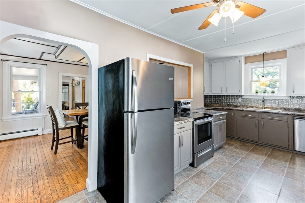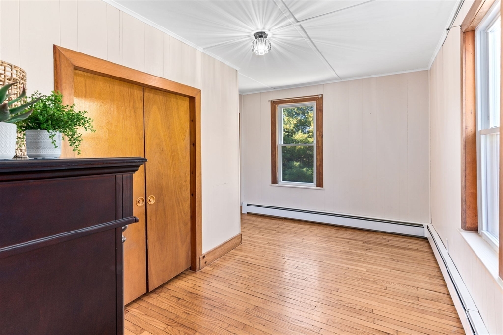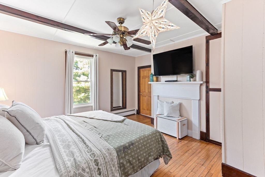 Welcome Home! Discover this charming 1920 farmhouse nestled on 4 acres of private, wooded land perfect for those who love peace, nature, and outdoor entertaining. Step inside to an inviting enclosed, heated porch, leading to a cozy front room ideal for guests or a home office. The kitchen and dining area are separated by a breakfast bar, creating a warm and functional layout. All bedrooms are located on the main floor, with a spacious 2-bedroom, 1-bath In-Law Suite upstairs, great for extended family or guests. The full basement offers ample storage plus a heated finished room perfect for a gym, studio, or hobby space. For the craftsman or hobbyist, enjoy a 3-car garage/workshop with wood stove, an additional recreation room, and extra storage areas throughout. Located in desirable North Attleboro, this home offers country charm with convenient access to shopping, restaurants, and major highways.
