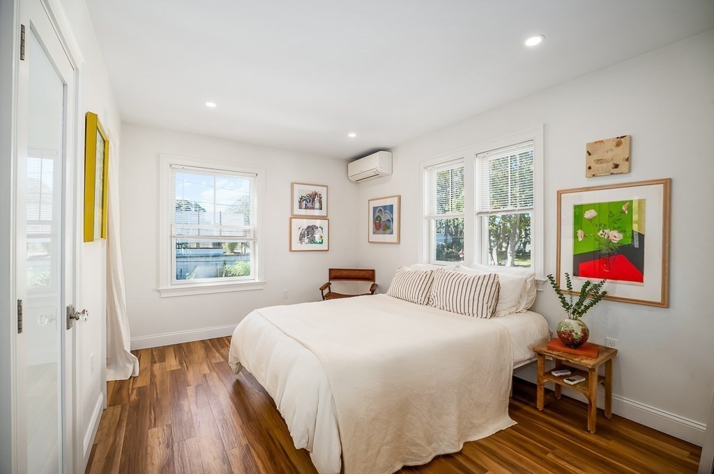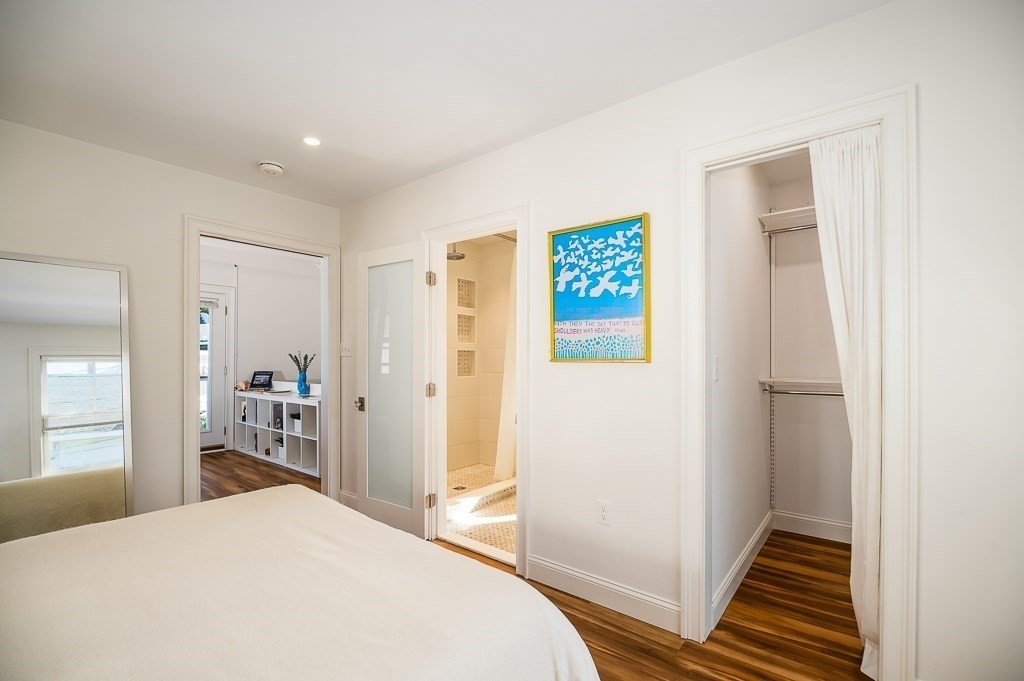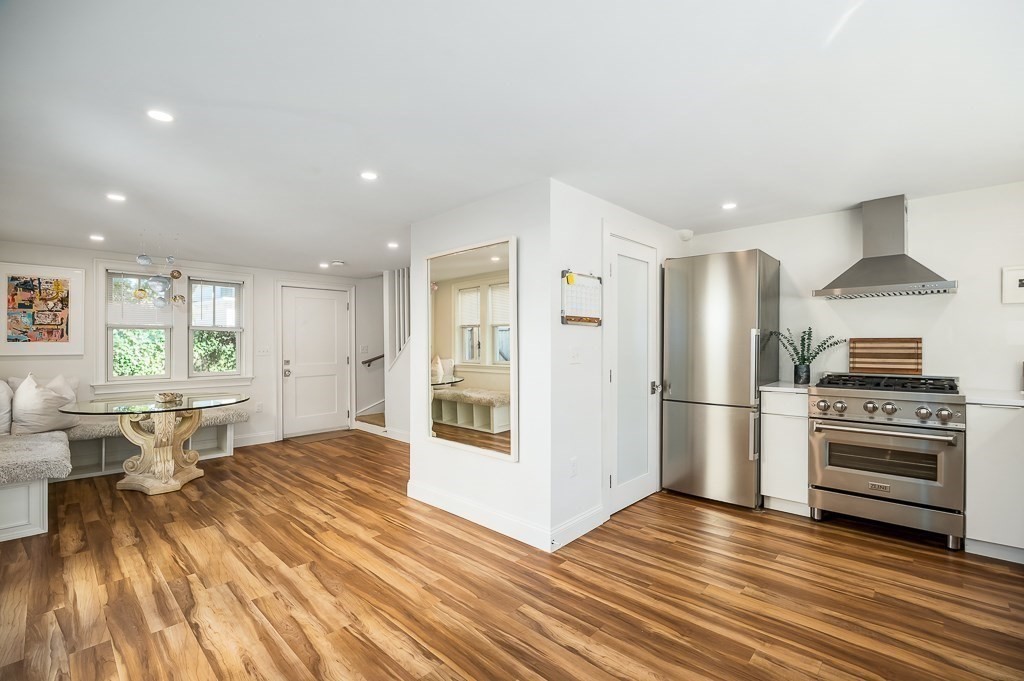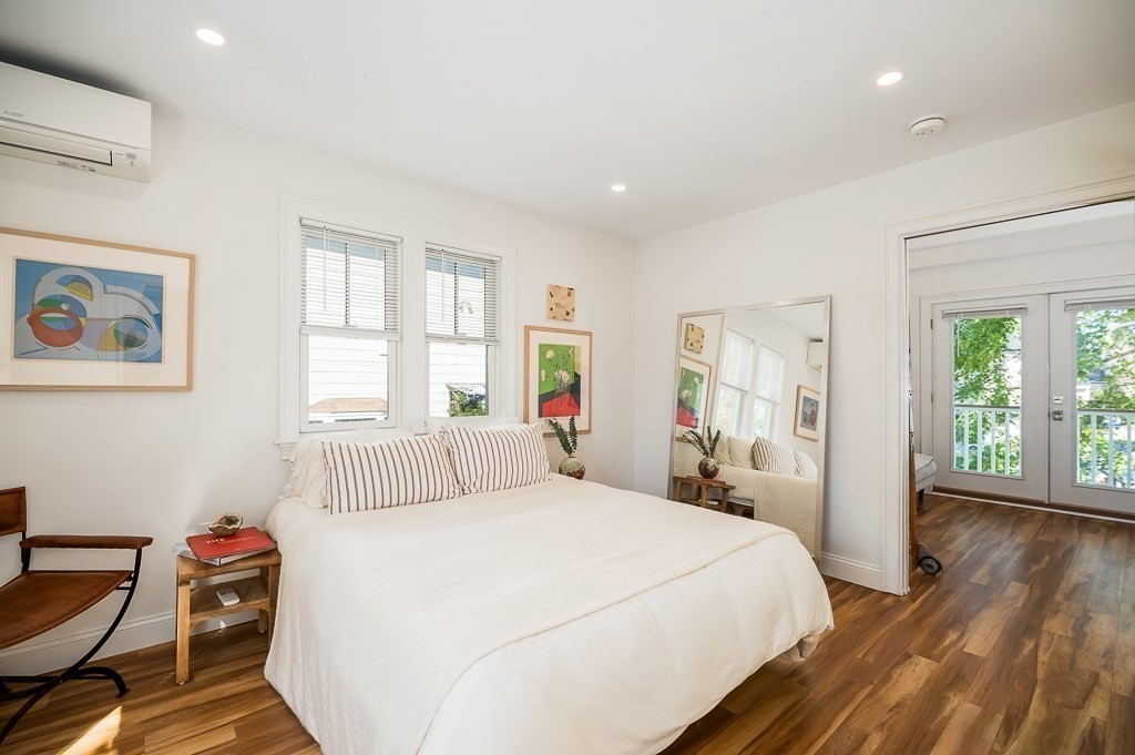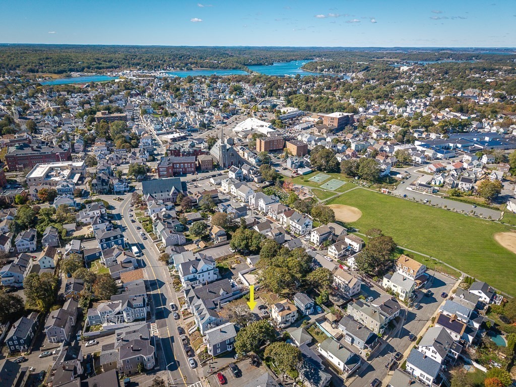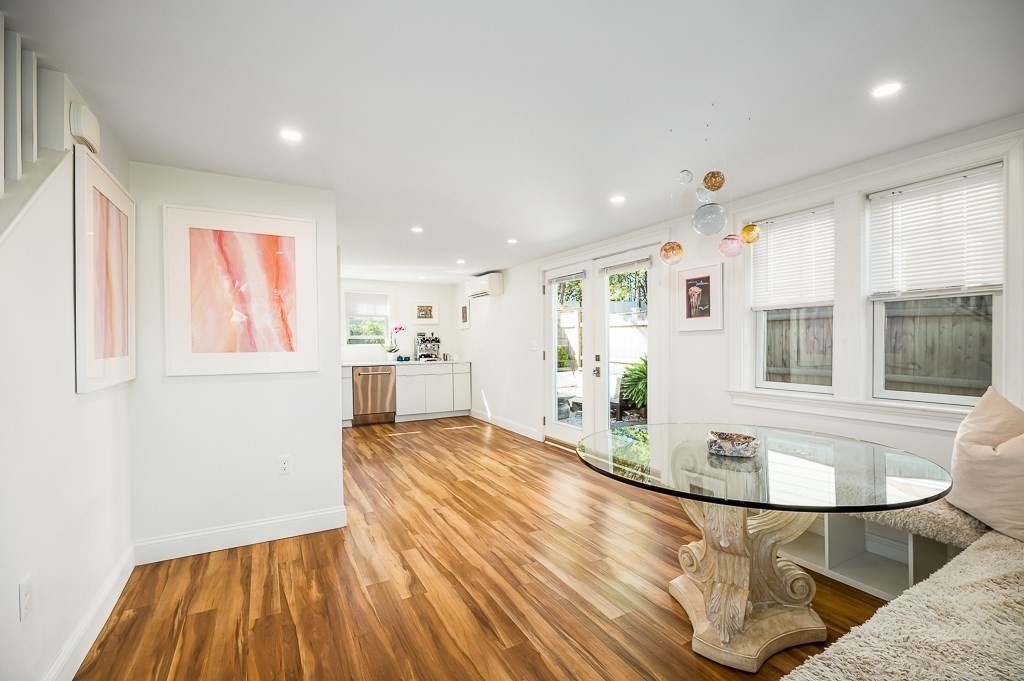Centrally located, recently updated Colonial that is sure to please many potential buyers. The attention to detail was well thought out and crafted in this downtown home. On the first level you enter into an open Living area which has glass French doors leading to a fenced in patio with stone pavers and crushed white marble. The Kitchen has Silestone countertops, new gas Zline stove/oven, range hood, dishwasher and Summit refrigerator/freezer with ice maker. Off the Kitchen you will also find a half bath with an energy efficient Rinnai tankless gas water heater and a stackable washer/dryer. The second floor has a sitting room with a loft that could be used multiple ways. You enter the bedroom through pocket doors which has a walk in closet with Elfa custom design storage. The bathroom has a radiant heat tiled floor and a walk in shower with dual shower heads. Silestone countertop with a LED mirror.