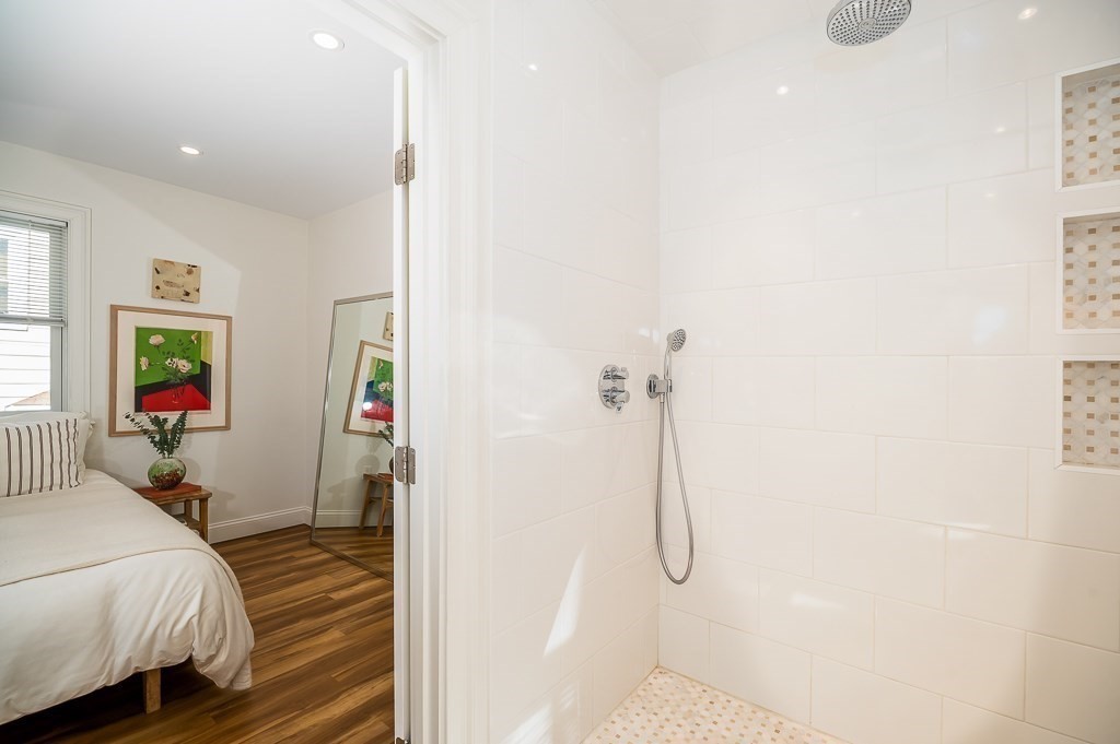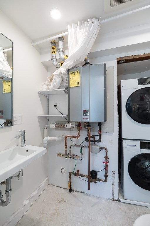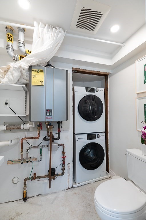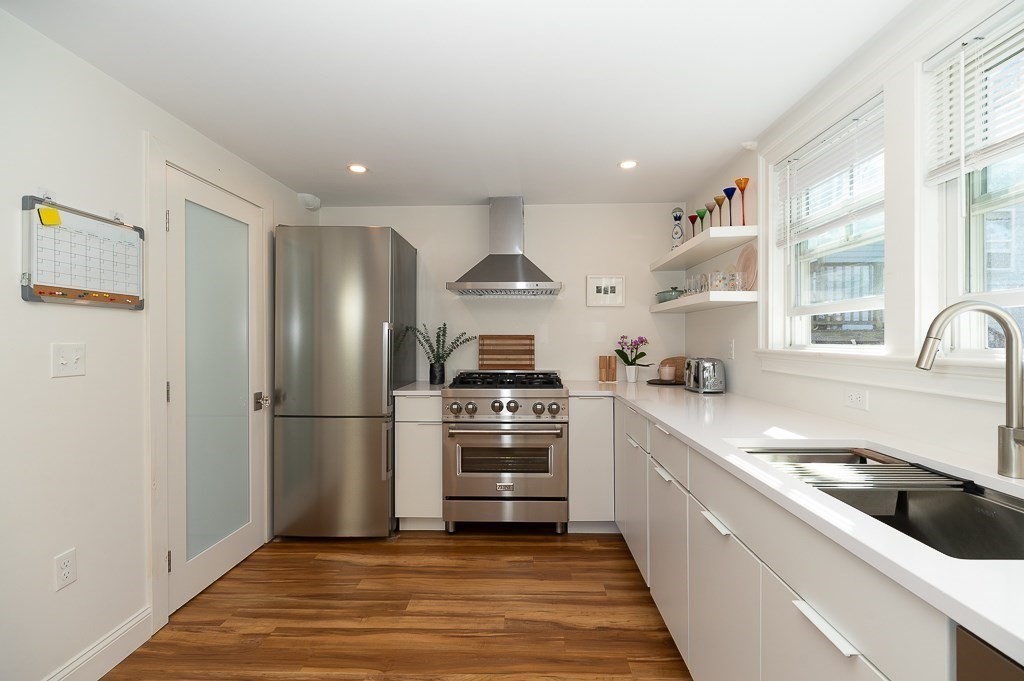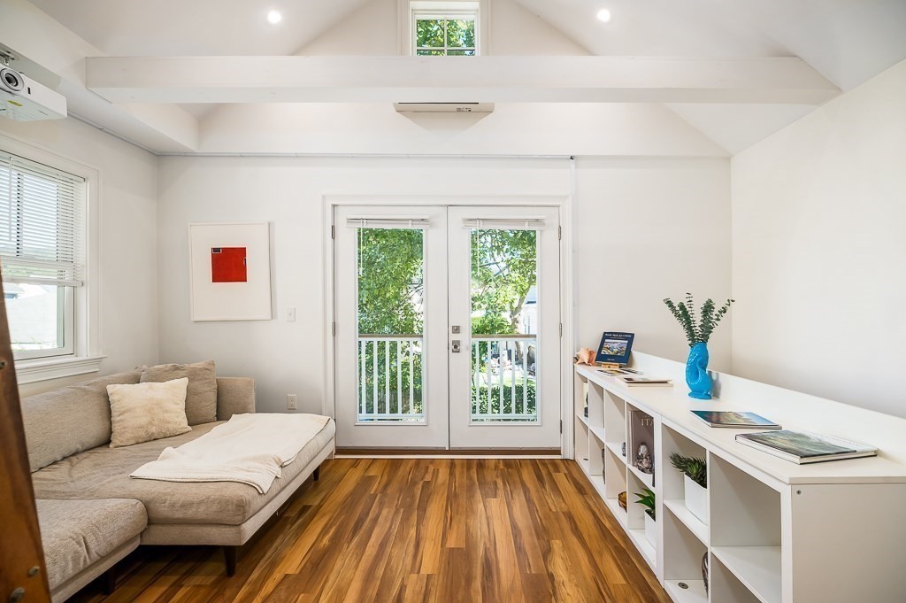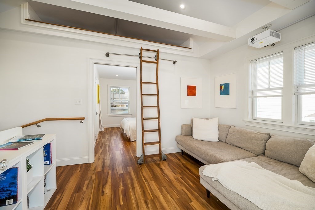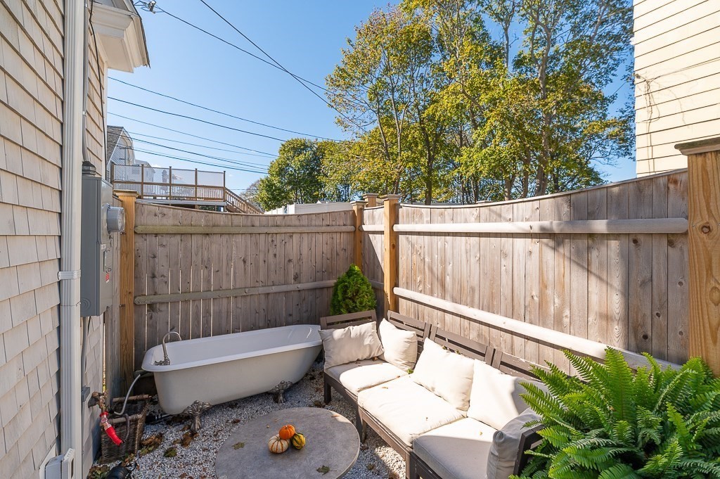 Centrally located, recently updated Colonial that is sure to please many potential buyers. The attention to detail was well thought out and crafted in this downtown home. On the first level you enter into an open Living area which has glass French doors leading to a fenced in patio with stone pavers and crushed white marble. The Kitchen has Silestone countertops, new gas Zline stove/oven, range hood, dishwasher and Summit refrigerator/freezer with ice maker. Off the Kitchen you will also find a half bath with an energy efficient Rinnai tankless gas water heater and a stackable washer/dryer. The second floor has a sitting room with a loft that could be used multiple ways. You enter the bedroom through pocket doors which has a walk in closet with Elfa custom design storage. The bathroom has a radiant heat tiled floor and a walk in shower with dual shower heads. Silestone countertop with a LED mirror.