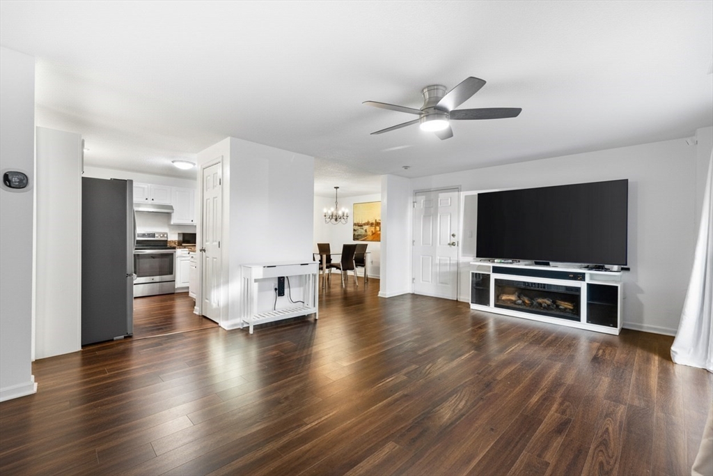 This beautifully updated ground-level 2-bedroom condo offers comfort, convenience, and community amenities all in one package. Venture inside to find a bright kitchen with stainless steel appliances, generous cabinet storage, and a dedicated dining area. The expansive living room opens to a private patio, perfect for relaxing or entertaining. Both bedrooms are spacious with ample closet space, while the modern full bath features a tiled shower and the added bonus of in-unit laundry & equipped with central A/C. Enjoy the benefits of a well-maintained community, including professionally landscaped grounds, an in-ground pool with clubhouse, and private access to walking trails. With easy access to highways, shopping, and restaurants, this condo truly delivers a lifestyle of comfort and convenience. Move right in and start enjoying everything The Courtyards has to offer!