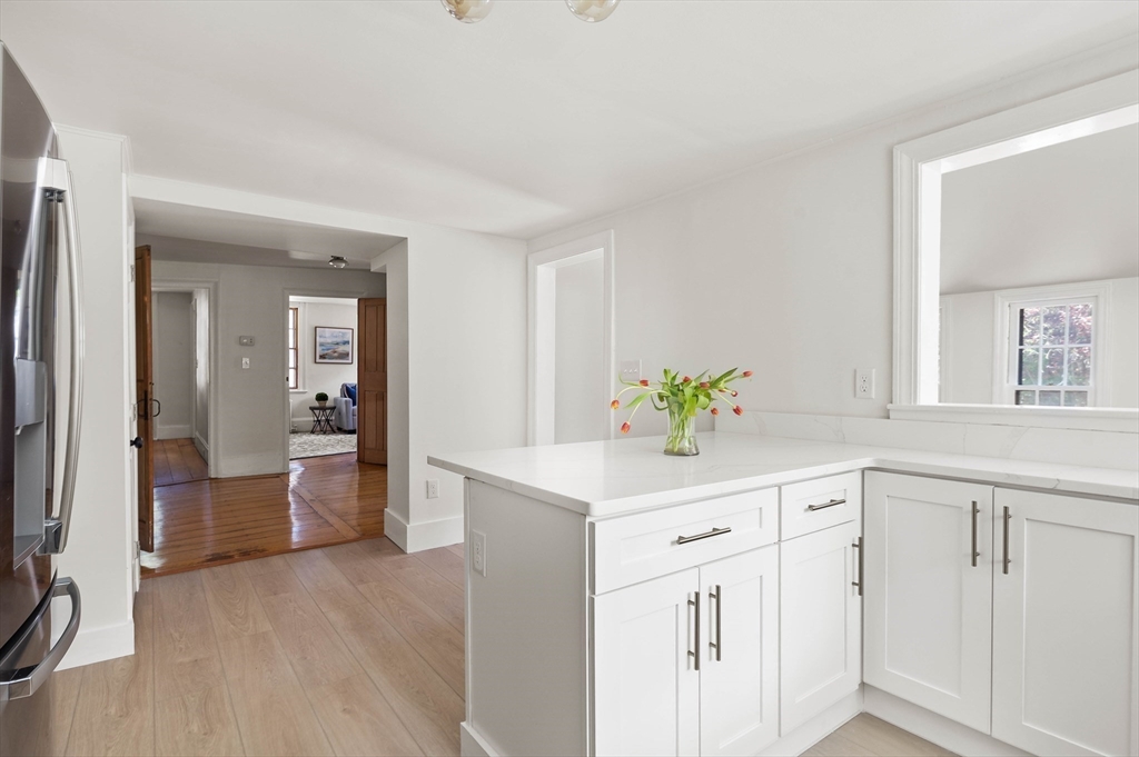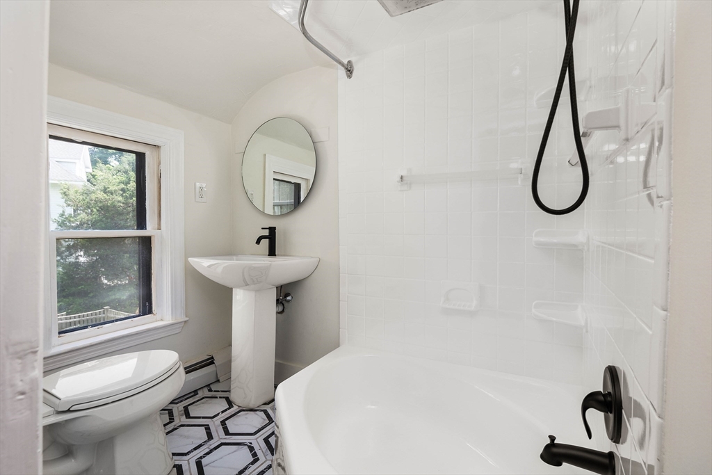 Available December 1,2025 !Fabulous multi family rental location. NEW kitchen with stainless appliances, granite countertops and island. NEW 1/2 bath, and new full en suite bath in master bedroom .Sunroom with new flooring and mudroom area. Large living room . Another additional room can be used for office/play space.3 bedrooms upstairs . Two with gorgeous vaulted ceilings filled with sunlight. Entire unit has been freshly painted. New deck to enjoy in your private landscaped backyard. Partial part of yard is fenced in. Home has has had new painting both interior and exterior. Walk up attic on with great storage. Basement for storage. Pictures are virtually staged. Tenant to pay first and last months rent and half of rent for brokers compensation. Walk downtown, walk to commuter rail and 5 minute drive to ferry to Boston.