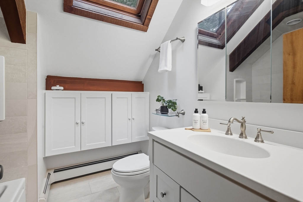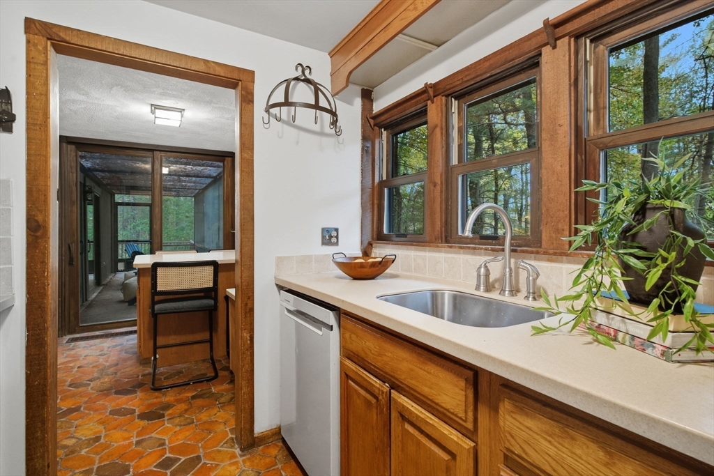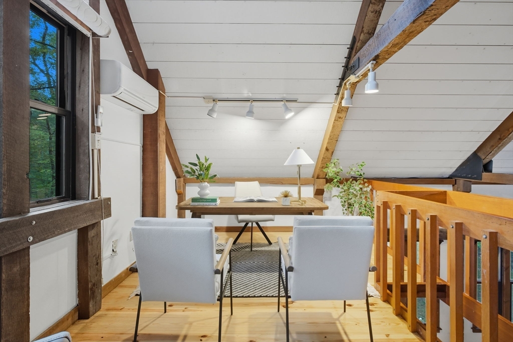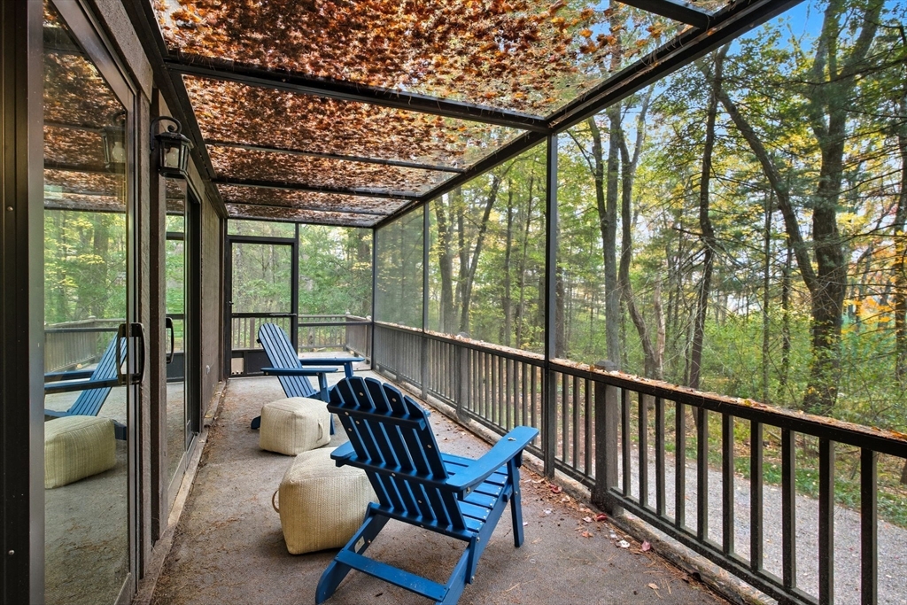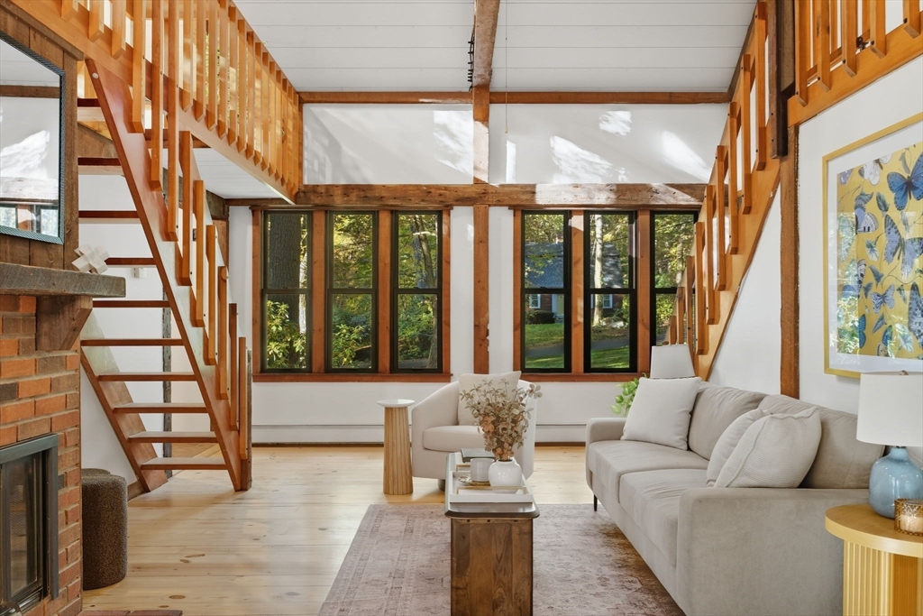Truly a spectacular home in an incredible neighborhood at the end of a quiet dead-end street, surrounded by conservation land. This custom Yankee Barn Home showcases the timeless quality and craftsmanship the brand is known for; post and beam construction with the finest materials for durability, weather protection, and energy efficiency. Inside, soaring cathedral ceilings highlight the stunning living room with fireplace and dramatic loft above. The dining room opens to a screened porch and an expansive deck running the length of the home. A bright family room with a wall of windows overlooks the serene setting. The first-floor primary suite offers convenience and privacy, while there are four additional bedrooms upstairs, each feature charming nooks/lofts. Freshly painted throughout with refinished floors, newer heating system, and efficient mini splits providing air conditioning to every room, plus a spacious 2+ car garage complete this special property!