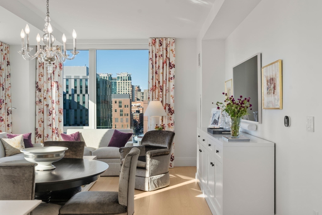 Experience luxury living at The Quinn, a premier full-service condominium building at Ink Block, South End. This stunning corner 2 bed, 2 bath residence offers a sophisticated blend of modern design & comfort w/ breathtaking Back Bay/Downtown Boston views. The open-concept living area features floor-to-ceiling windows that flood the space with natural light, white oak flooring, and a custom kitchen w/ high-end Wolf & Sub-Zero appliances. The primary suite boasts a spa-inspired bath w/ marble finishes and 2 custom fitted walk-in closets. Other upgrades include, custom automated window treatments, wood shutters, & custom closets, Residents enjoy unparalleled amenities, including a 24-hour concierge, indoor lap pool, fitness center, sauna, pet spa, and rooftop terrace with sweeping city views. 1 Deeded garage parking space & large storage locker included. Ideally situated near top restaurants, shops, & galleries, The Quinn offers the perfect combination of urban energy and refined living.