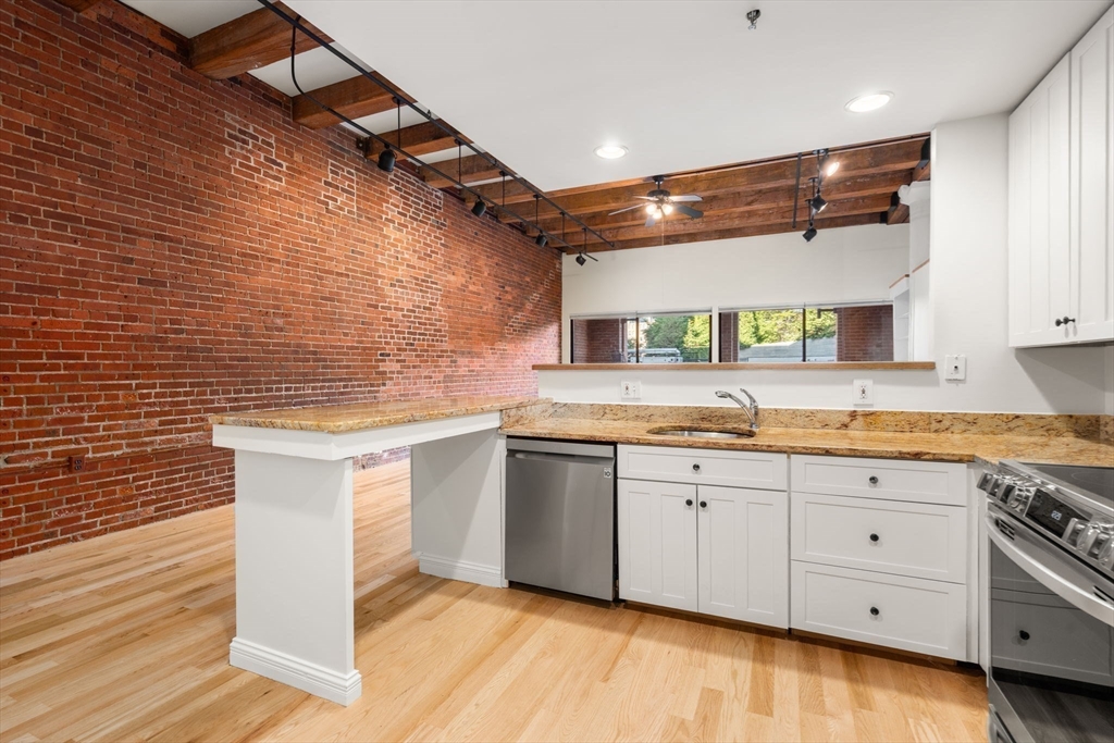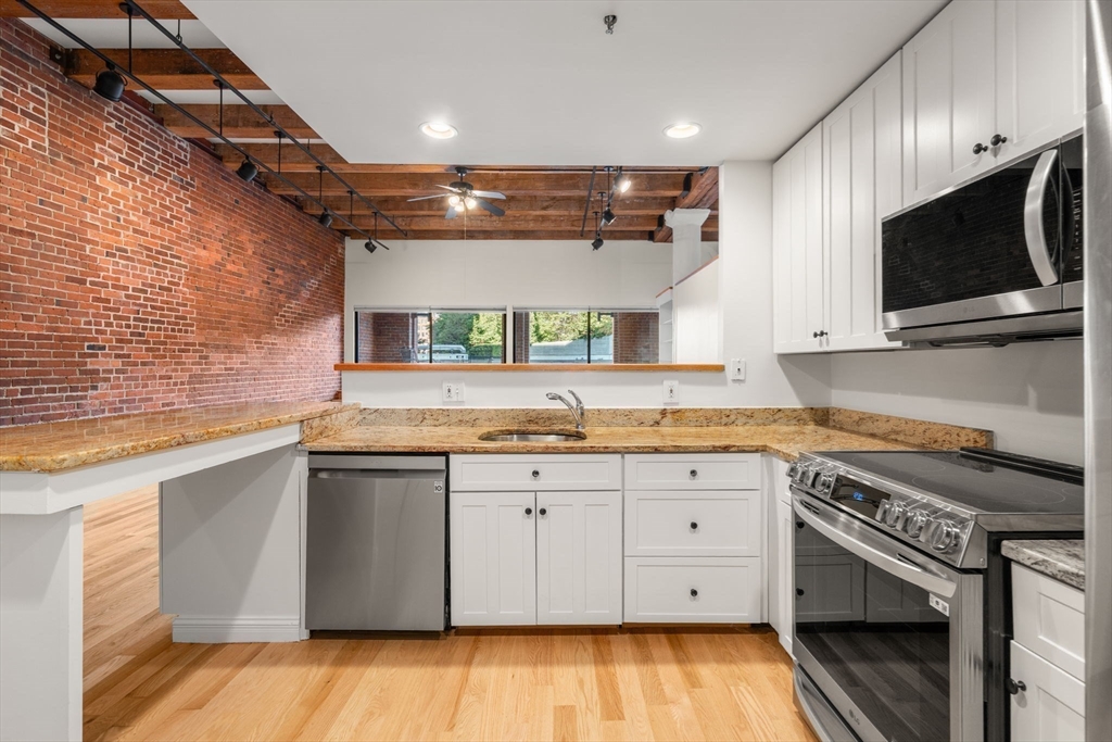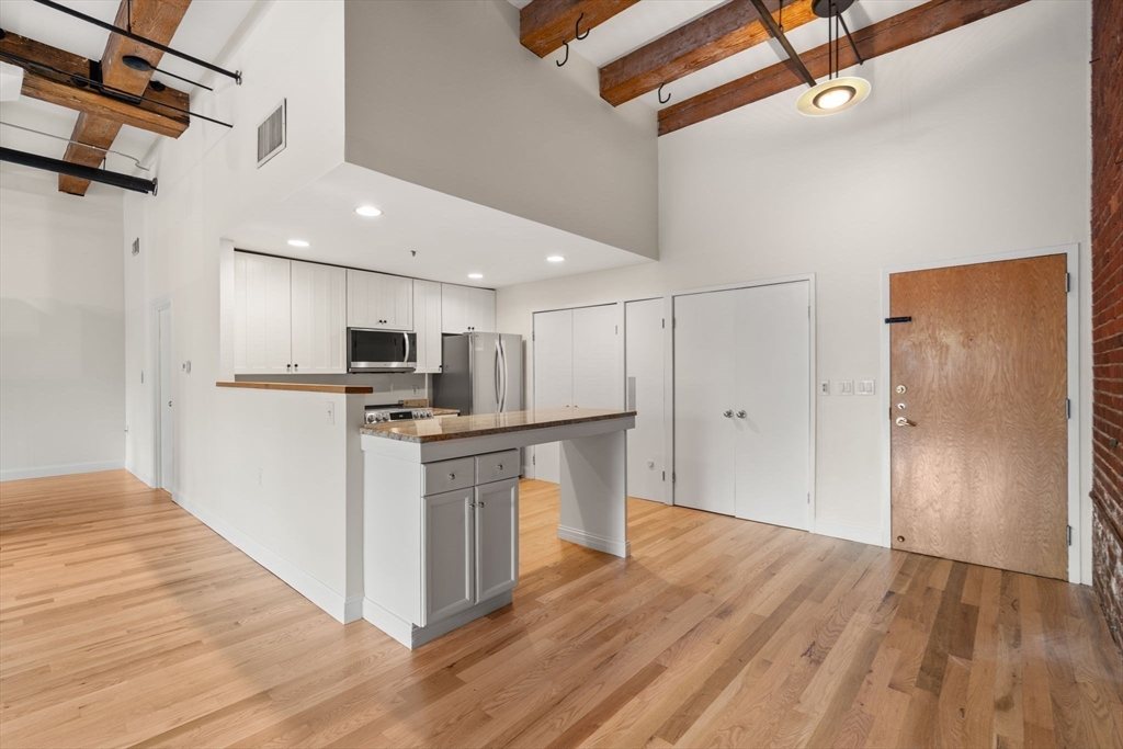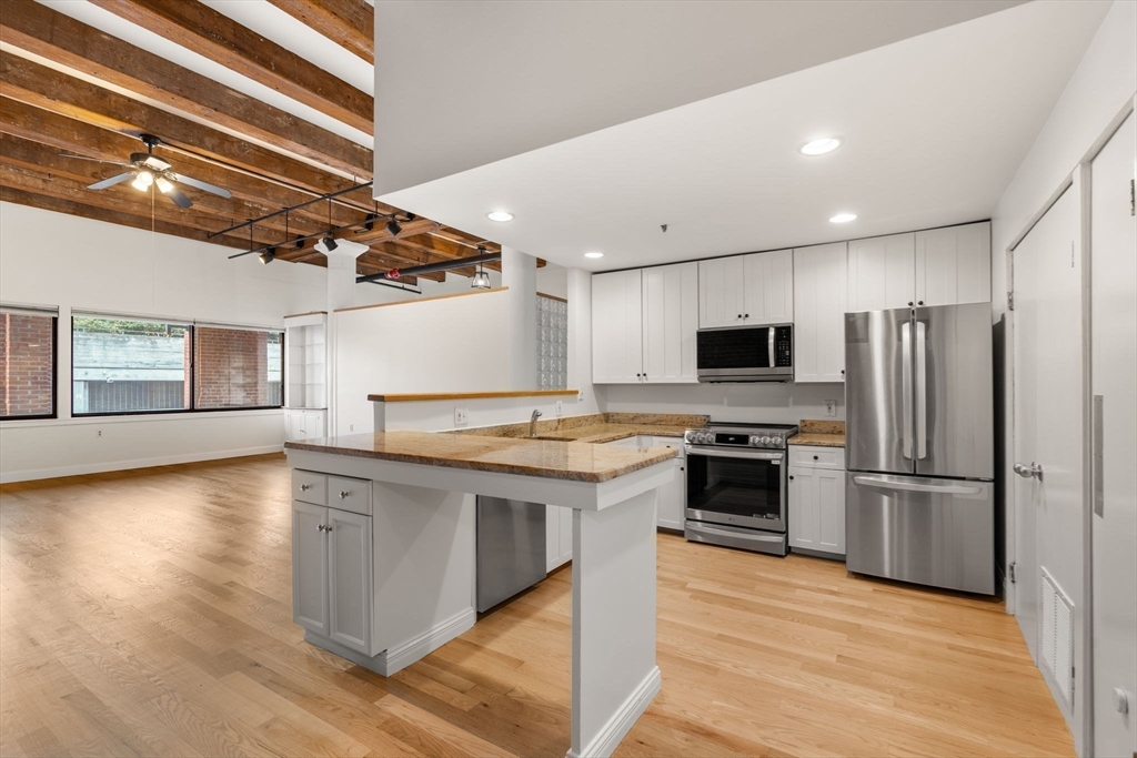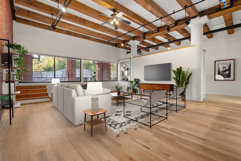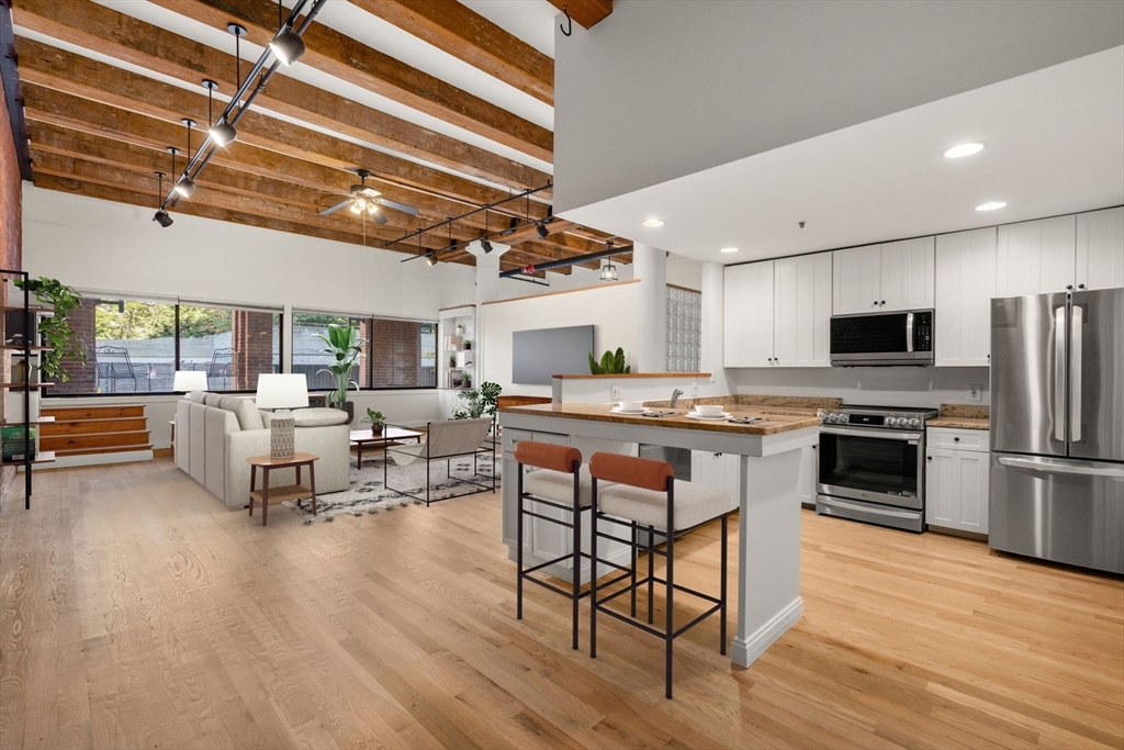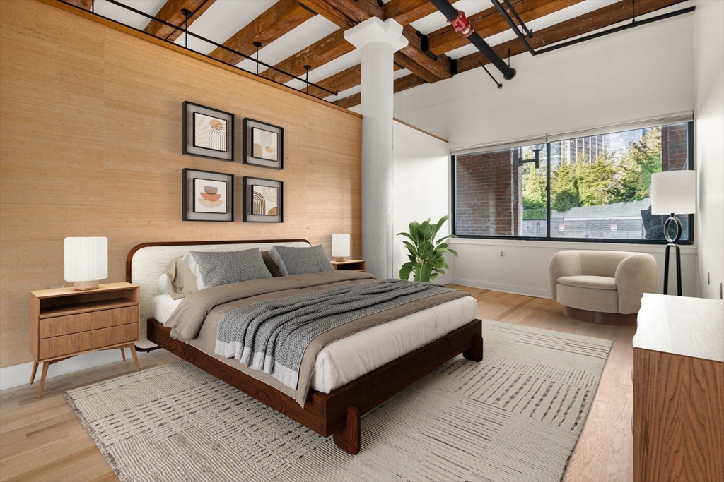 Where timeless architecture meets contemporary luxury-Welcome to Dockside Place. This reimagined one-bedroom loft captures the essence of Boston’s Seaport with its dramatic brick-and-beam construction,12-foot ceilings, and expansive open floor plan. Designed for modern living, the 2025 renovation features a new upscale kitchen with granite counters, stainless steel appliances, and breakfast bar that anchors the space for easy dining and entertaining. A serene bedroom suite accesses a spa-like bath with glass-enclosed shower, double vanity and in-unit laundry closet. Curated design details and hardwood floors add comfort and style throughout, complimented by abundant natural light from the unique full length private terrace. Steps from Seaport’s acclaimed restaurants, shopping, and waterfront attractions, Dockside Place offers a truly elevated urban lifestyle. BROKER OPEN Thursday 10/16 12:30-2:00pm; clients welcomed. Open Houses Saturday 10/18 12:30-2:00pm & Sunday 10/19 10:30-12:00pm