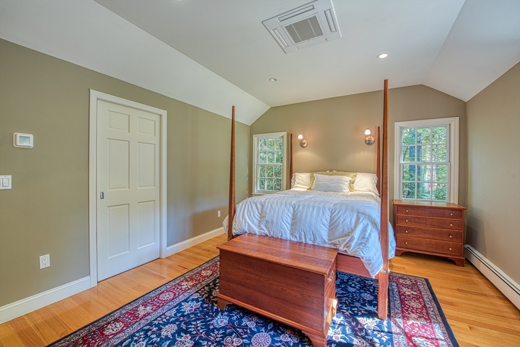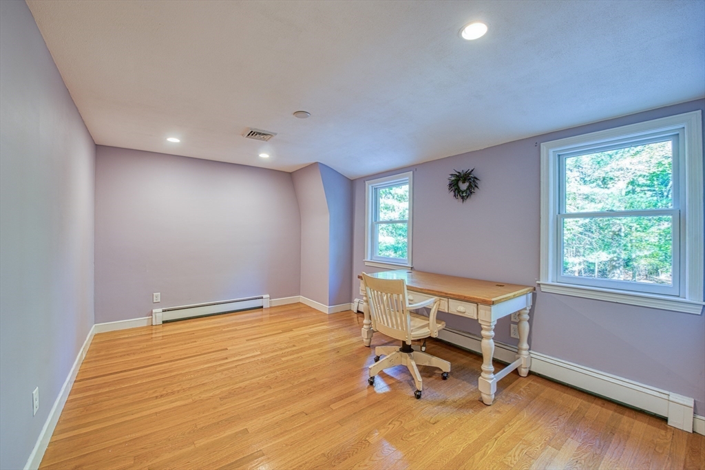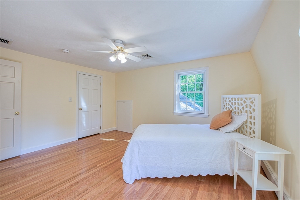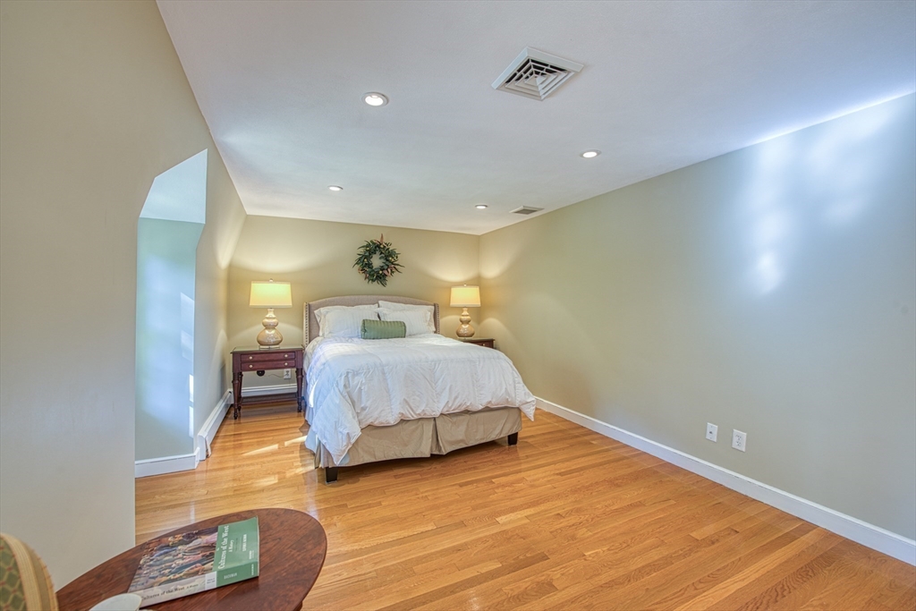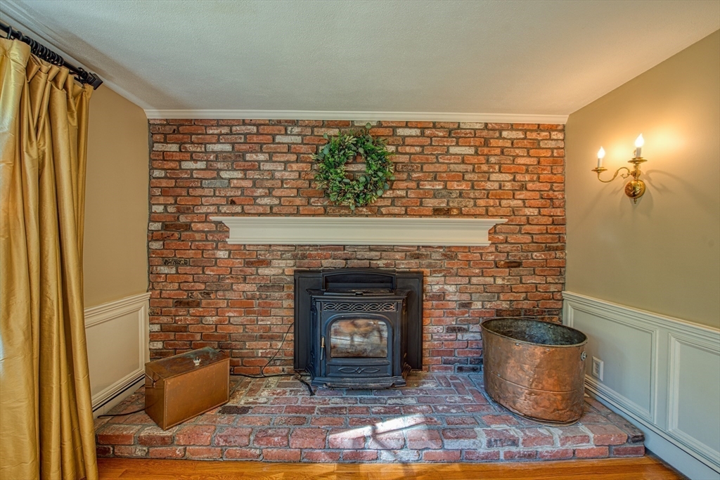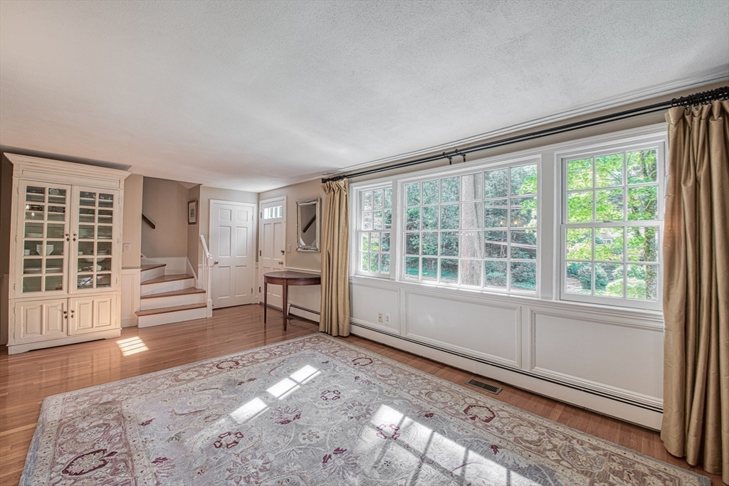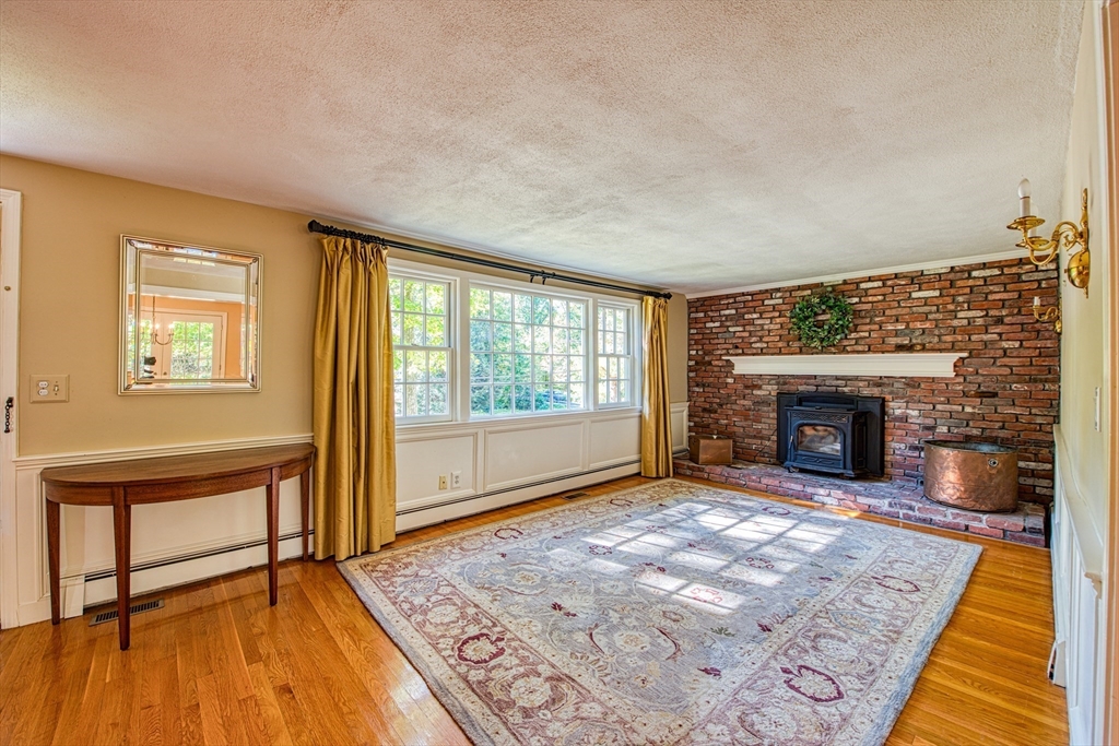 Beautifully updated 4-bedroom, 2-bath home featuring gleaming hardwood floors throughout and a stunning FULLY RENOVATED cabinet-packed cherry kitchen with high-end stainless appliances and granite counters. The adjacent dining area opens to a deck overlooking a private, tree-lined yard—perfect for entertaining! The inviting layout includes a formal living room and a cathedral-ceiling family room with a cozy gas fireplace. A flexible space off the kitchen is ideal as a dining room or home office. The MAIN LEVEL BEDROOM and full bath offer convenience for guests or multigenerational living. Upstairs you will find three spacious bedrooms and another full bath. Enjoy a 2-car garage, a dry basement perfect for storage or future expansion, and a great location close to highway access, commuter rail station, award winning public schools, Lake Massapoag and Sharon town center—a perfect blend of comfort, flexibility, and style in one beautiful home!