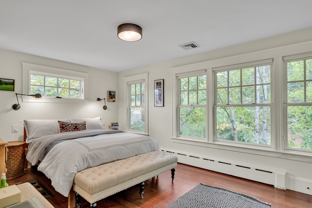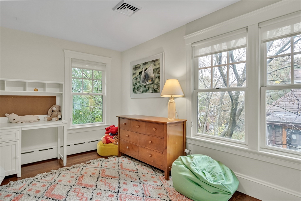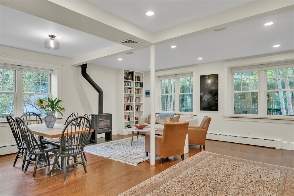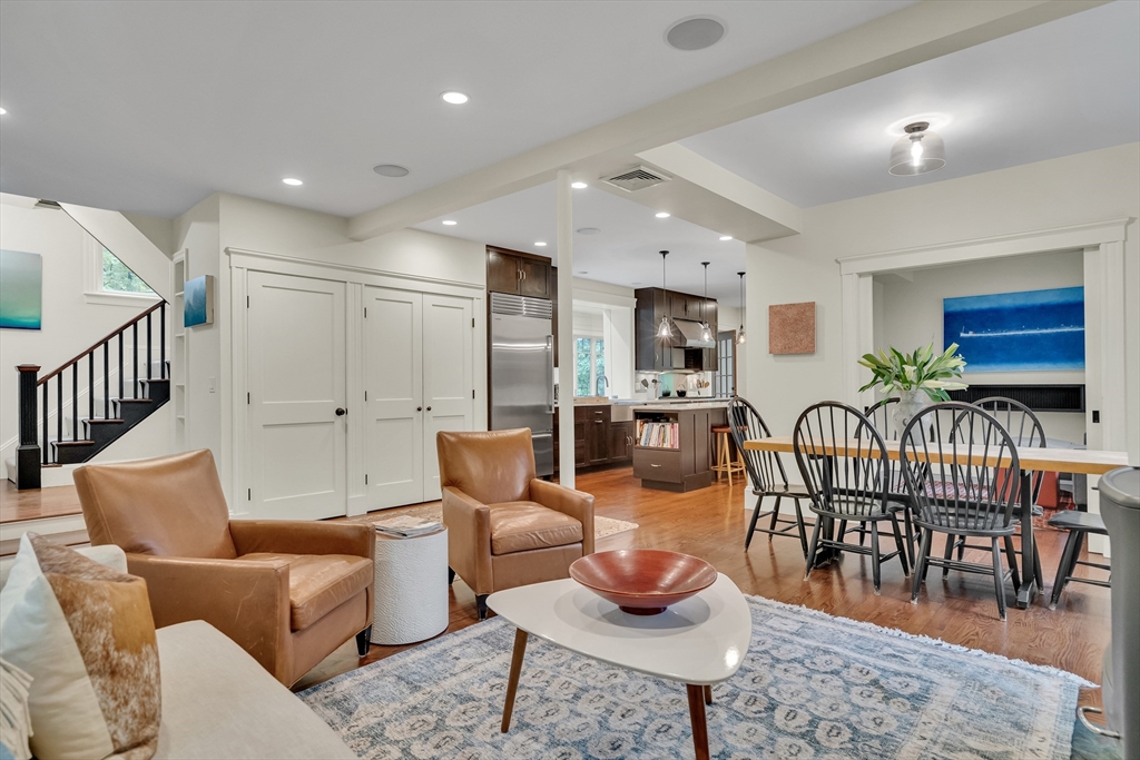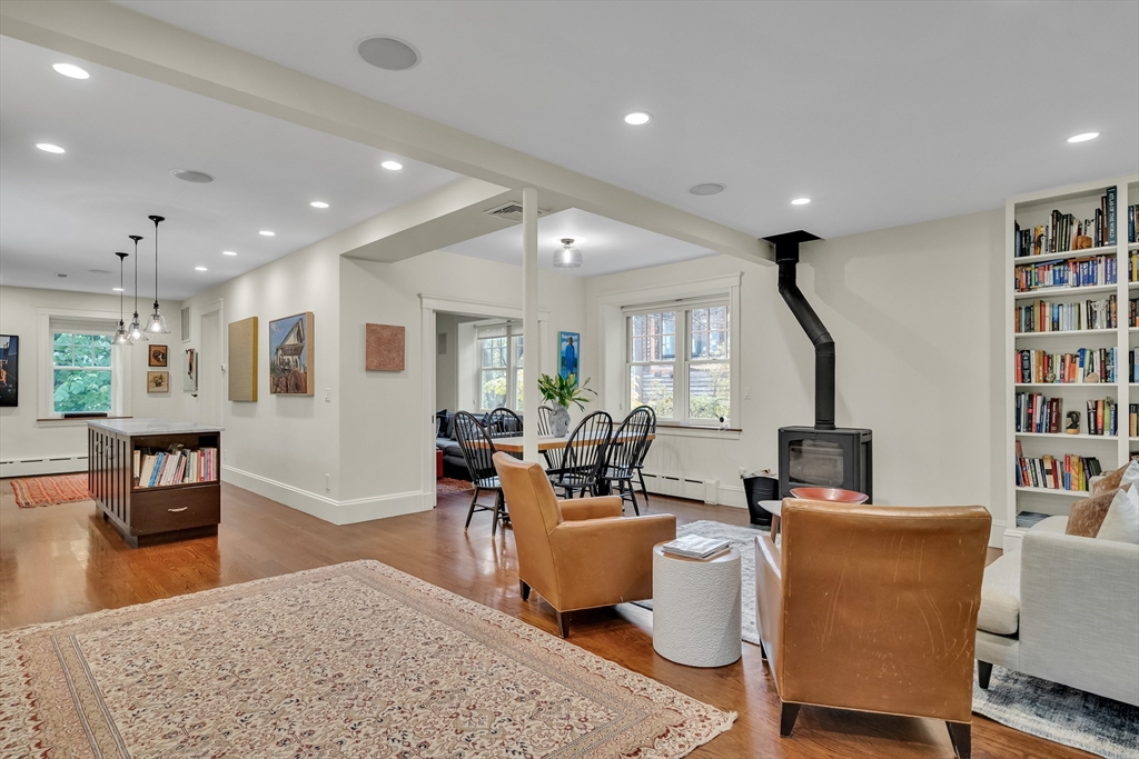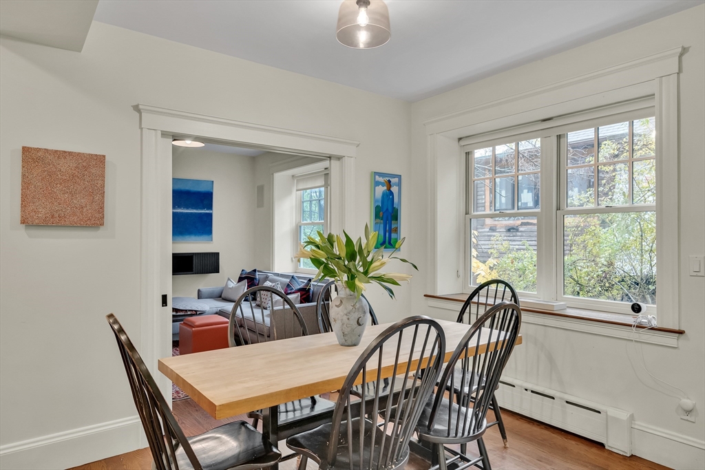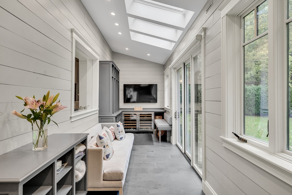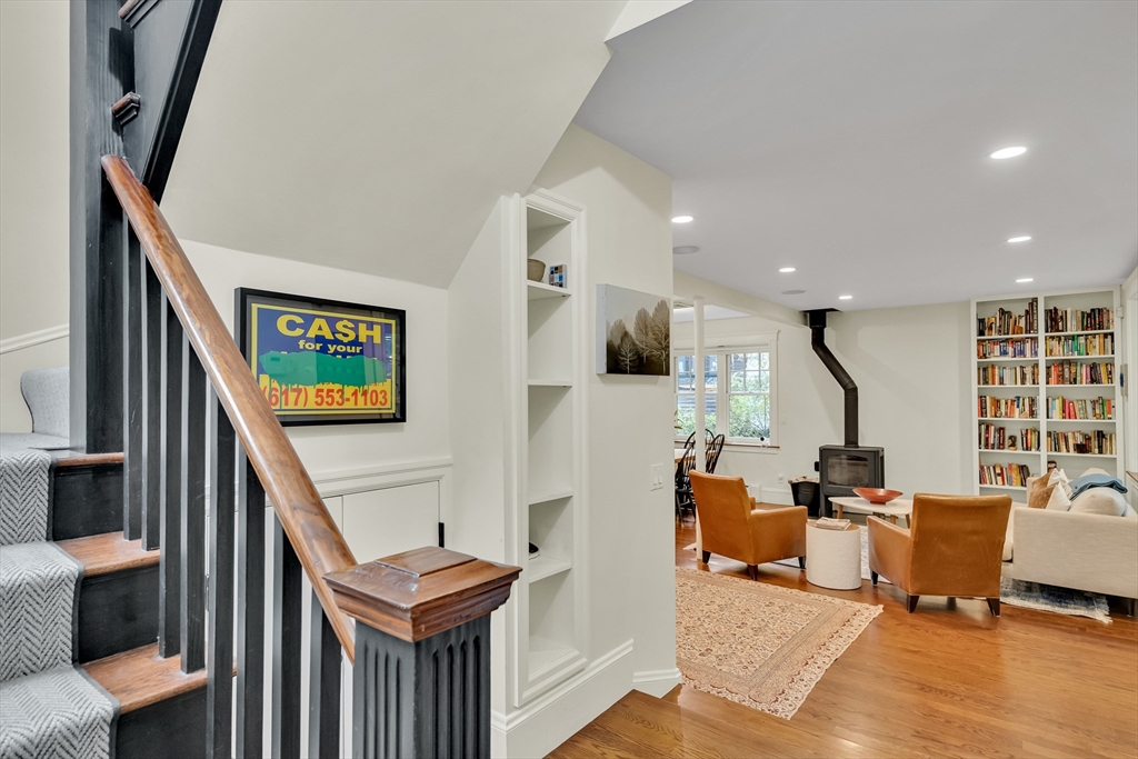 Discover a harmonious mix of style and practicality in this renovated Brookline residence set on a peaceful, tree-lined street. This unique home spans two floors, featuring four bedrooms and two bathrooms. The Chef’s Kitchen includes a subzero refrigerator, Wolf range, Carrara marble countertops, and a generous central island. A versatile sunroom boasts custom built-in storage and twin sub-zero wine fridges, leading directly to a professionally landscaped, irrigated double lot. The living room has a working wood-burning stove with soap stone inlay, and offers custom built-in shelving, cubbies, and storage throughout. The first floor showcases soaring 10-foot ceilings, while gleaming hardwood flooring extends across all living areas. Additional amenities include central air conditioning and two off-street parking spaces. Enjoy the vibrant lifestyle that Brookline provides—recently recognized as the "No.1 Place to Live for Quality of Life in the U.S." by Travel and Leisure.